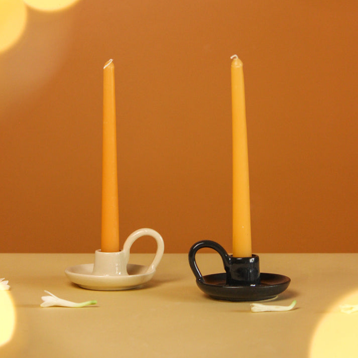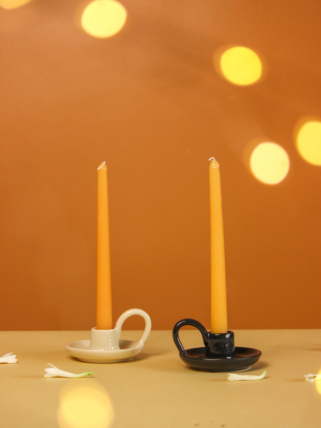 Victorian Charm Ceramic Pillar Candle Holder (Black,Beige) - Set of 2