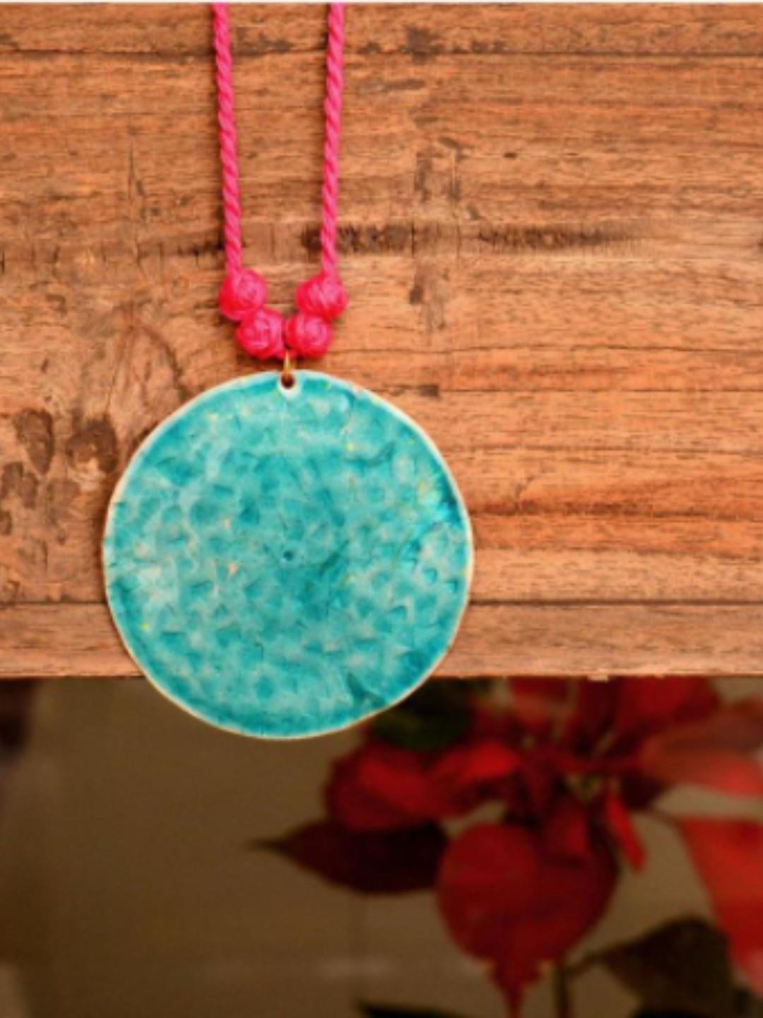 The turquoise pendant is perfect for your day event. This particular Copper enameling pendant is handcrafted by our team of artisans from the western ghats of Maharashtra, India.