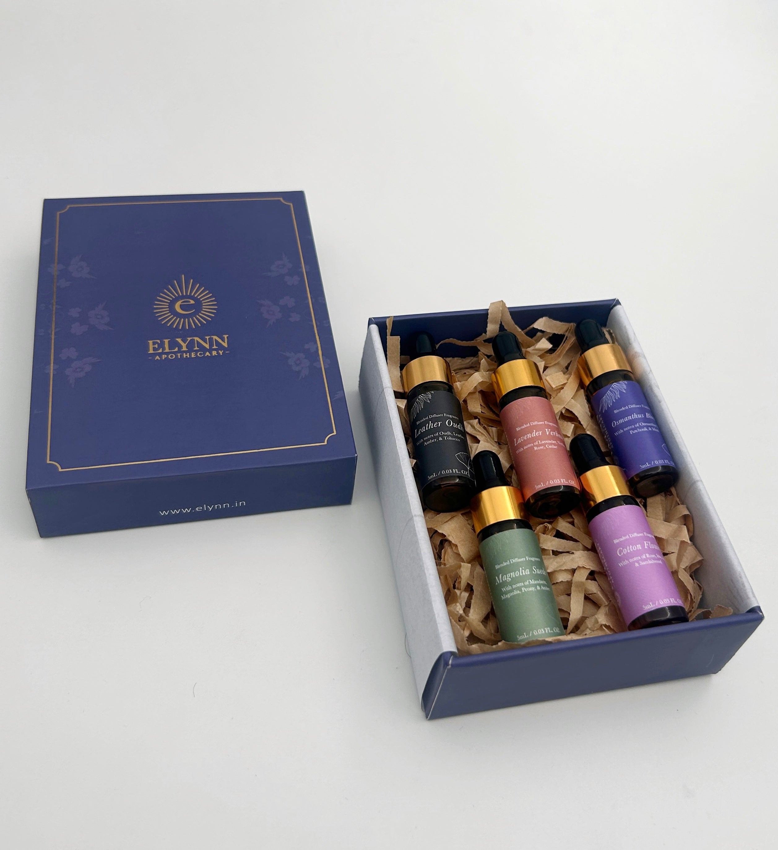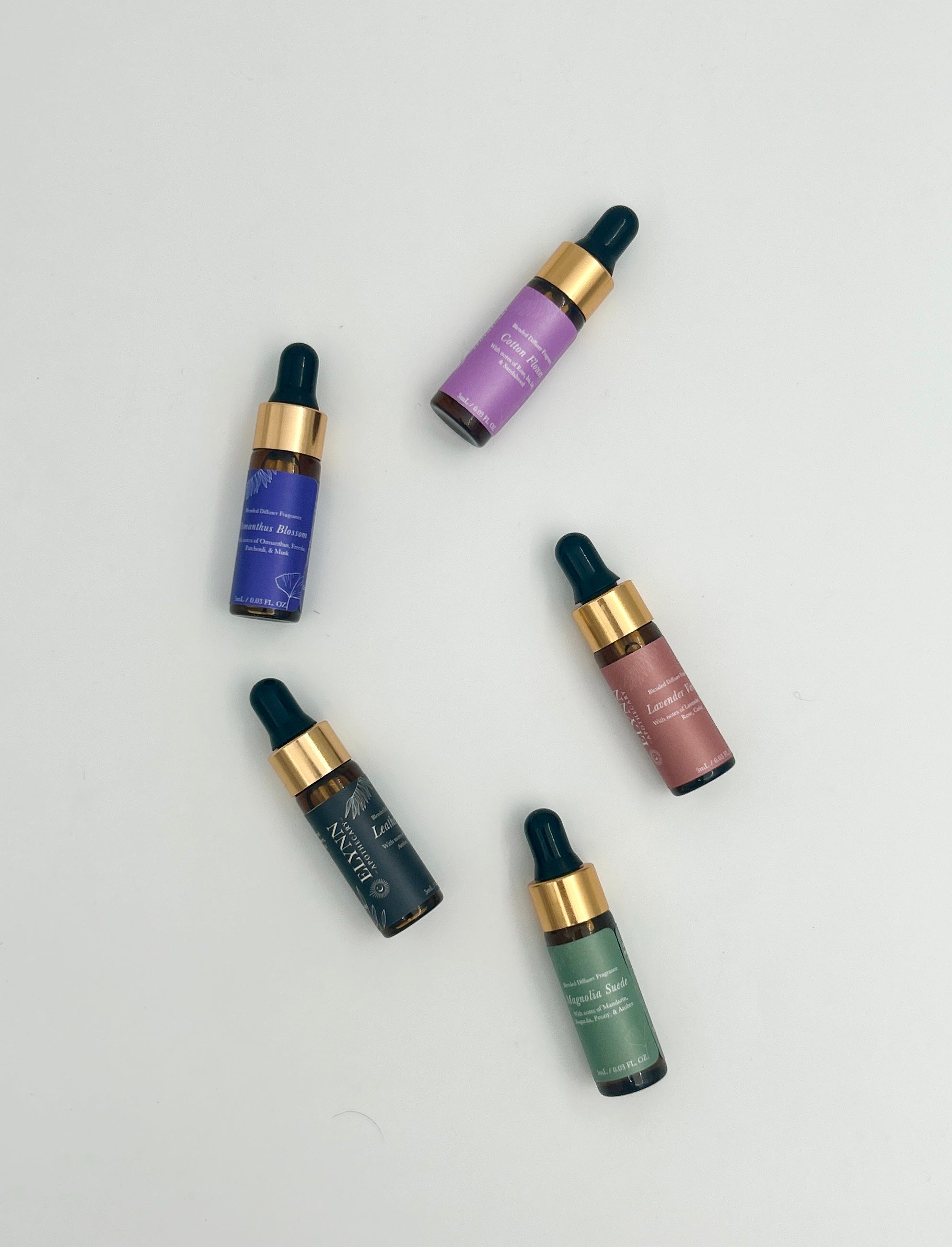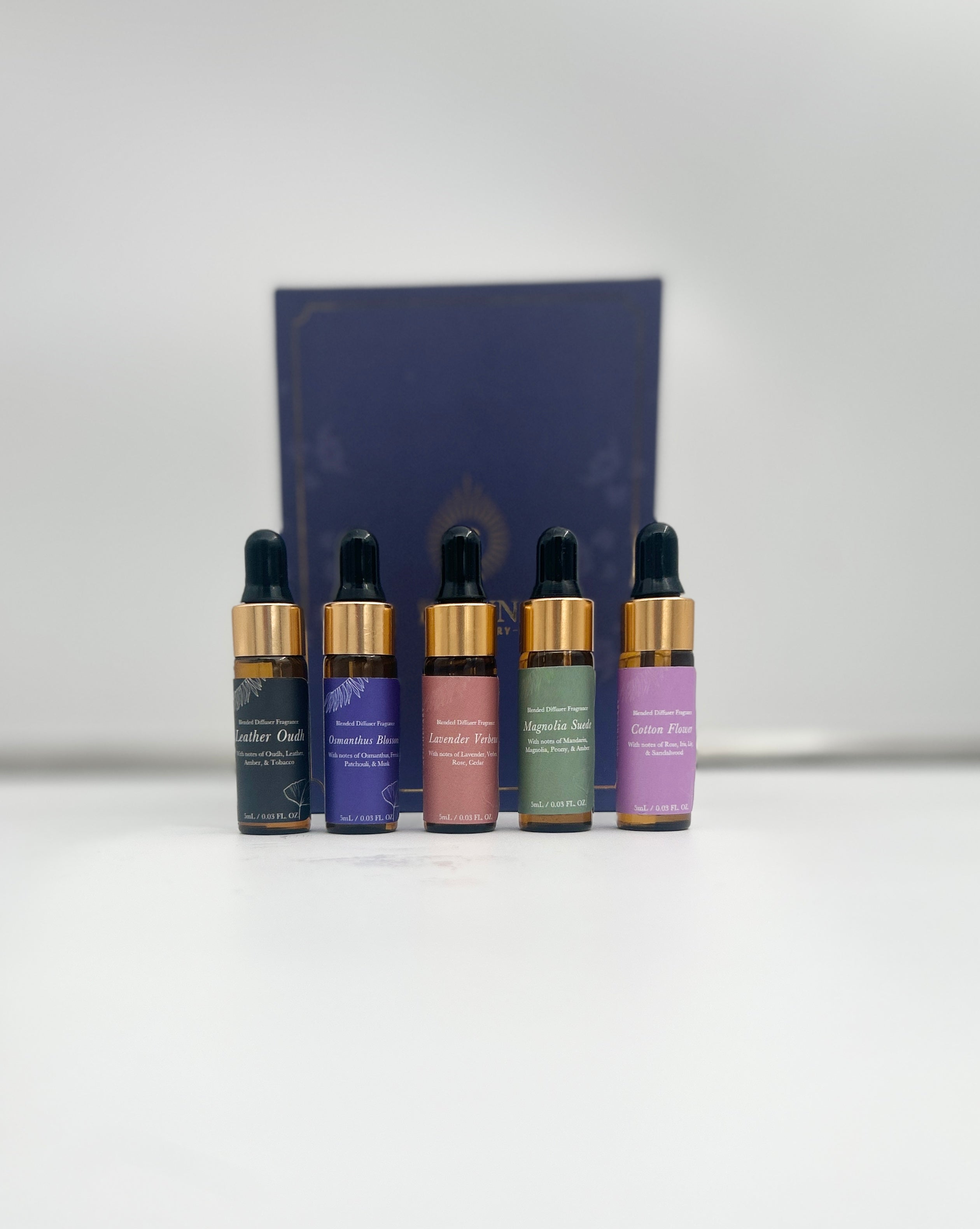 Introducing our exclusive Diffuser Oil Discovery Set, a curated collection of mini-size bottles showcasing the full range of fragrances in our collection. Each bottle is thoughtfully crafted to offer a unique olfactory experience, perfect for creating an ambiance that suits your mood and surroundings.