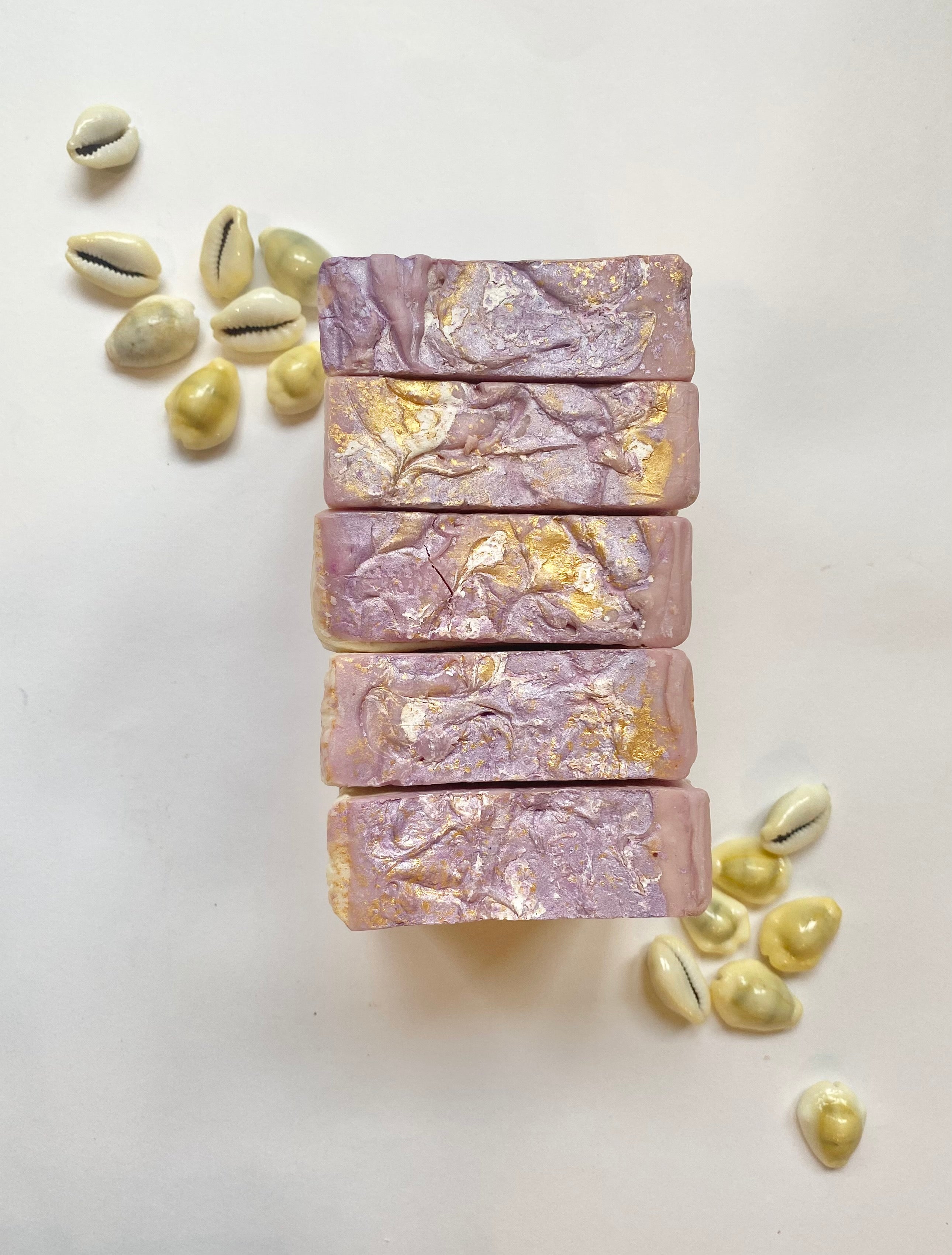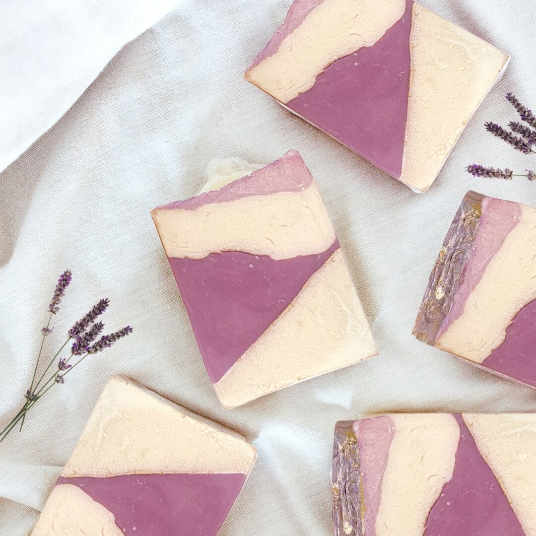 • Made with virgin oils, skin safe mica and skin-safe lavender fragrance oil, this soap is the perfect way to enjoy a relaxing and calming shower.