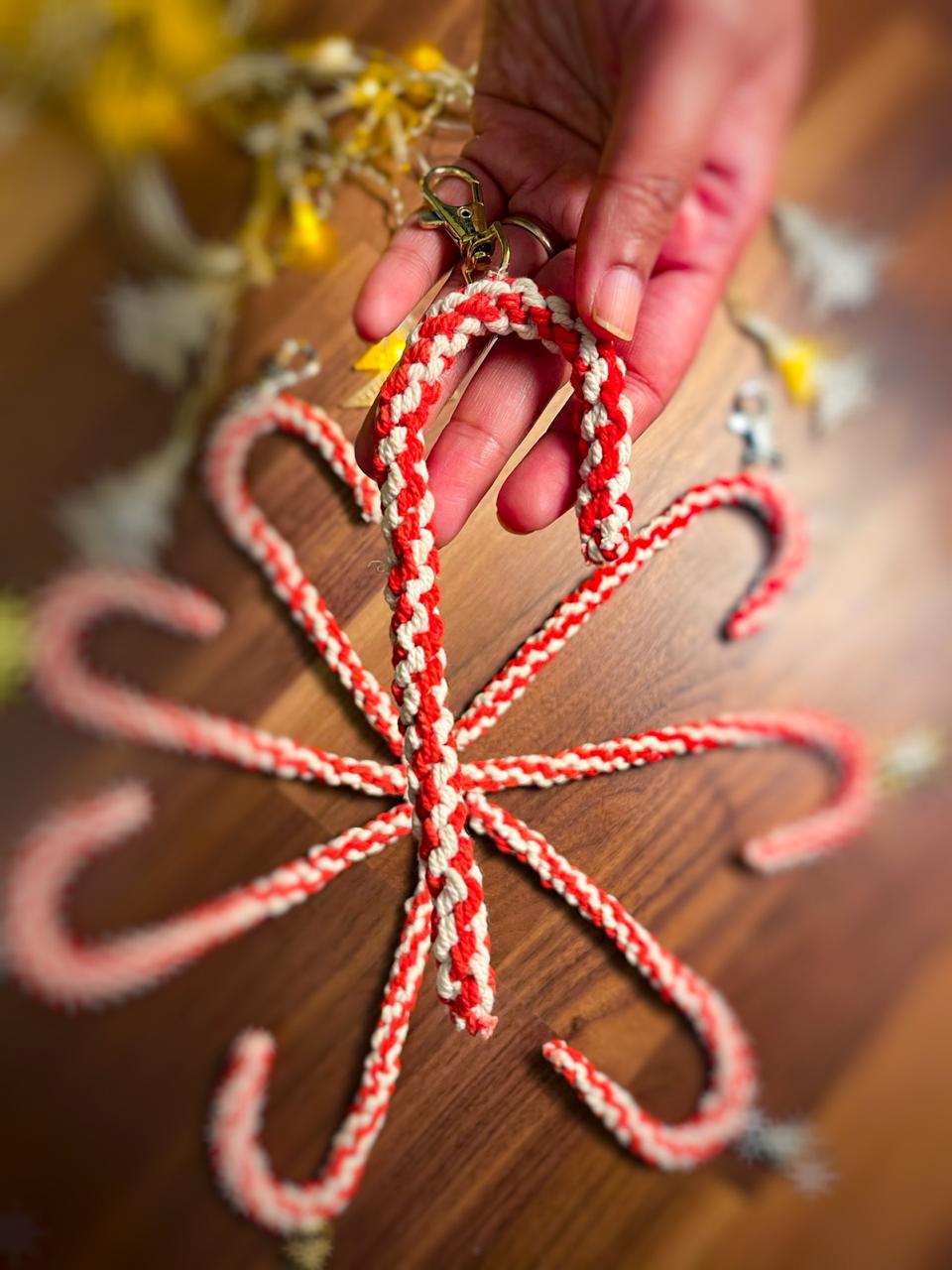 Get into the festive spirit with our Christmas-inspired Candycane Charm made from macrame. Handcrafted with love and attention to detail, this charming charm captures the whimsical essence of the holiday season. Adorned with vibrant colors and intricate macrame knots, it adds a playful touch to your accessories. Shop now and infuse your holiday celebrations with joy and sweetness with our Candycane Charm.