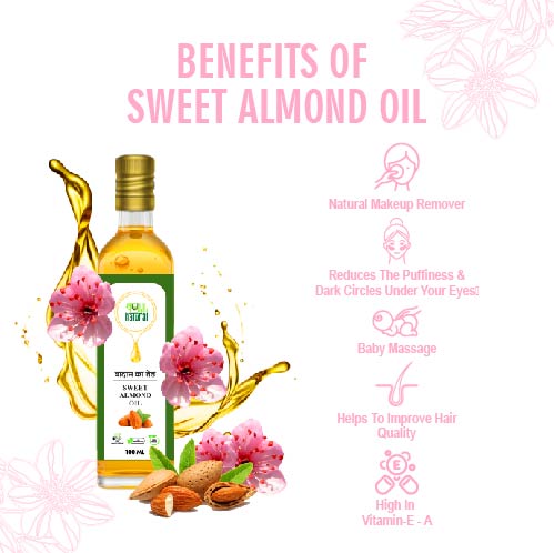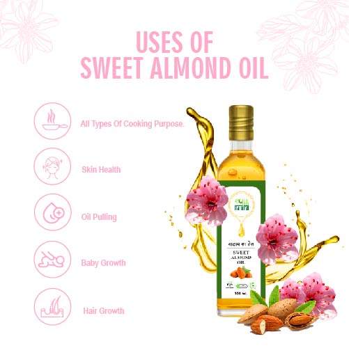 • Various topical uses for skin and hair Sweet almond oil offers a number of health benefits that make it a great ingredient.
