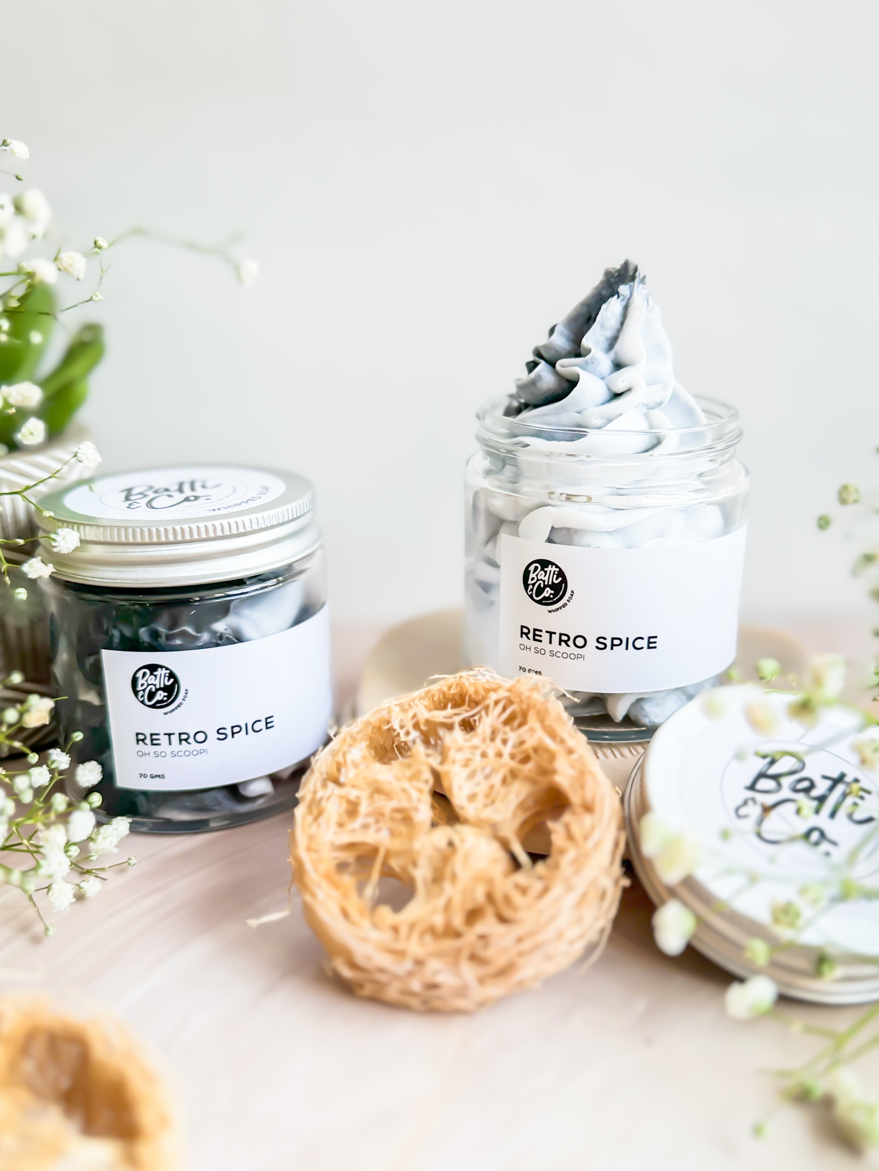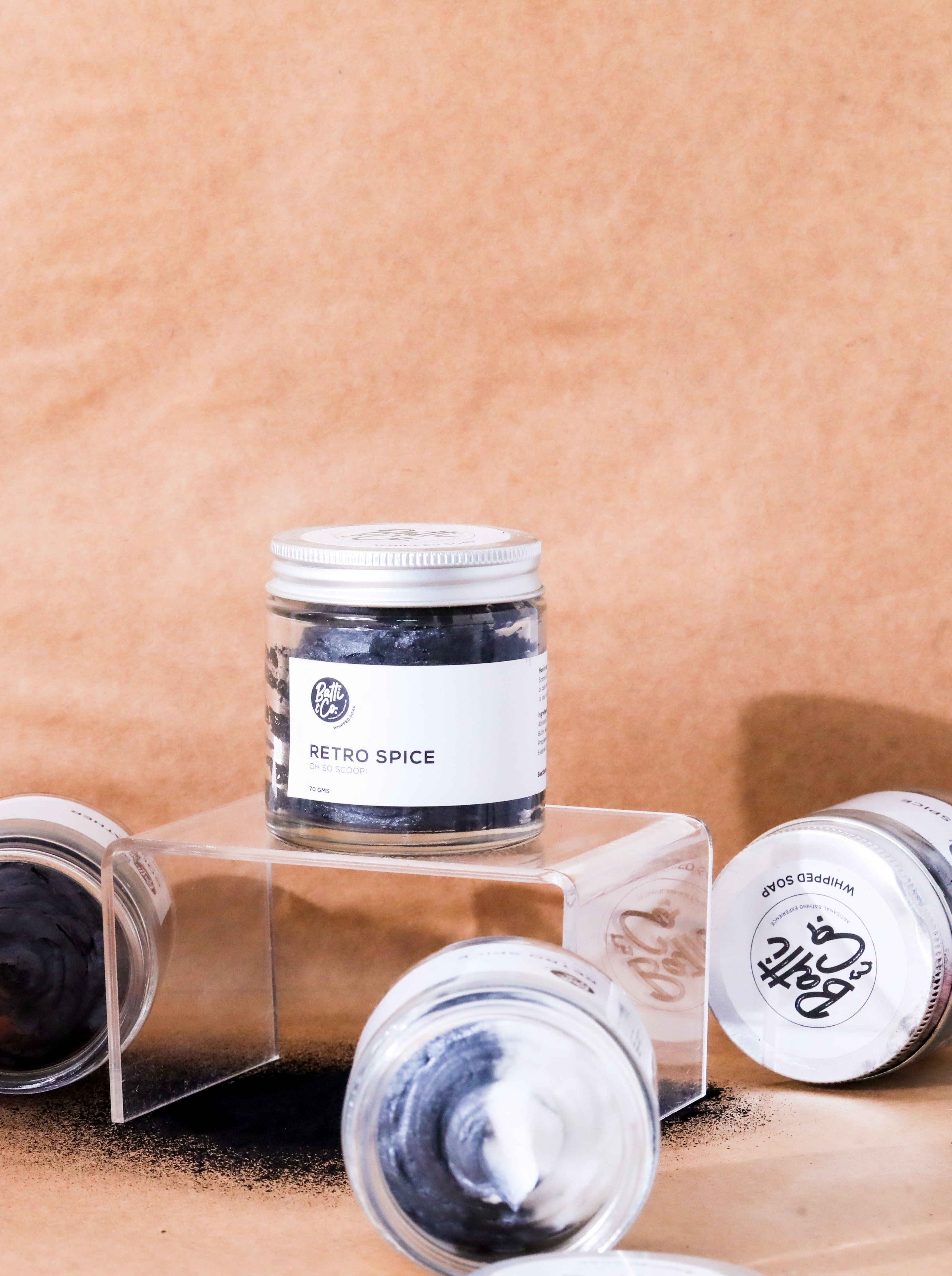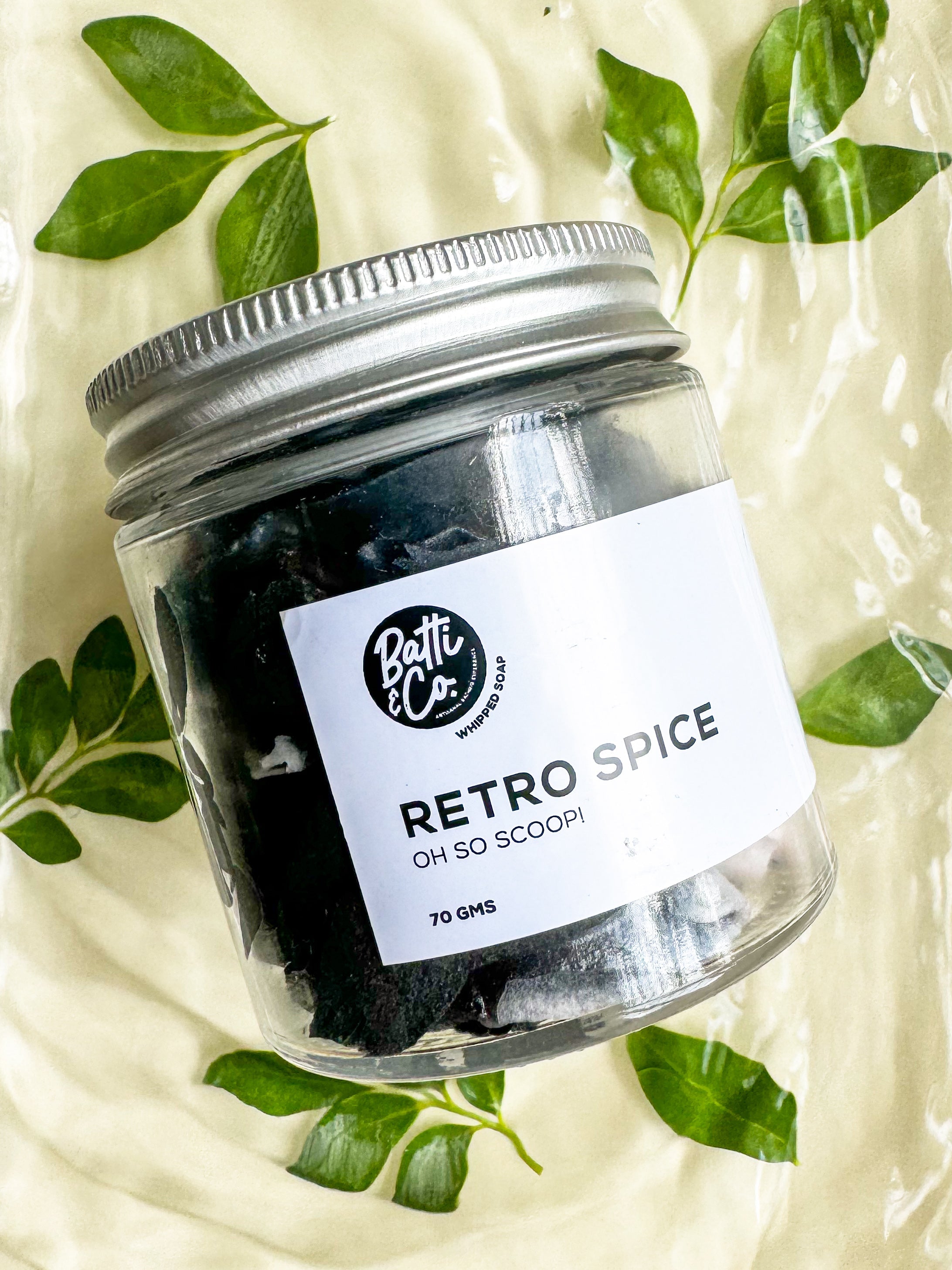 Retro Spice whipped soap is a fun way to ditch the shower gels. This body wash is made using natural ingredients like Shea Butter and Activated Charcoal, this whipped soap literally has a texture like whipped cream - soft, fluffy and rich. It is pure creamy luxury, in a jar.
