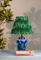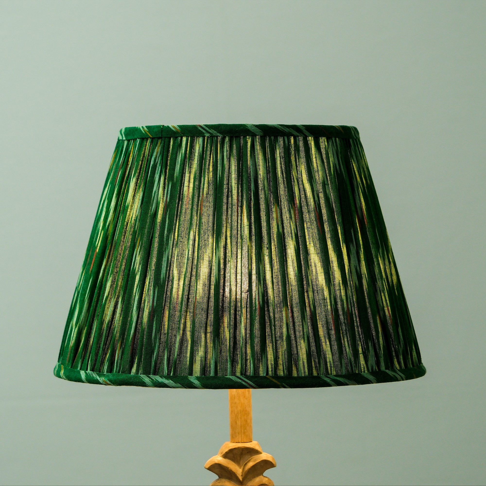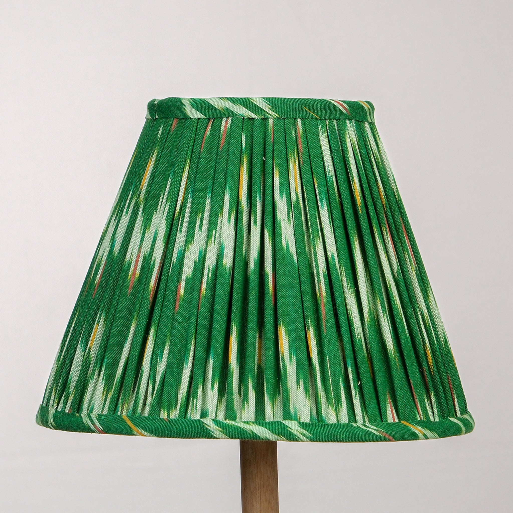 Green lampshade weaved in Ikat pattern brings freshness of outdoors indoor. Let your corner get a dose of greenery with this pretty shade. Available in 3 sizes.