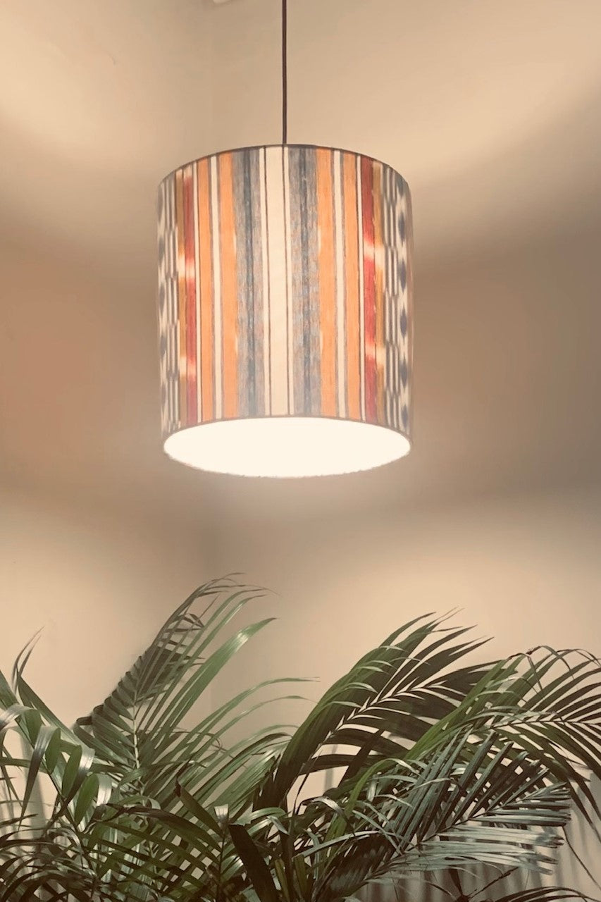 Weaved in handloom ikat, vibrant colours of Drum Lampshade is gonna pep up any space with warmth and und