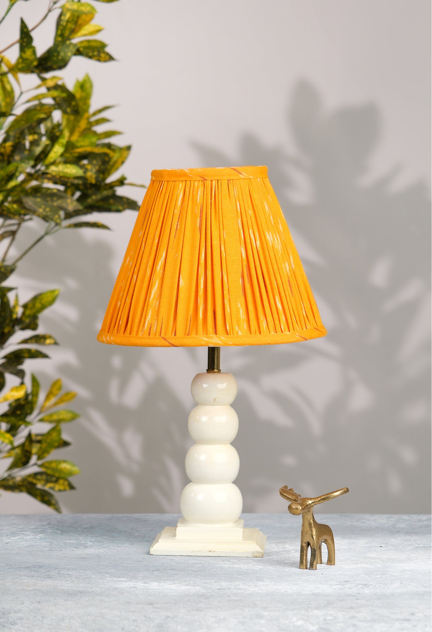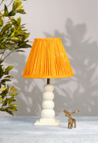 Vibrant orange lampshade weaved in Ikat pattern stands out to highlight your space with warmth. Available in 3 sizes.