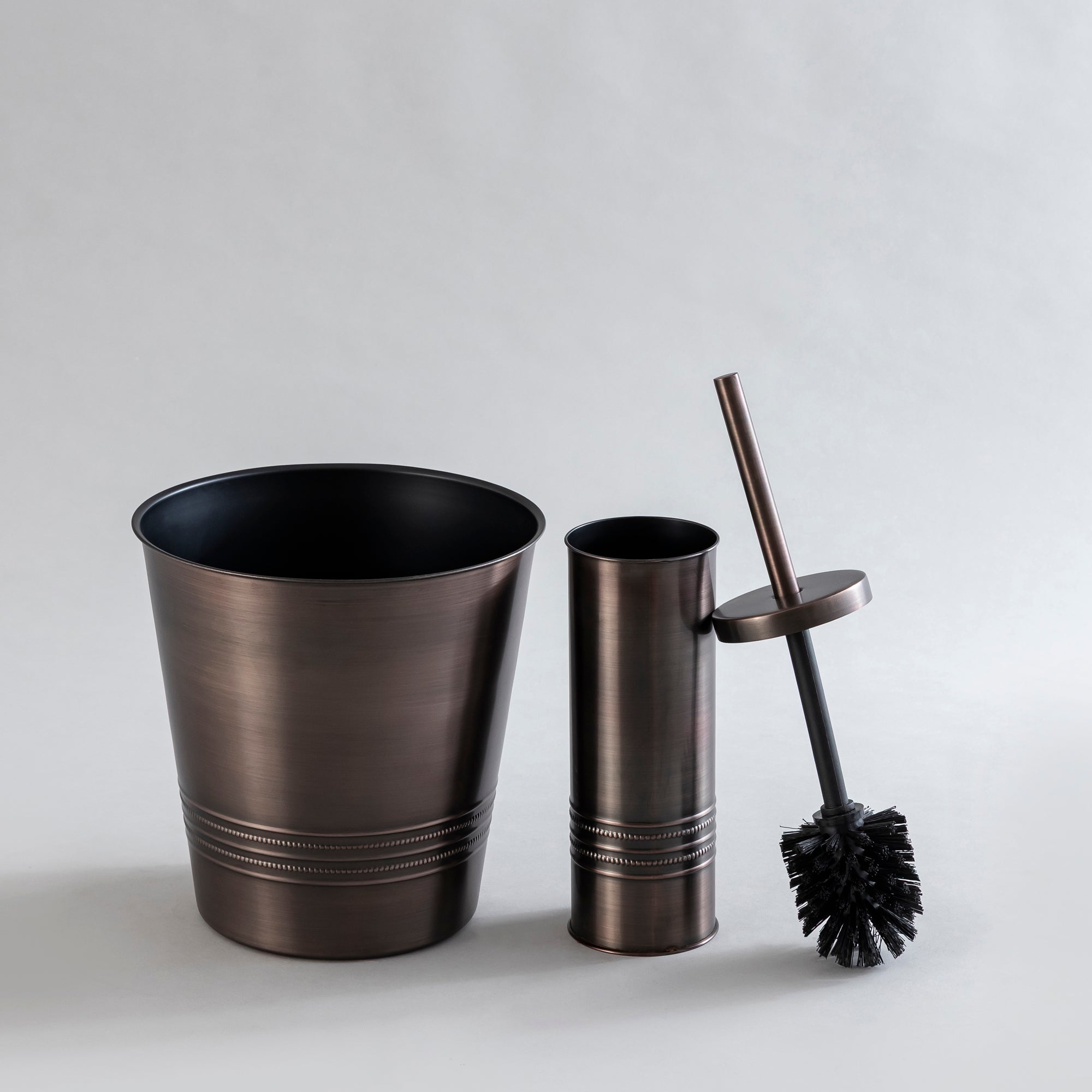 bronze iron waste bin and brush holder combo. Style 5
