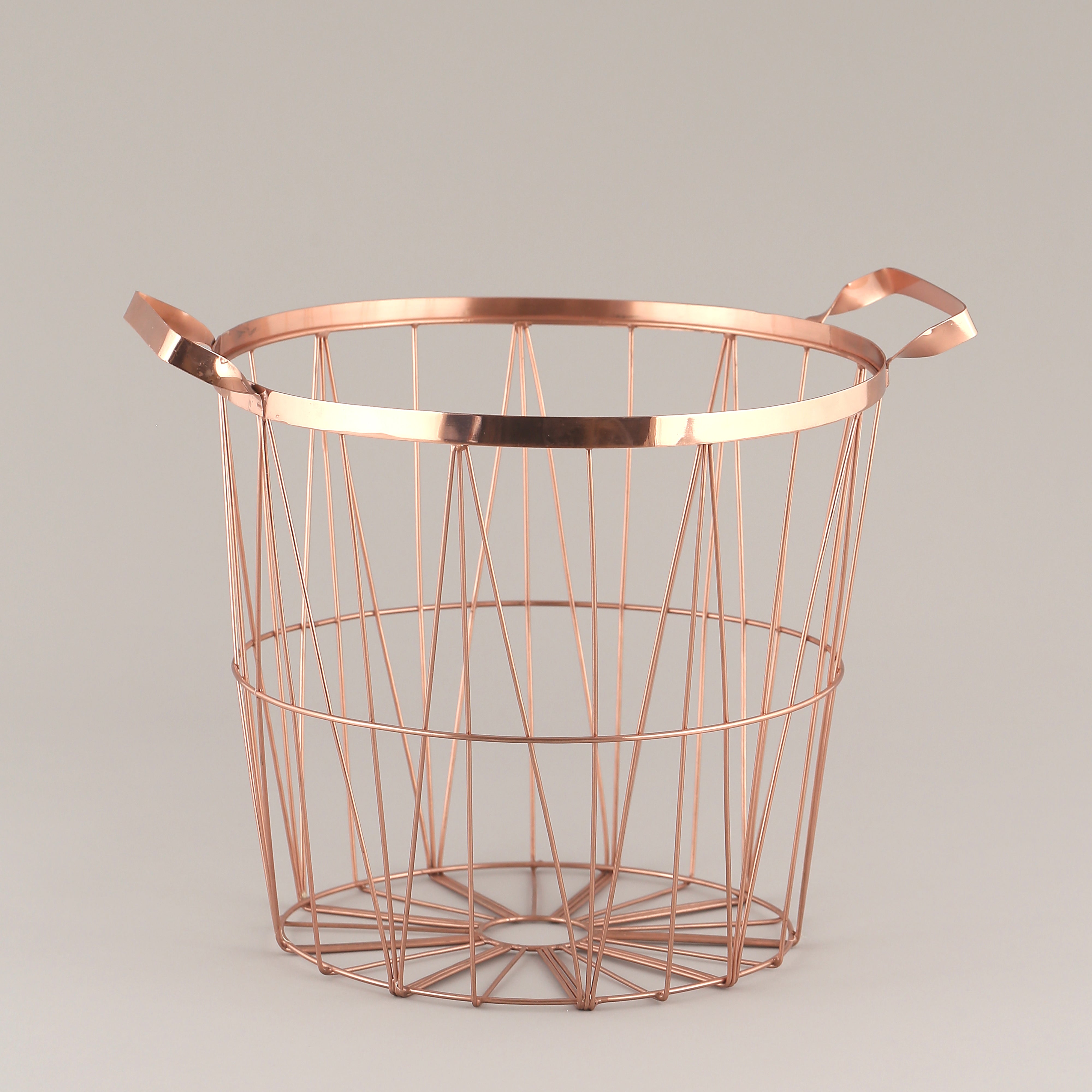 Copper plated steel basket is a bold, metallic accent piece designed to organize with flair. Its rich copper hue stands out in both rustic and modern interiors.
