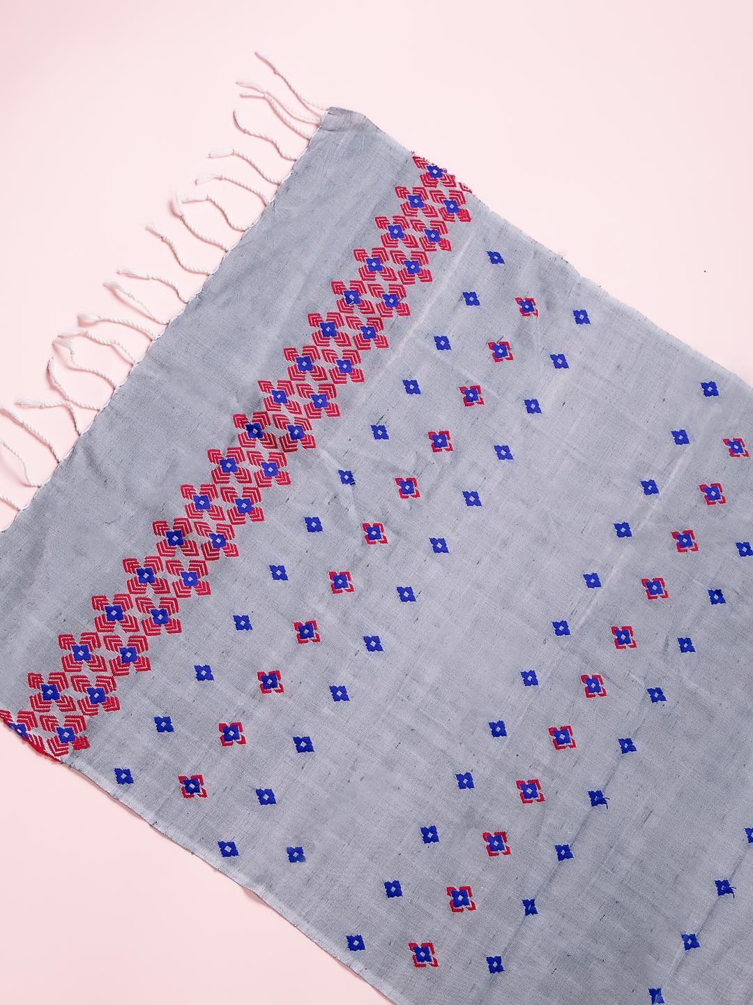 Kaizen Ahimsa Silk Handloom Scarf | Assam Eri Silk Red & Grey