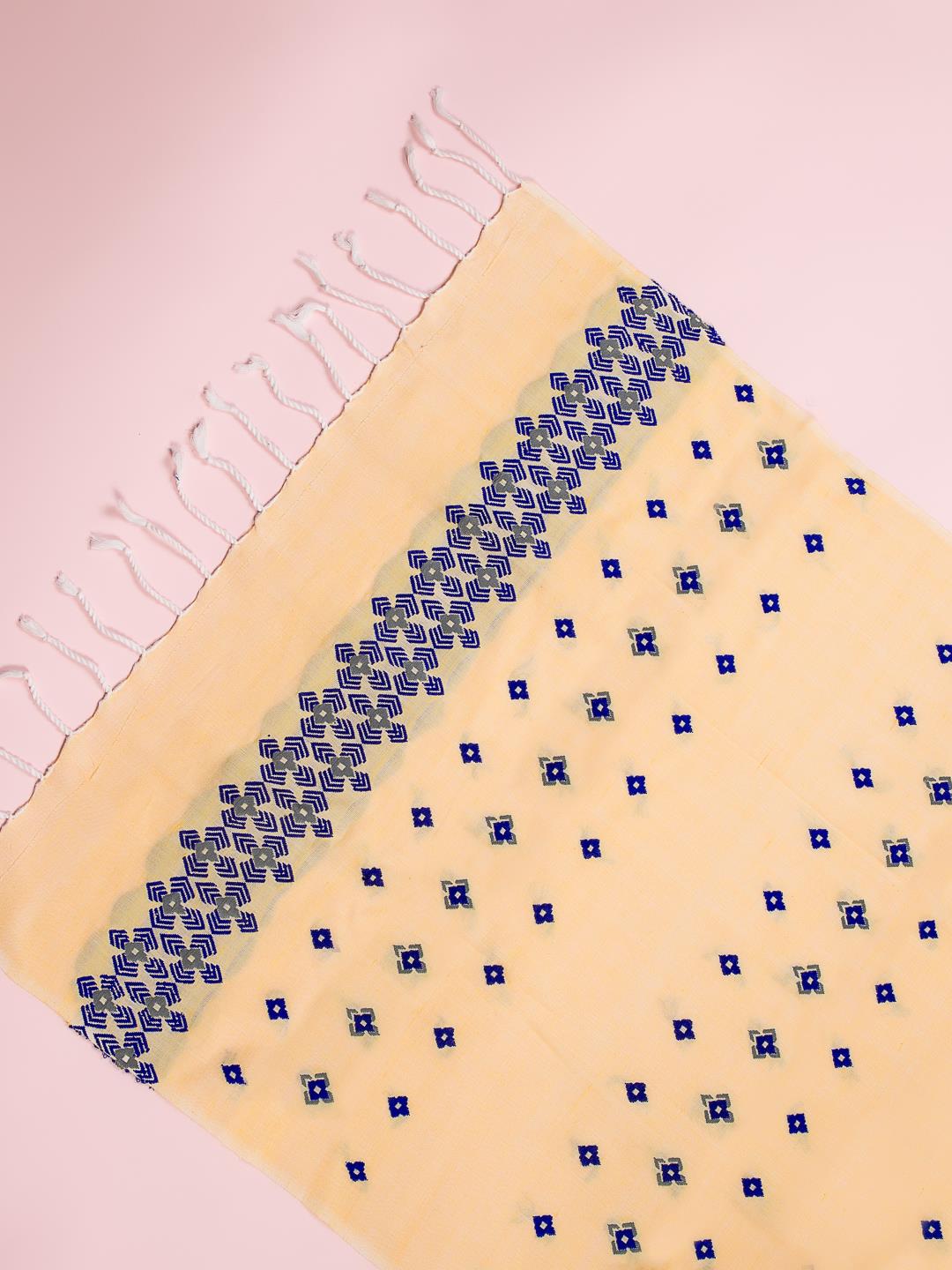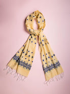 Kaizen Ahimsa Silk Handloom Scarf | Assam Eri Silk Navy Blue & Yellow