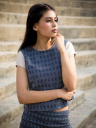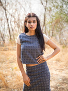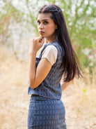 Cropped and just the right amount of boxy, this top is upcycled out of a beautiful surplus cotton from a handloom organization. It comes with either Eri silk or linen sleeves, and a shade of blue that will go perfectly with your wardrobe must-haves, from favorite denims to classic black bottoms. You can never go wrong with it!
