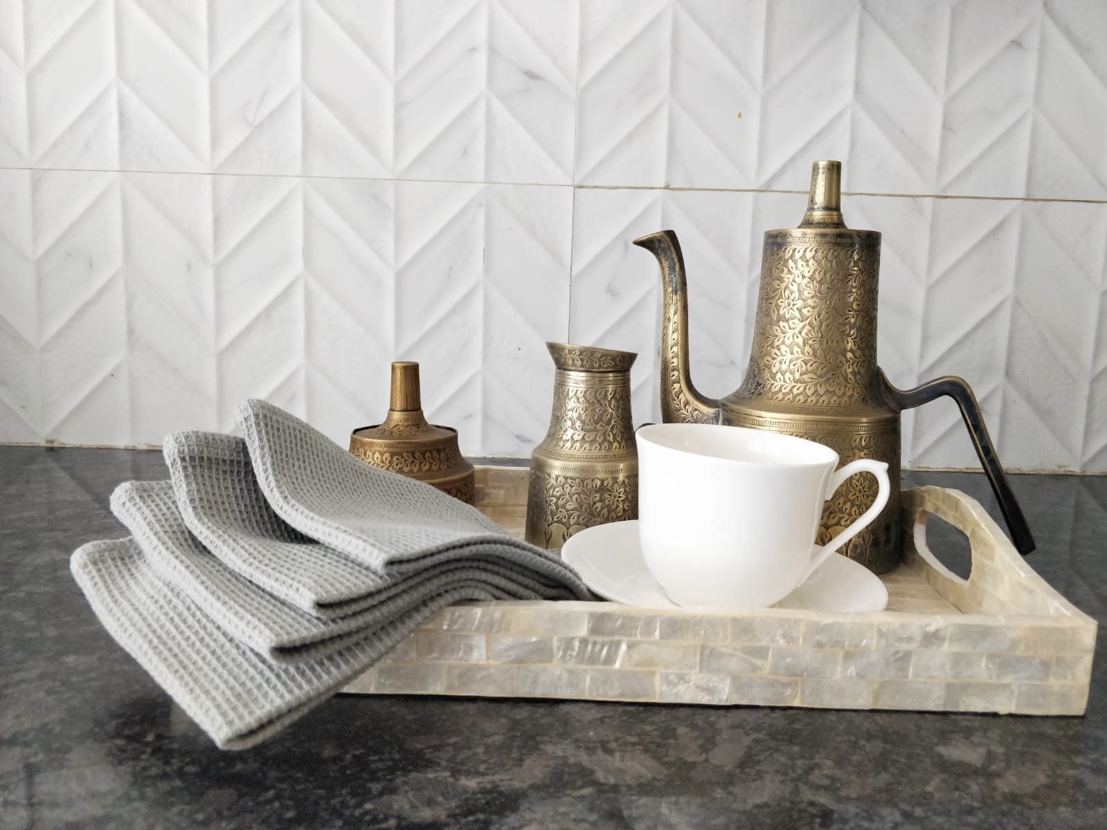 Baradari Kitchen linen is designed for outstanding absorbency and long life. They are made in fine cotton to be absorbent and functional for many years. Being quick dry, they do not retain any unpleasant odors. Colours are fast and the dyes used are safe for the food items.