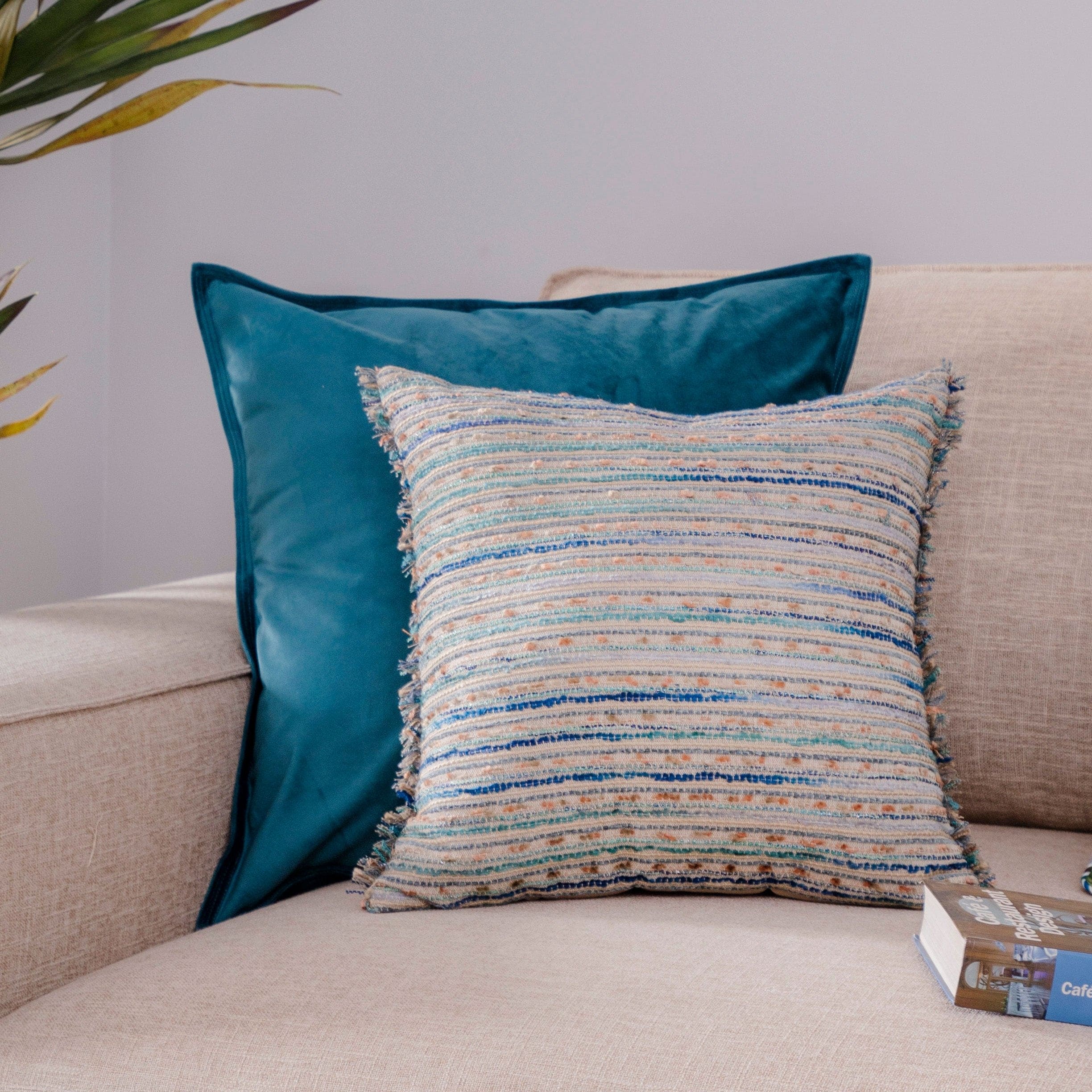 This handwoven tweed cushion cover is crafted from an artful mix of bouclé yarns, forming a striking yet subtle stripe pattern. The intricate handweaving adds rich texture and a cozy feel, making it the perfect blend of artisanal craftsmanship and modern style for your home.