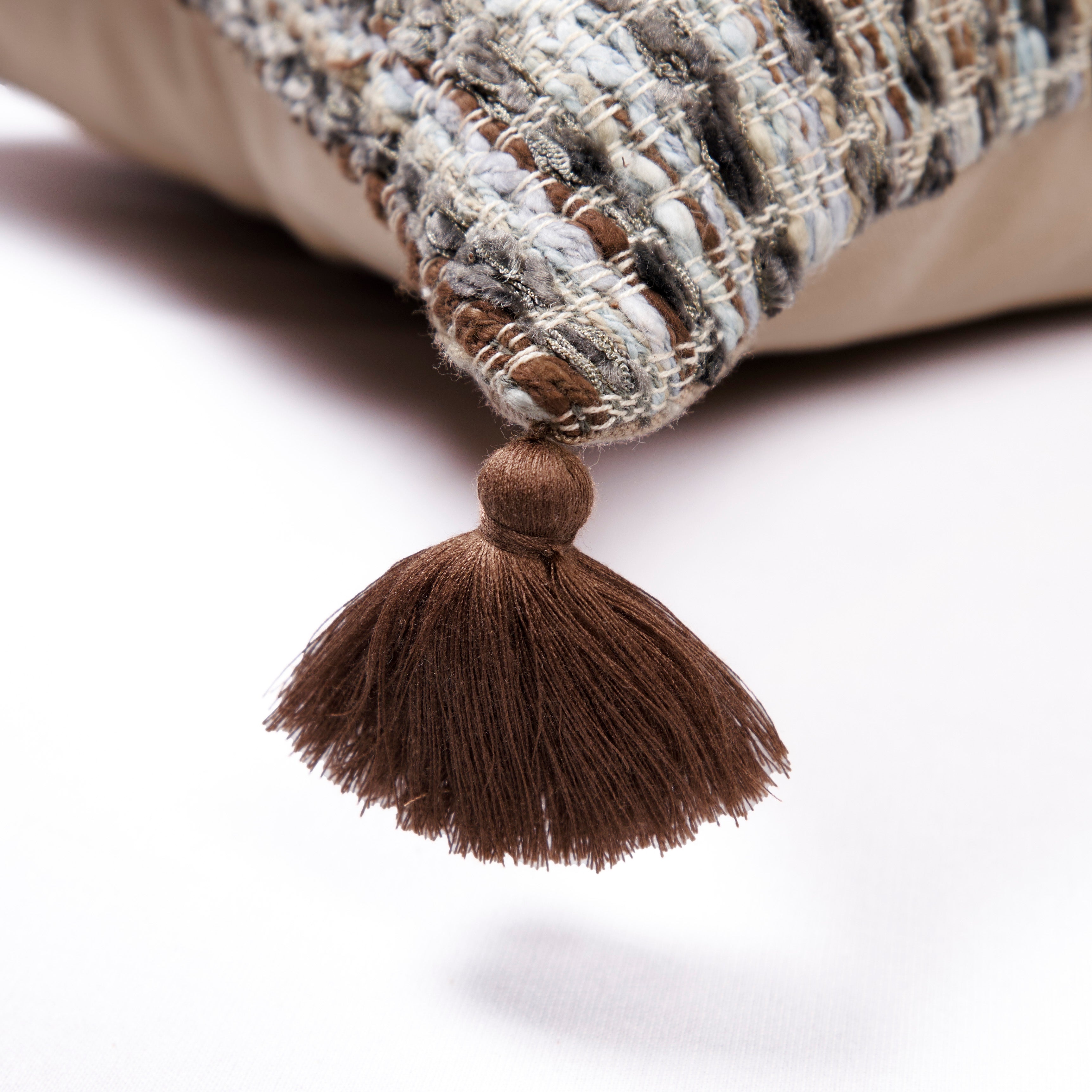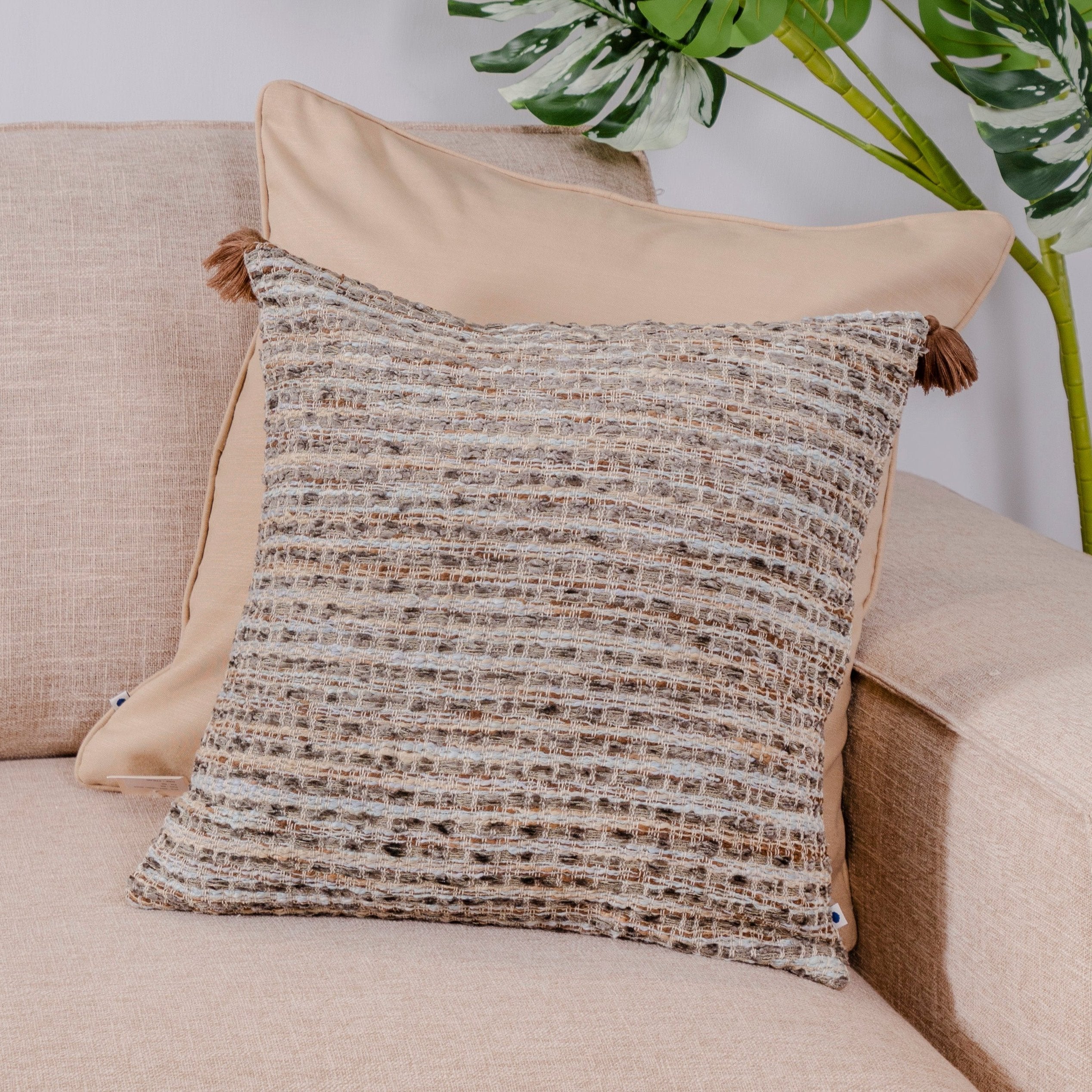 Infuse your space with texture and color through our handwoven bouclé yarn cushion cover. Crafted with different bouclé yarns, this cushion showcases a striking mix of colors and soft loops, adding depth and warmth to any room. Perfect for creating a bold yet cozy statement.