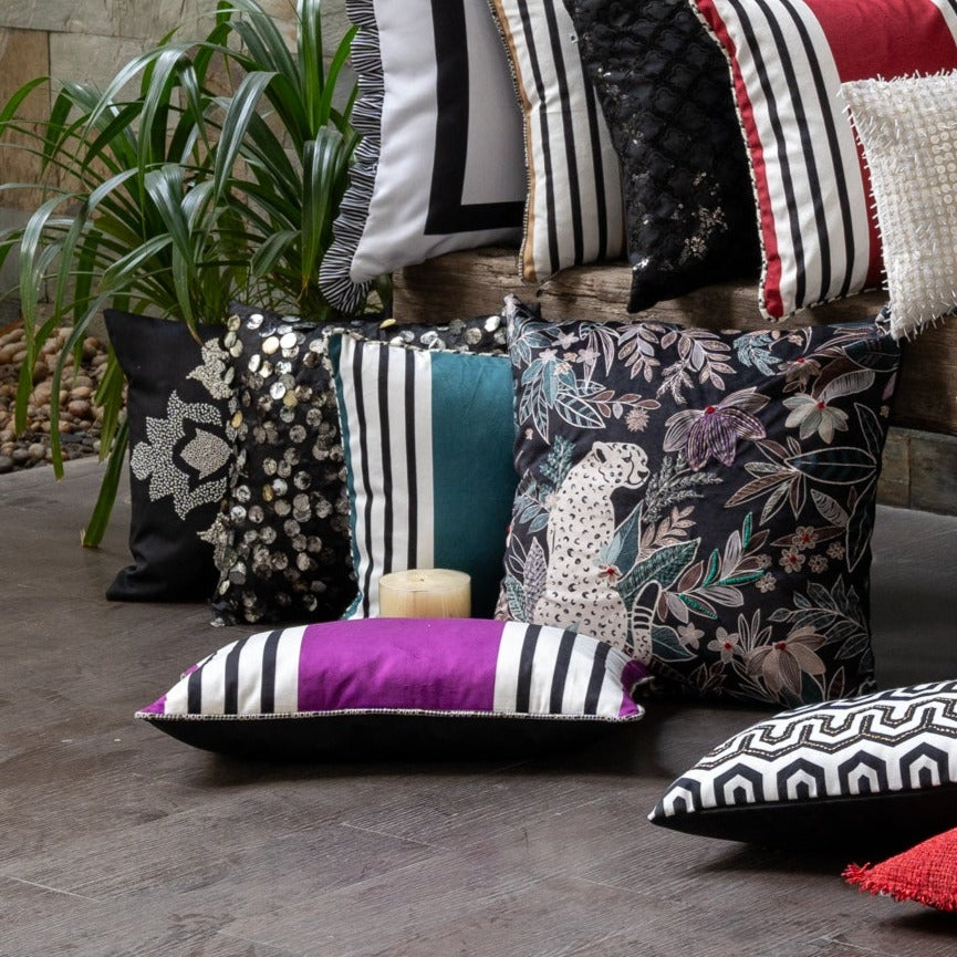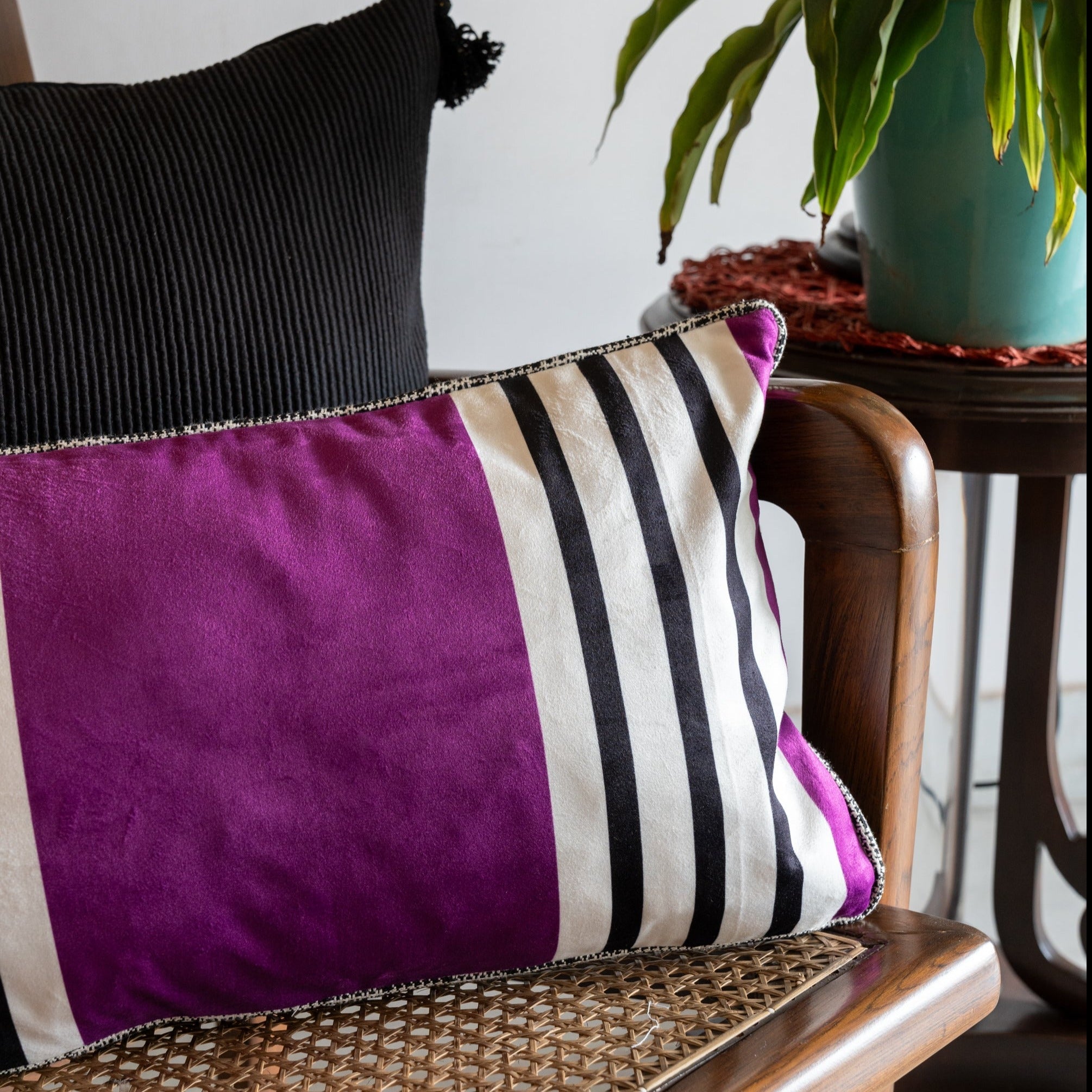 Whimsical Waves of Purple: Indulge in the enchantment of our Purple Haze Striped Cushion. Vivid stripes in royal purple add a touch of magic, making every moment a visual delight in your living space.