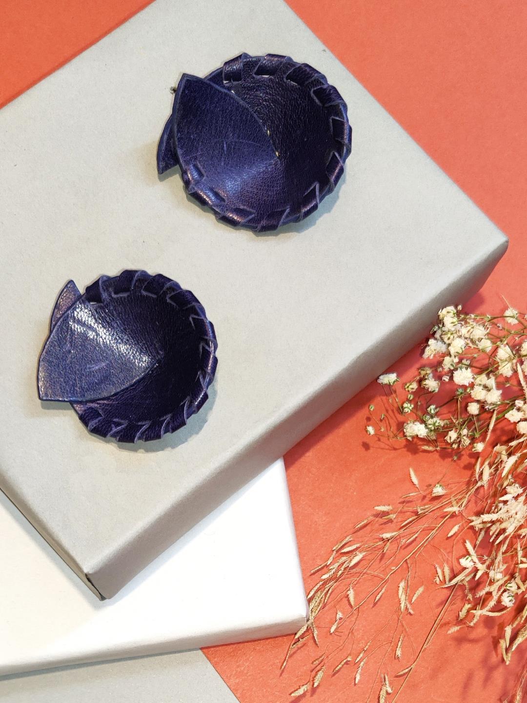 The swiv studs are created using upcycled leather with overlapped petals and interlaced edges. We are redefining the word new by upcycling leather off-cuts to give them a second purpose and each product a new skin.