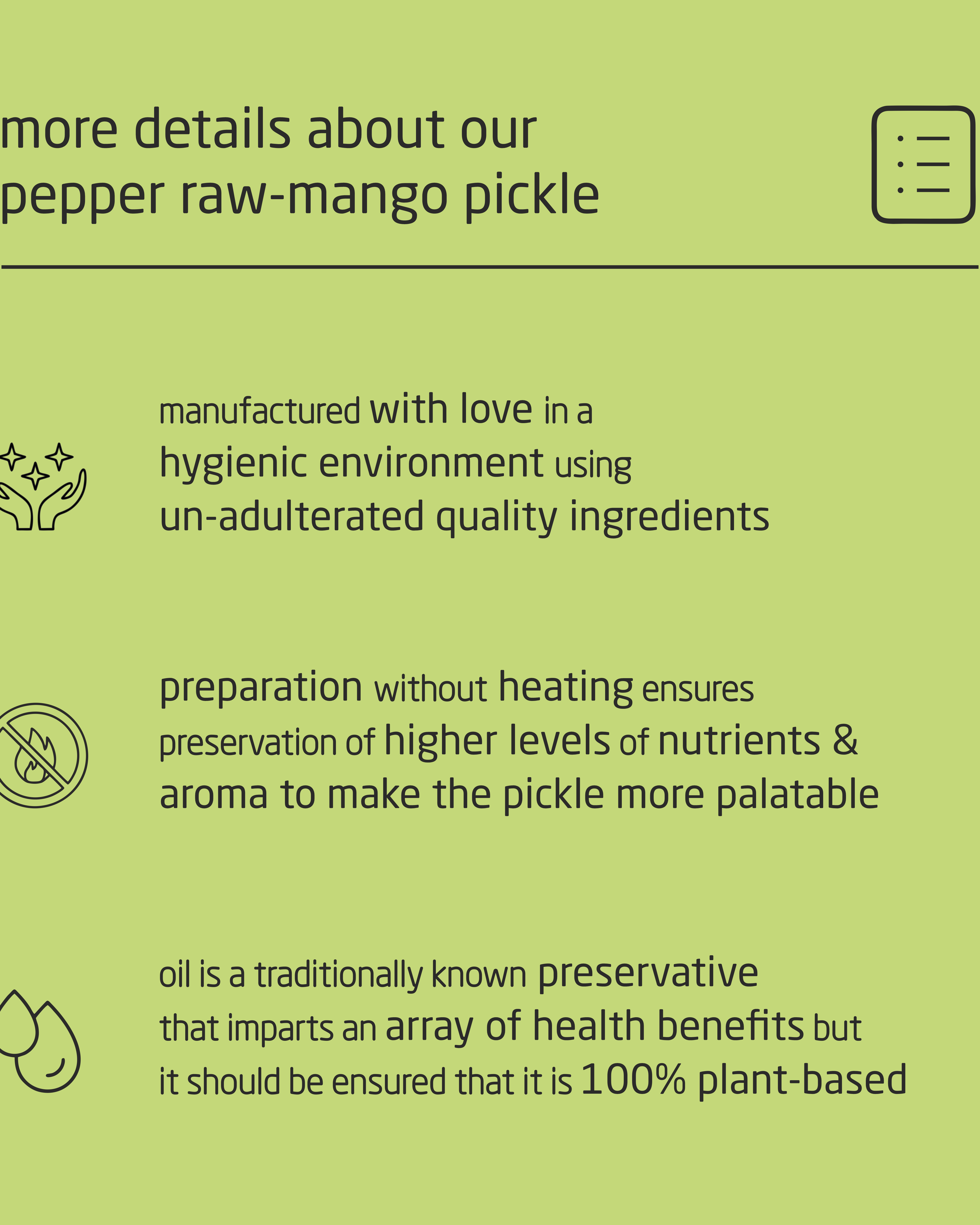 A4. These pickles and spreads are made of natural and organic materials, which makes them eco-friendly. Ethical sourcing of raw materials in combination to their eco-friendliness makes them sustainable. Happy shopping.