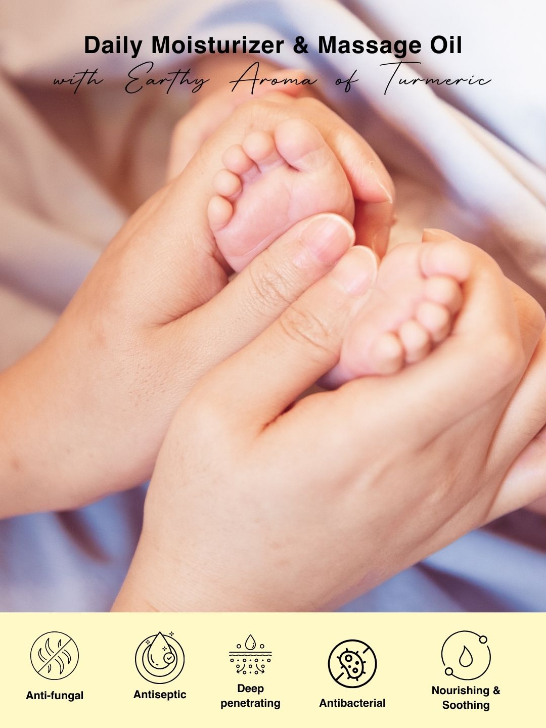Experience the age-old and time-tested tradition of daily oil massage for your newborn. Crafted with care, this oil not only strengthens the precious bond between mother and baby but is also a vital element in the baby's physical development.