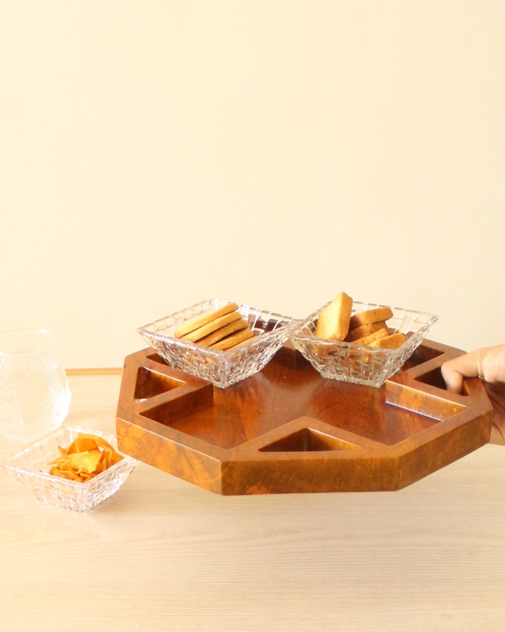 Ans A designer platter stands out due to its unique design, craftsmanship, and the quality of materials used. These platters often feature artistic elements, innovative shapes, and finishes that elevate them from mere serving dishes to statement pieces.