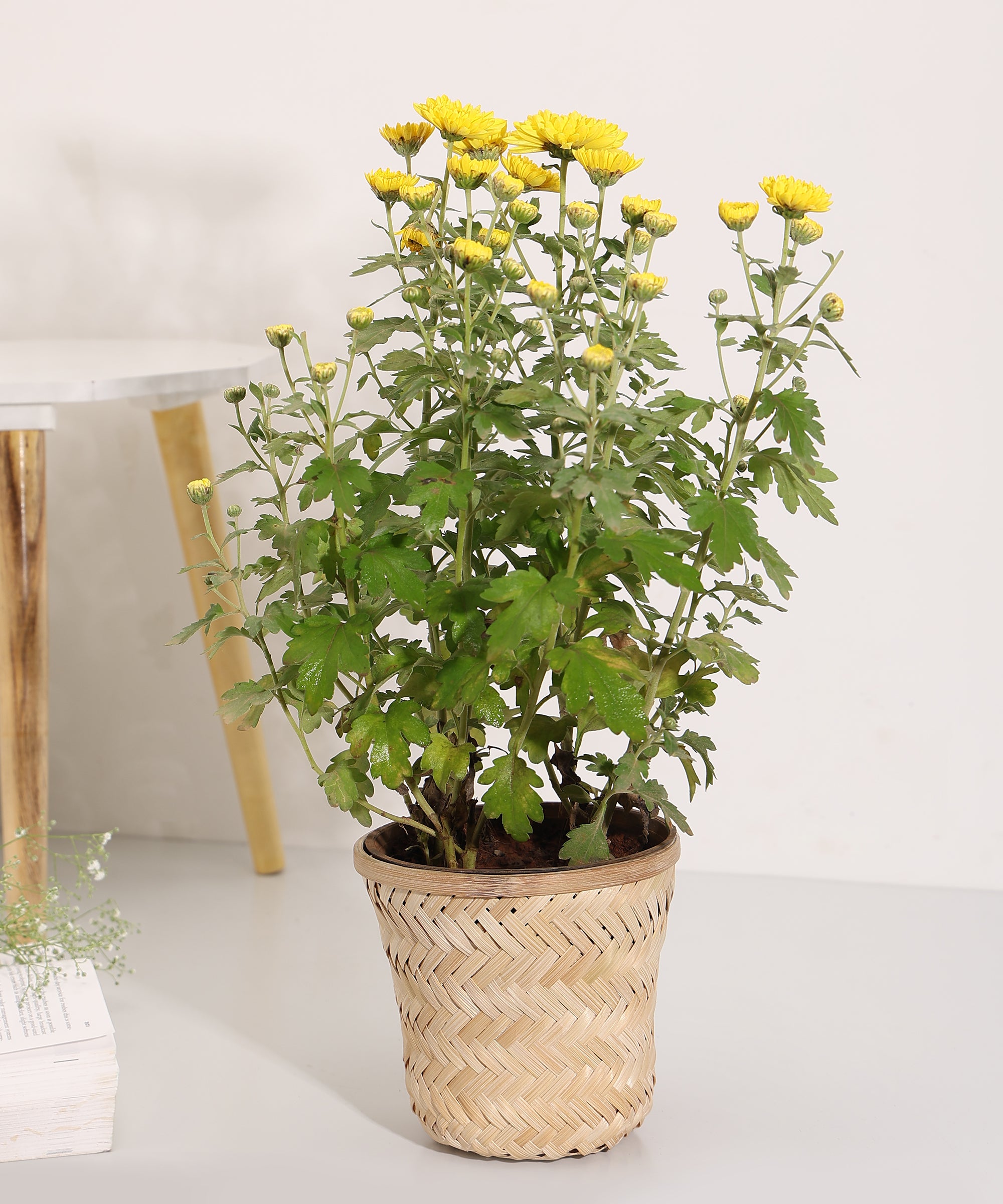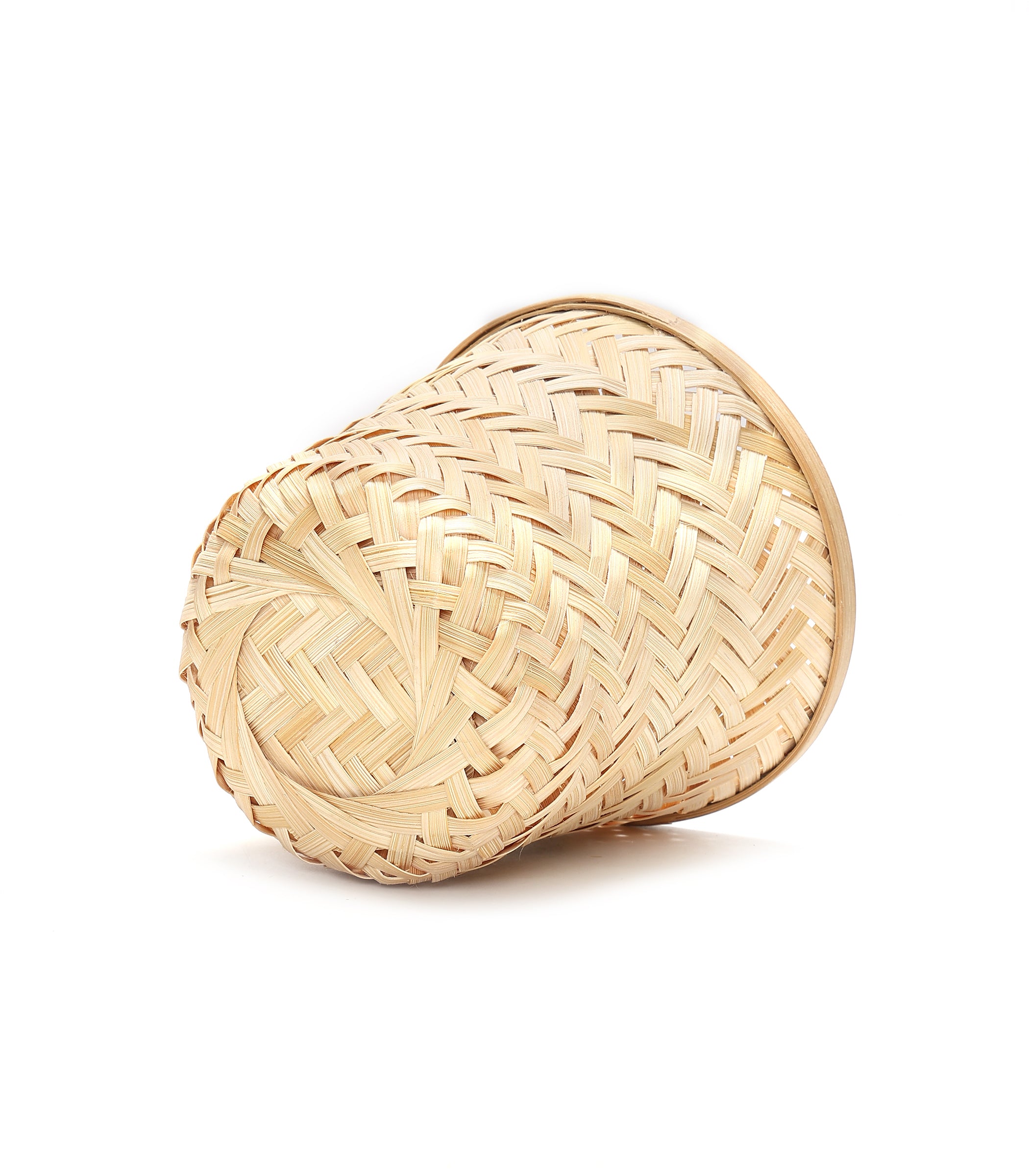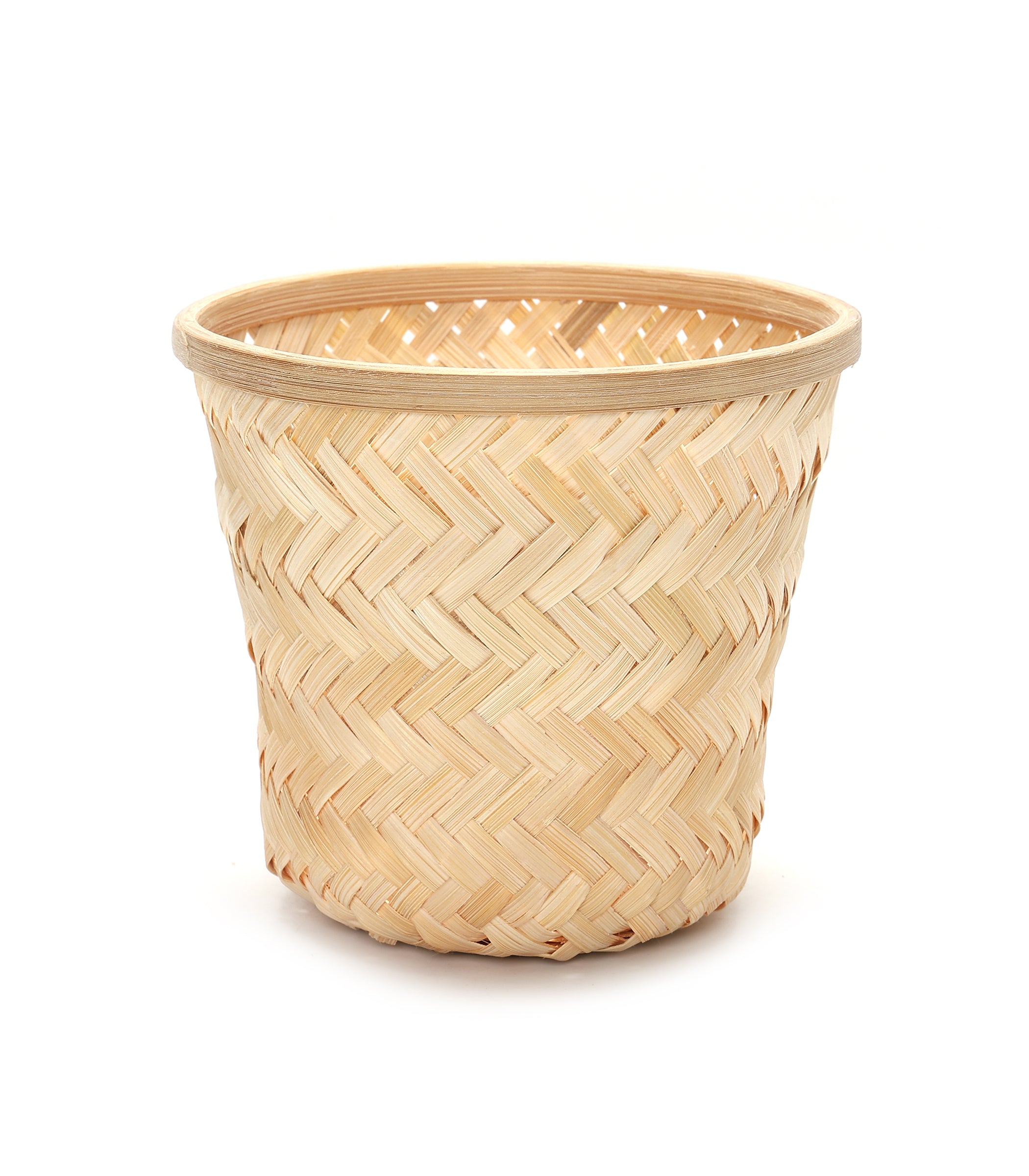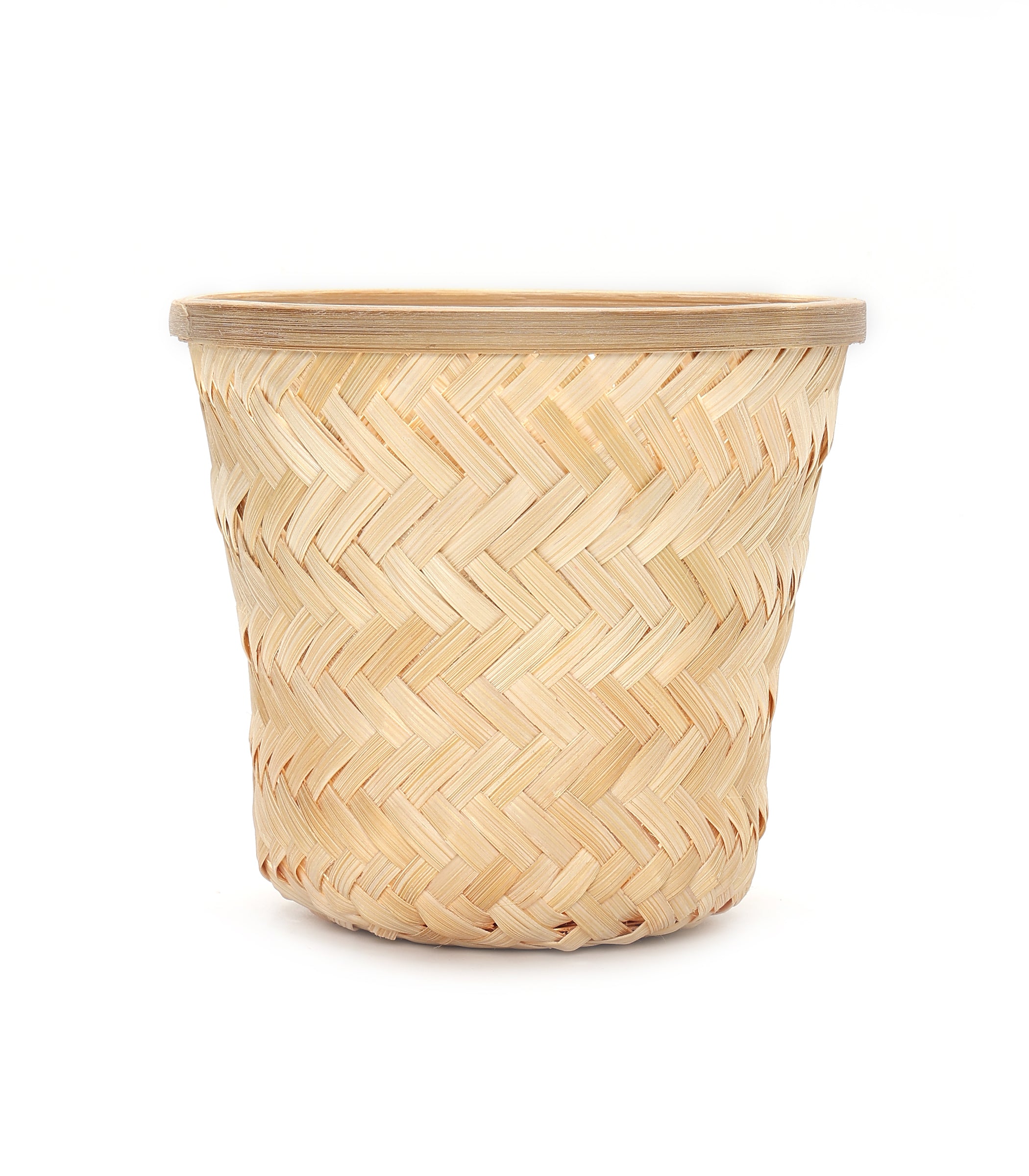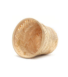 This planter features a close cross-weave pattern in bamboo, giving it a neat and uniform appearance. The light natural tone adds a soft, clean look that blends easily with different interior styles.