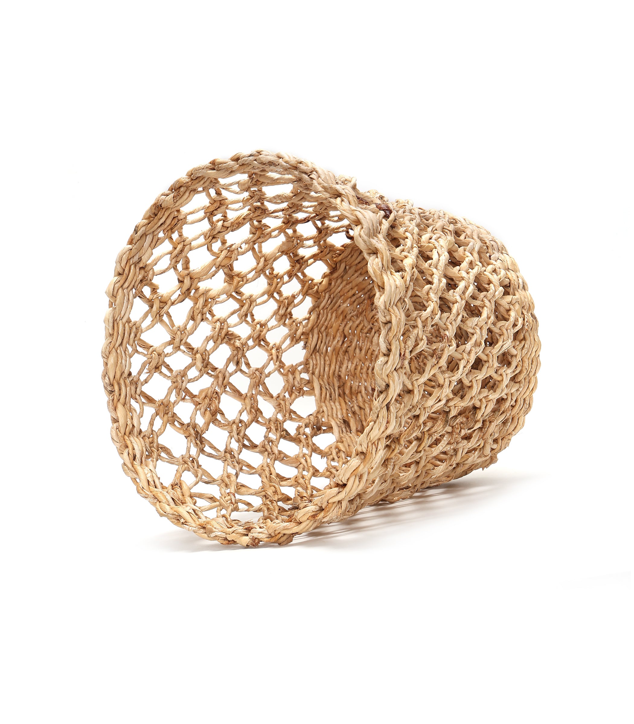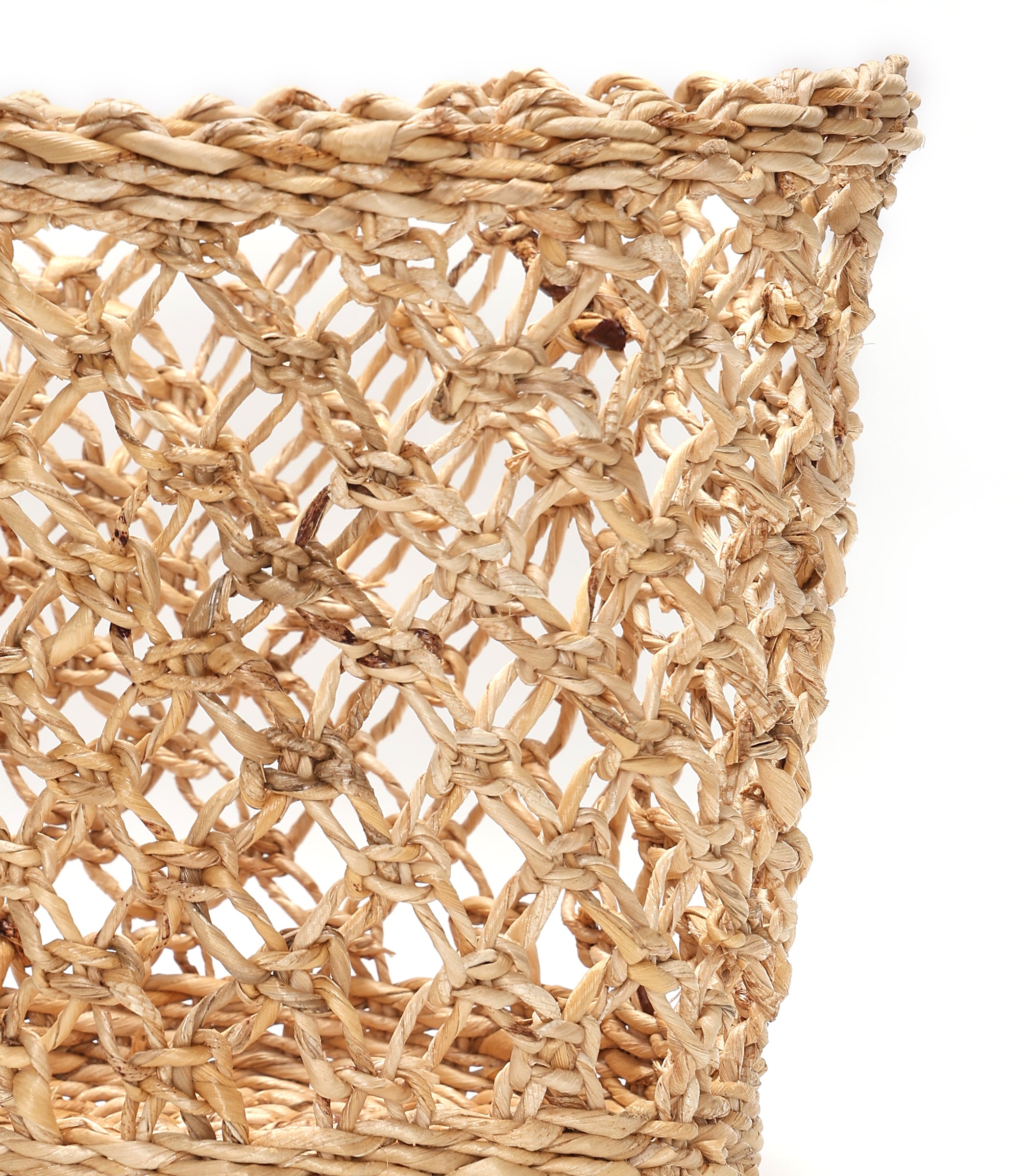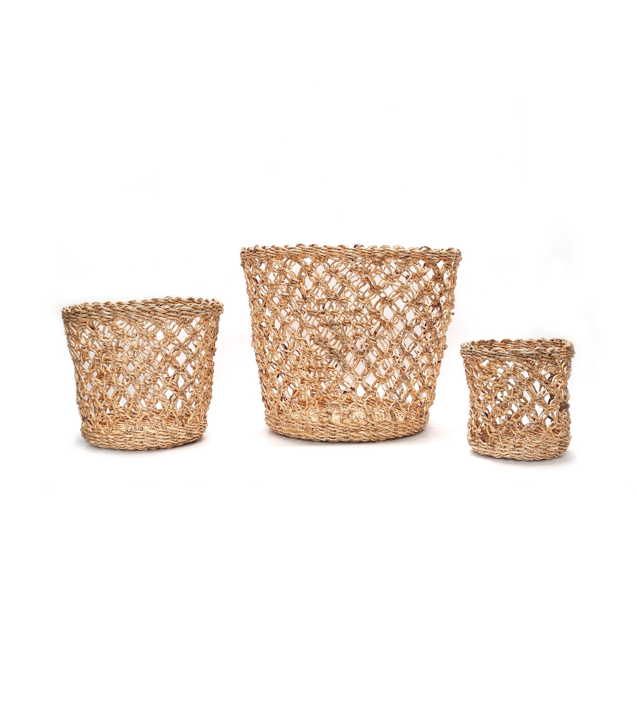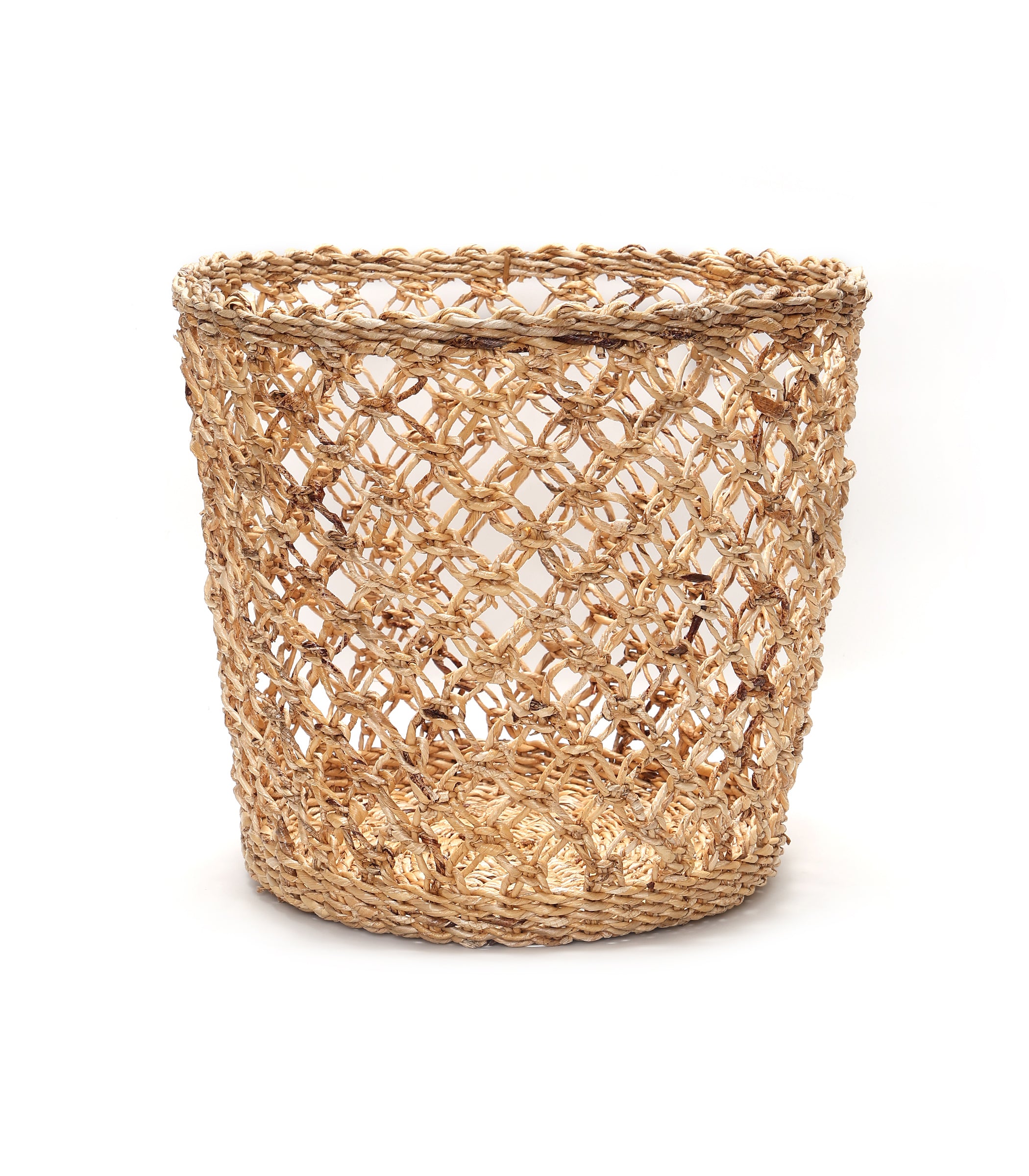 The open-weave structure supports airflow around the pot liner, and the lightweight build allows easy placement and movement.