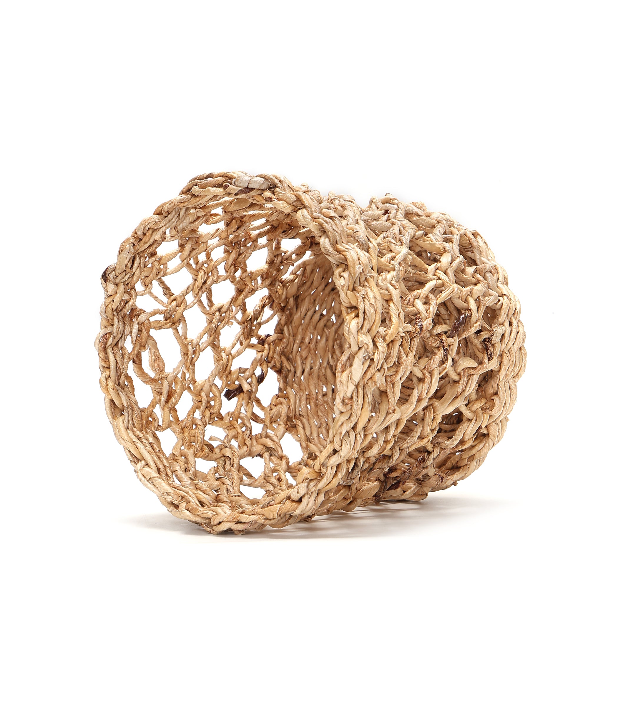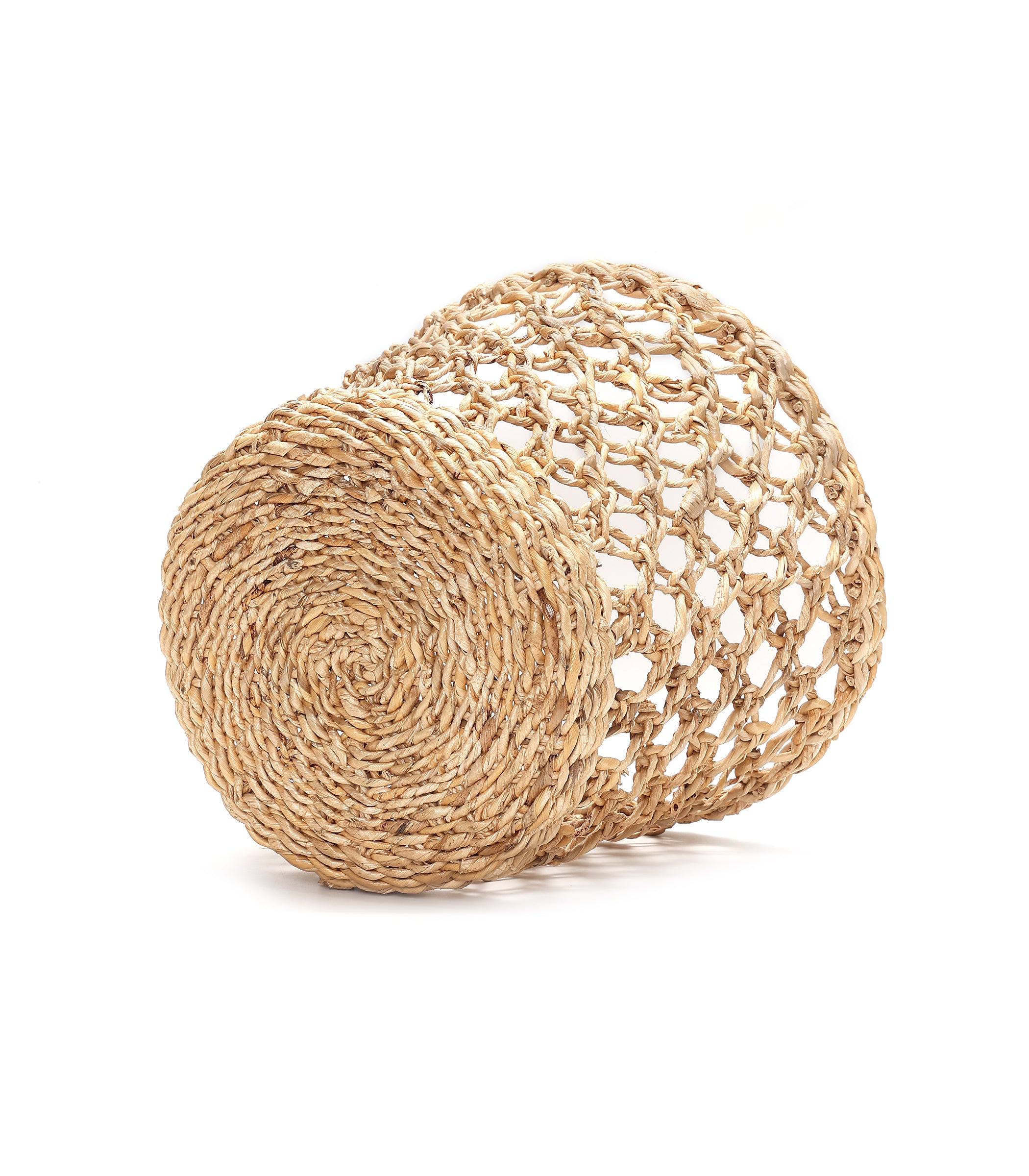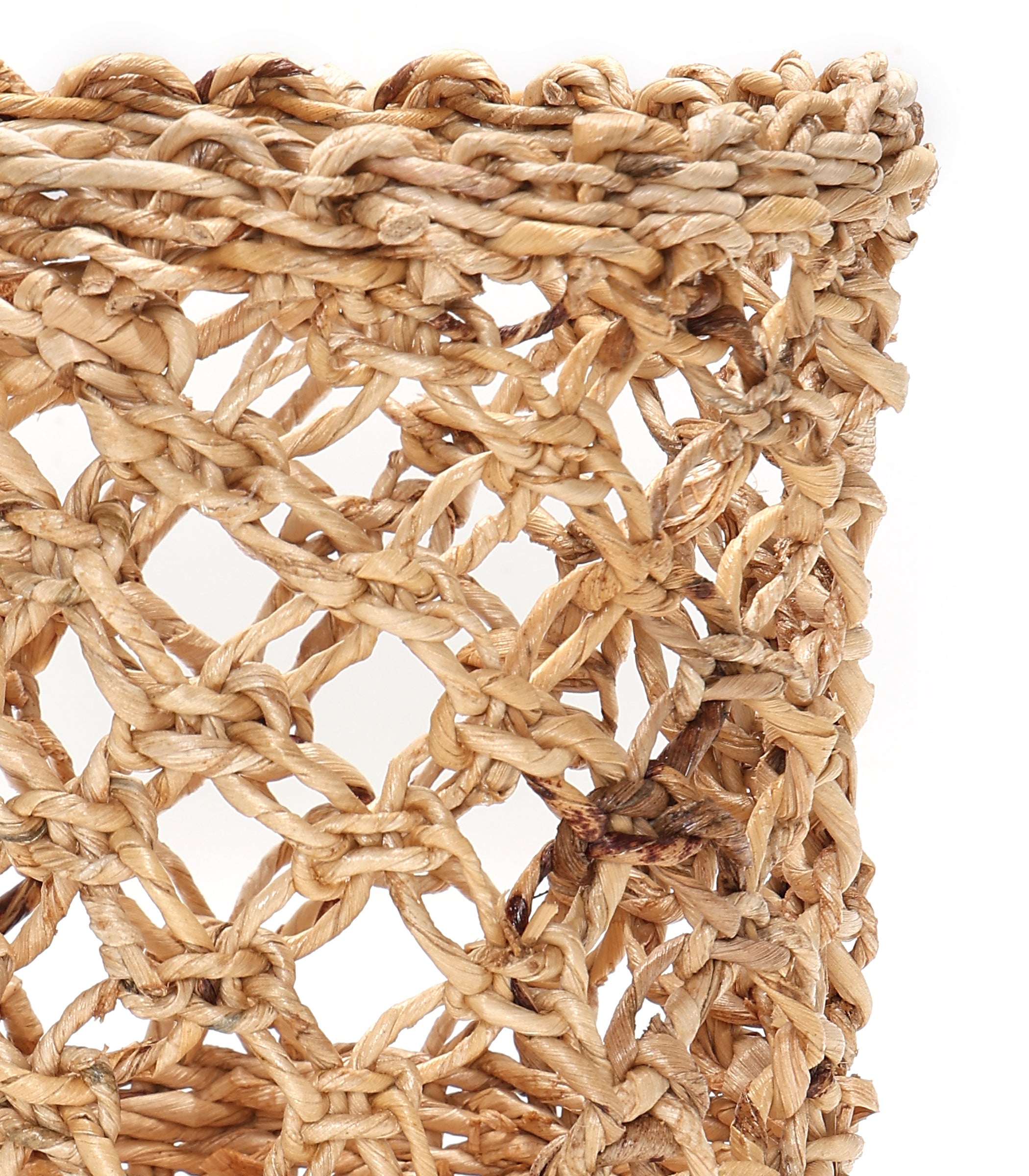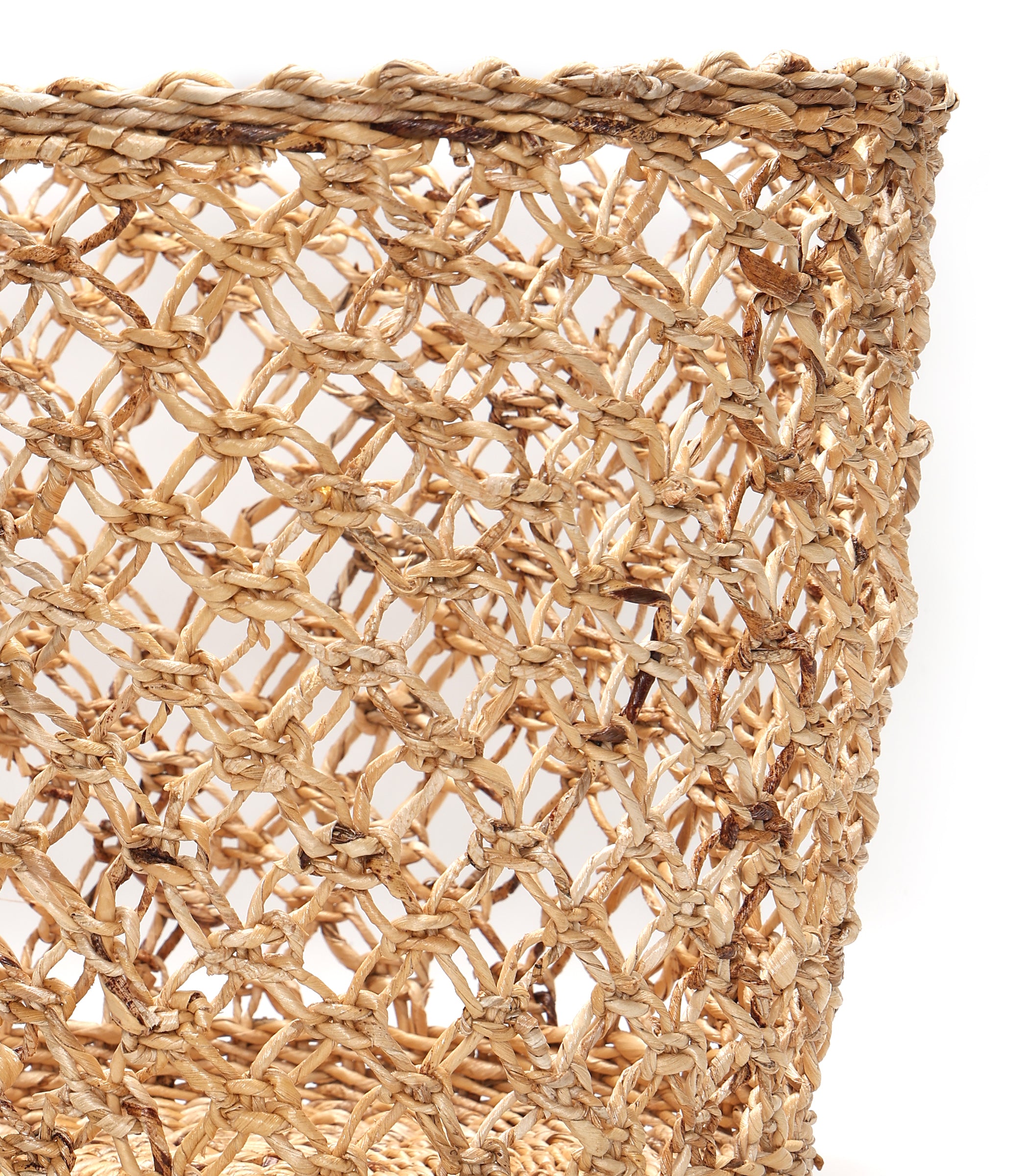 The open-weave structure supports airflow around the pot liner, and the lightweight build allows easy placement and movement.