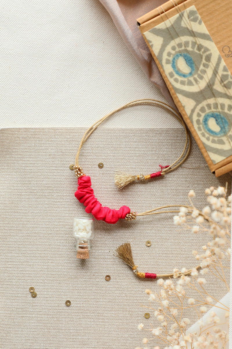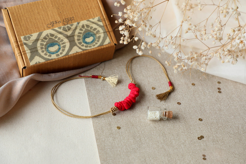Introducing Lukka Chuppi's beloved upcycled Rakhi—this year, crafted from leftover silk fabric for brothers who appreciate life's subtle twists. Minimalist, artistic, and handmade, each piece is carefully created using post-production remnants.
