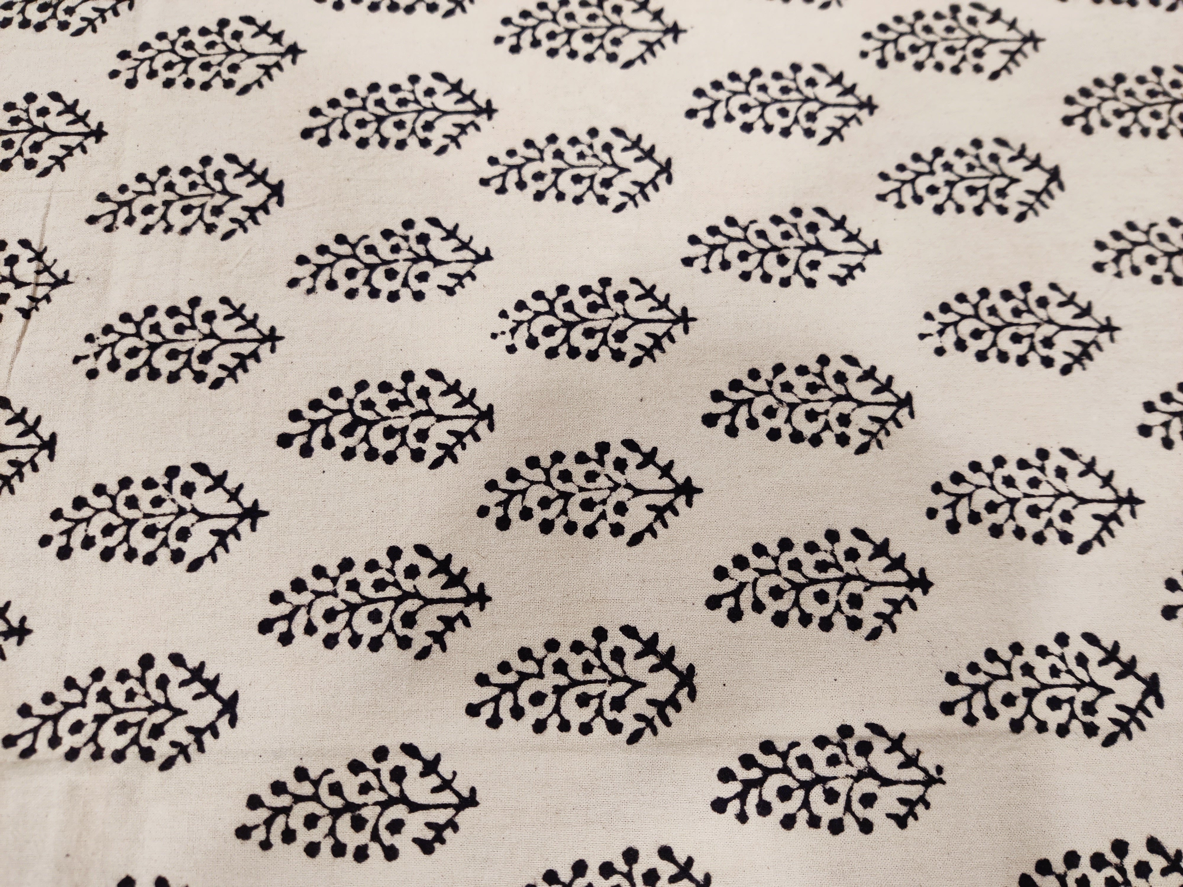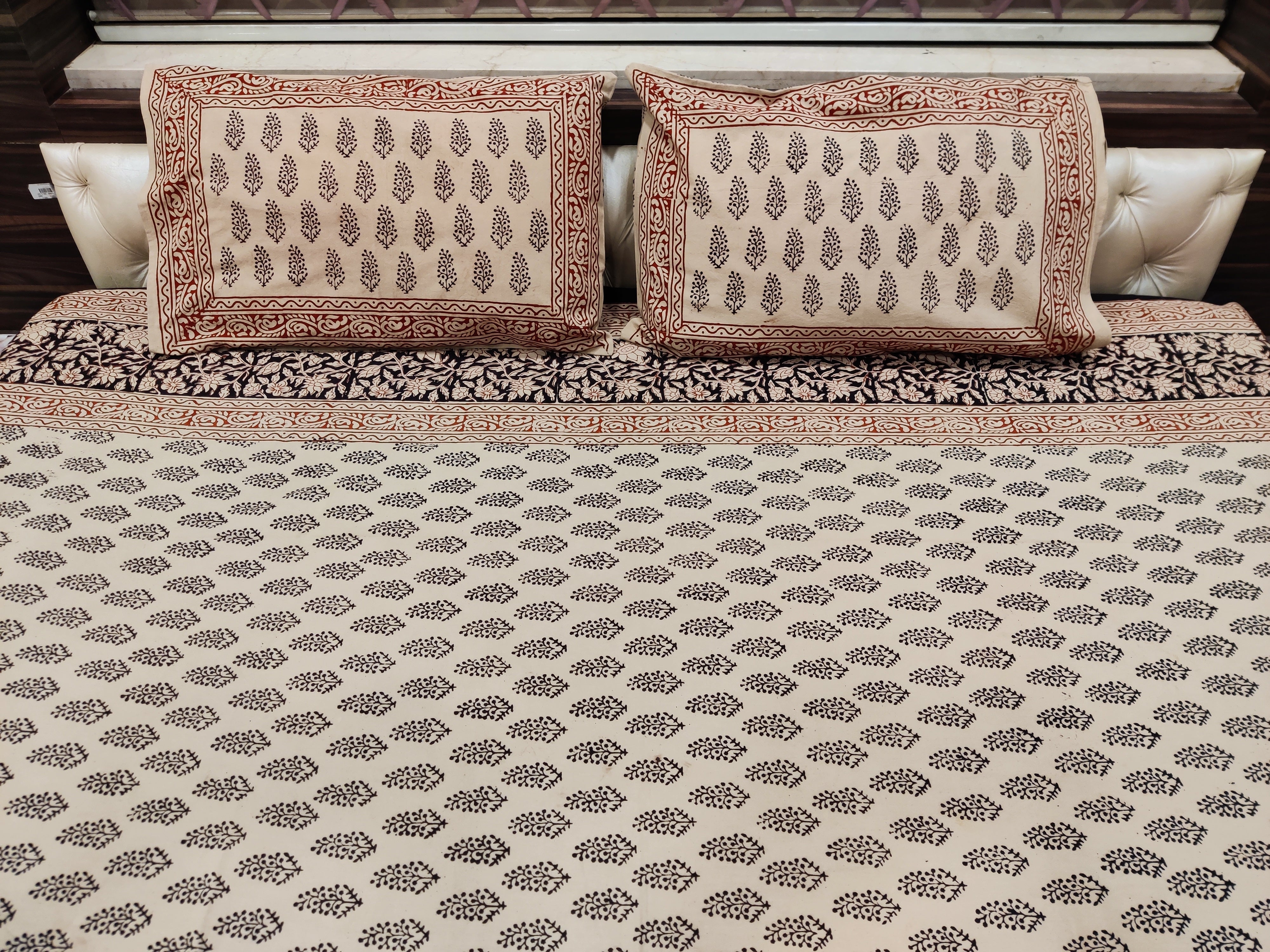 Cotton hand block printed king size bedsheet with pillow covers ( 100 x 108 inches) - Bagru Print