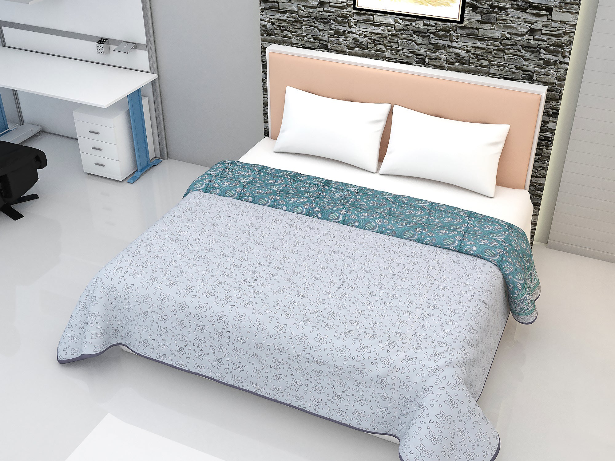 Block Printed Cotton Blanket - Double Dohar ( 90 x 108 Inches) - Green Grey Net