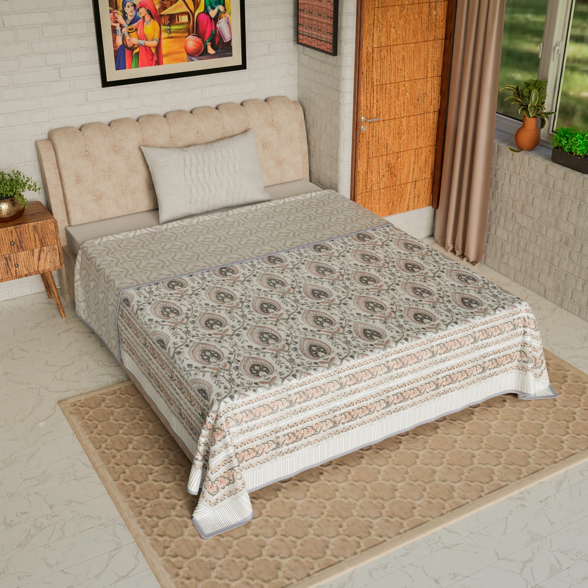 Blanket single bed: (60 X 90 Inches) – Pure cotton A/C Dohar - made by hand block printing process.