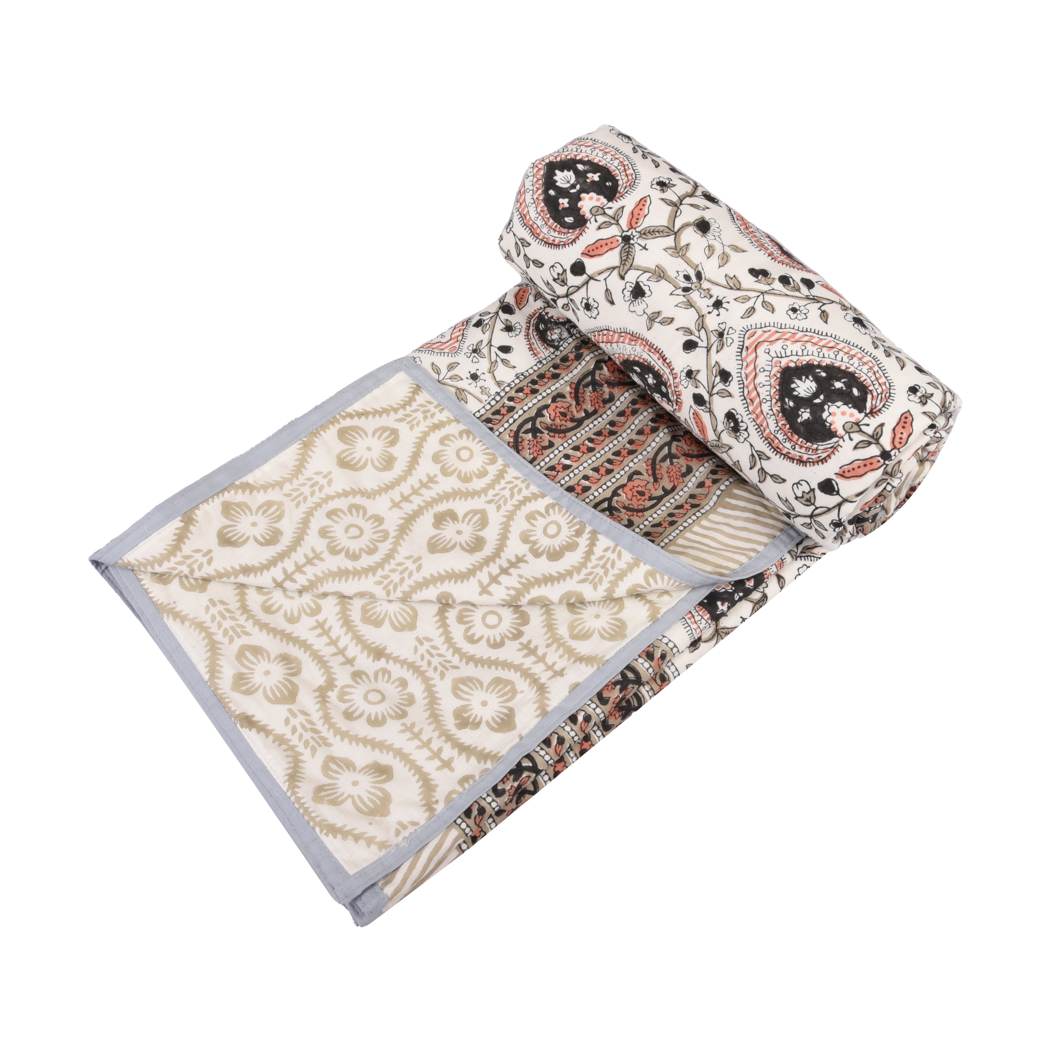 Cotton Blanket - Single Dohar ( 60 x 90 Inches) Orange-Grey Floral