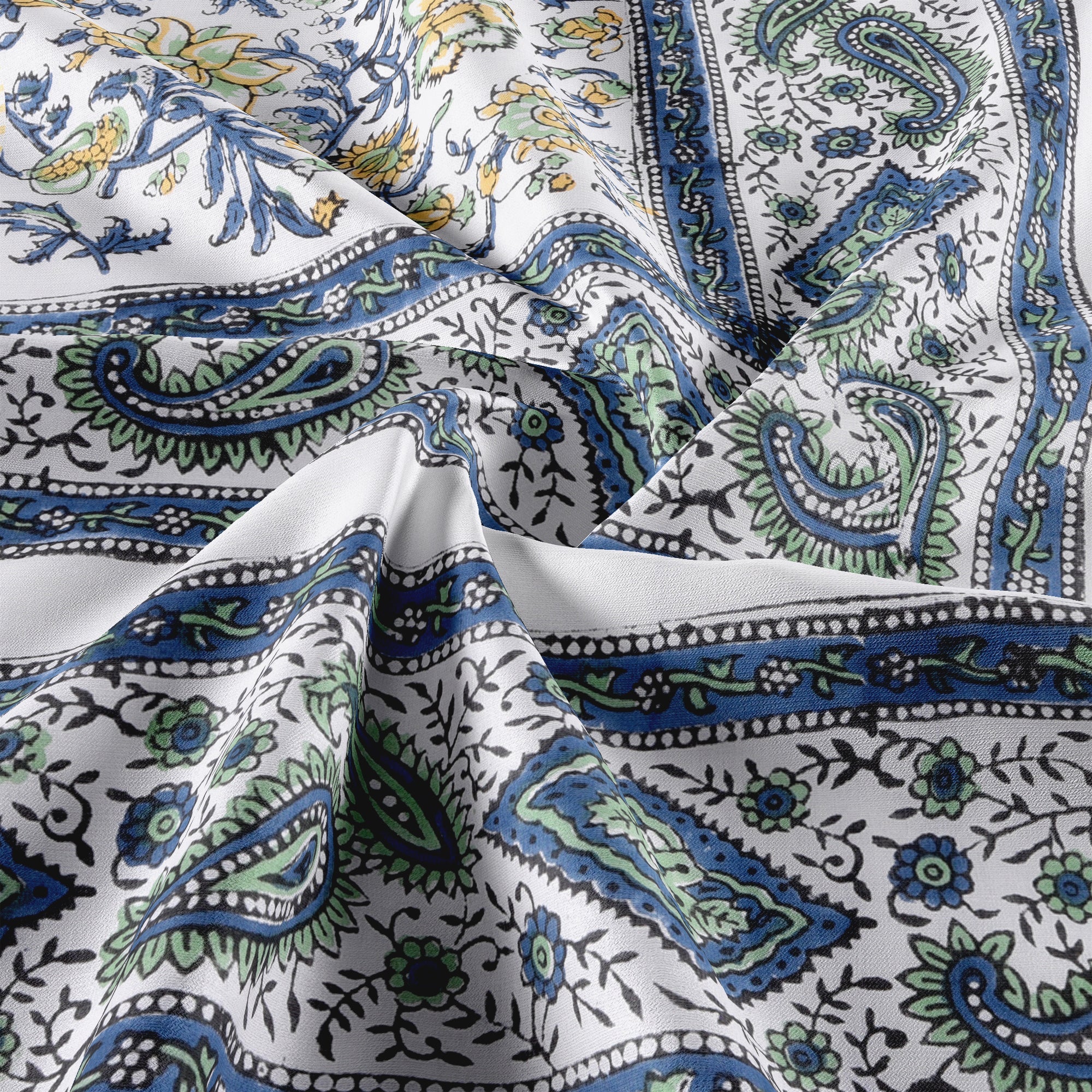 Cotton Blanket - Single Dohar ( 60 x 90 Inches) Green Yellow Blue Floral