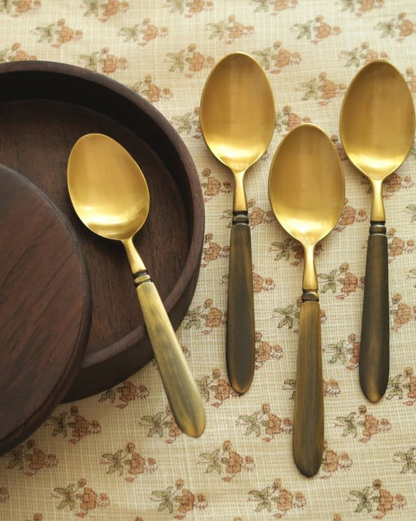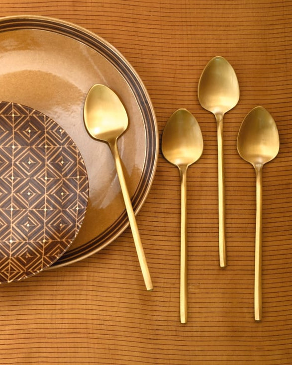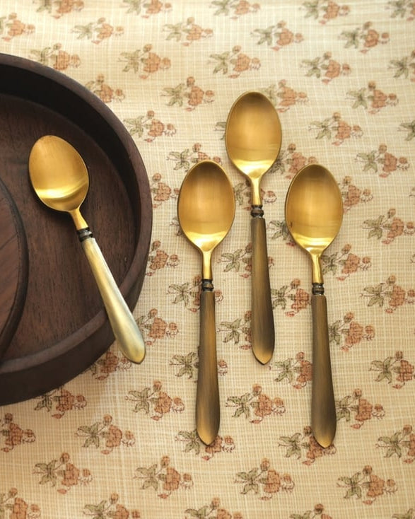 Ans. Small brass spoons offer a blend of durability and aesthetic appeal. They are sturdy and resistant to corrosion, ensuring longevity. Their elegant design adds a touch of sophistication to serving, making them ideal for special occasions.