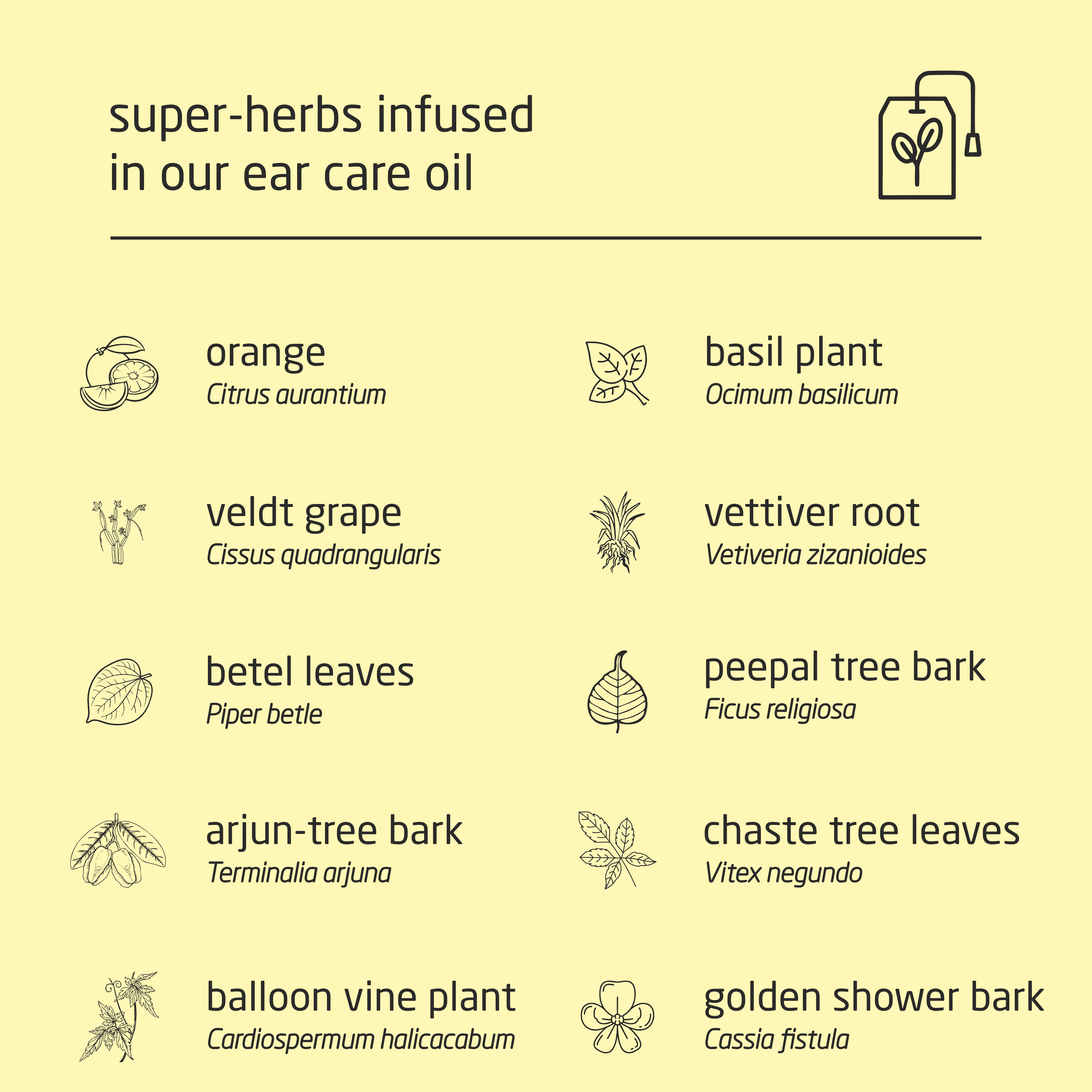 Oil made by cold-infusing 20+ indigenous herbs in wood-pressed coconut oil to strengthen ear drums, balance head and to improve hearing