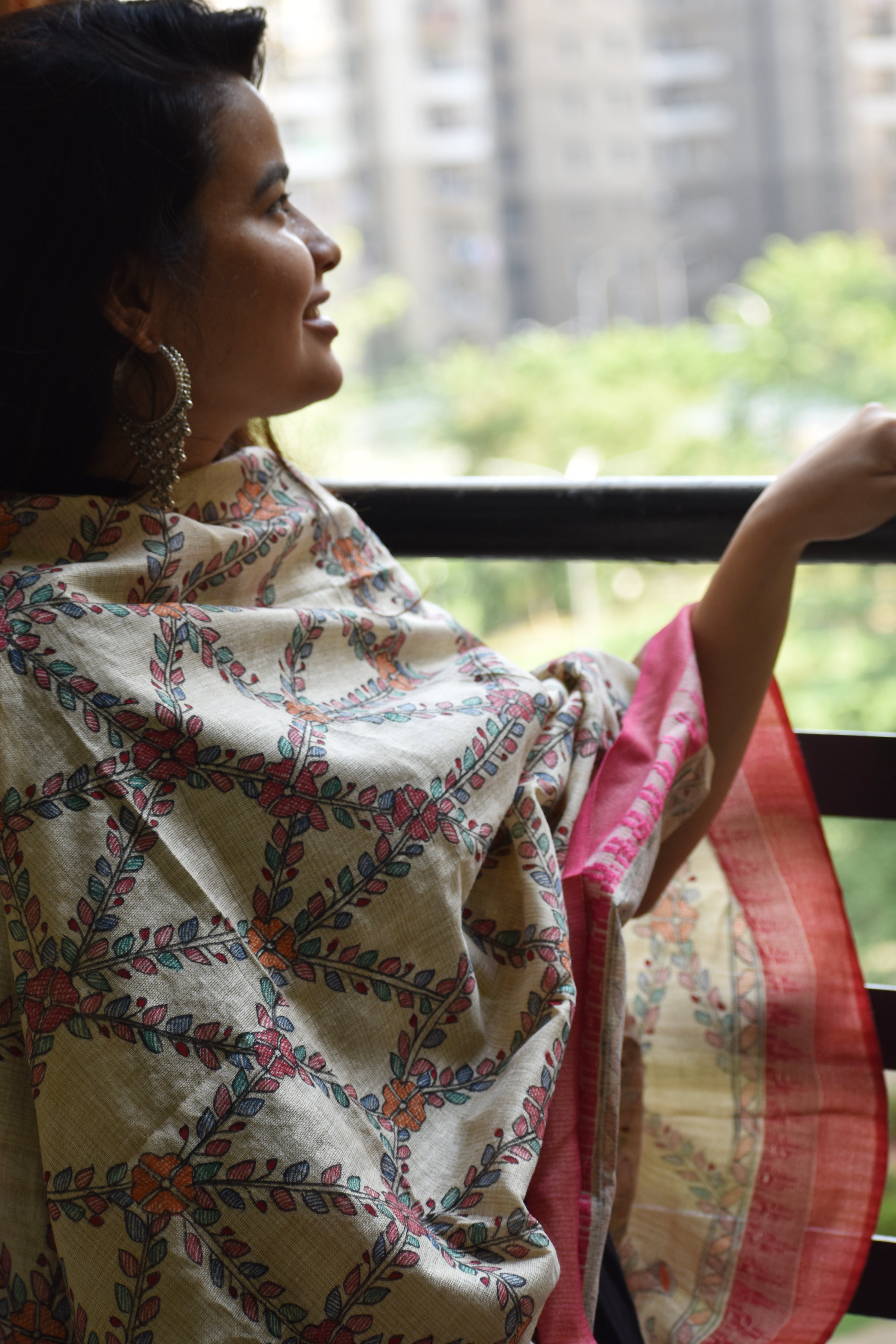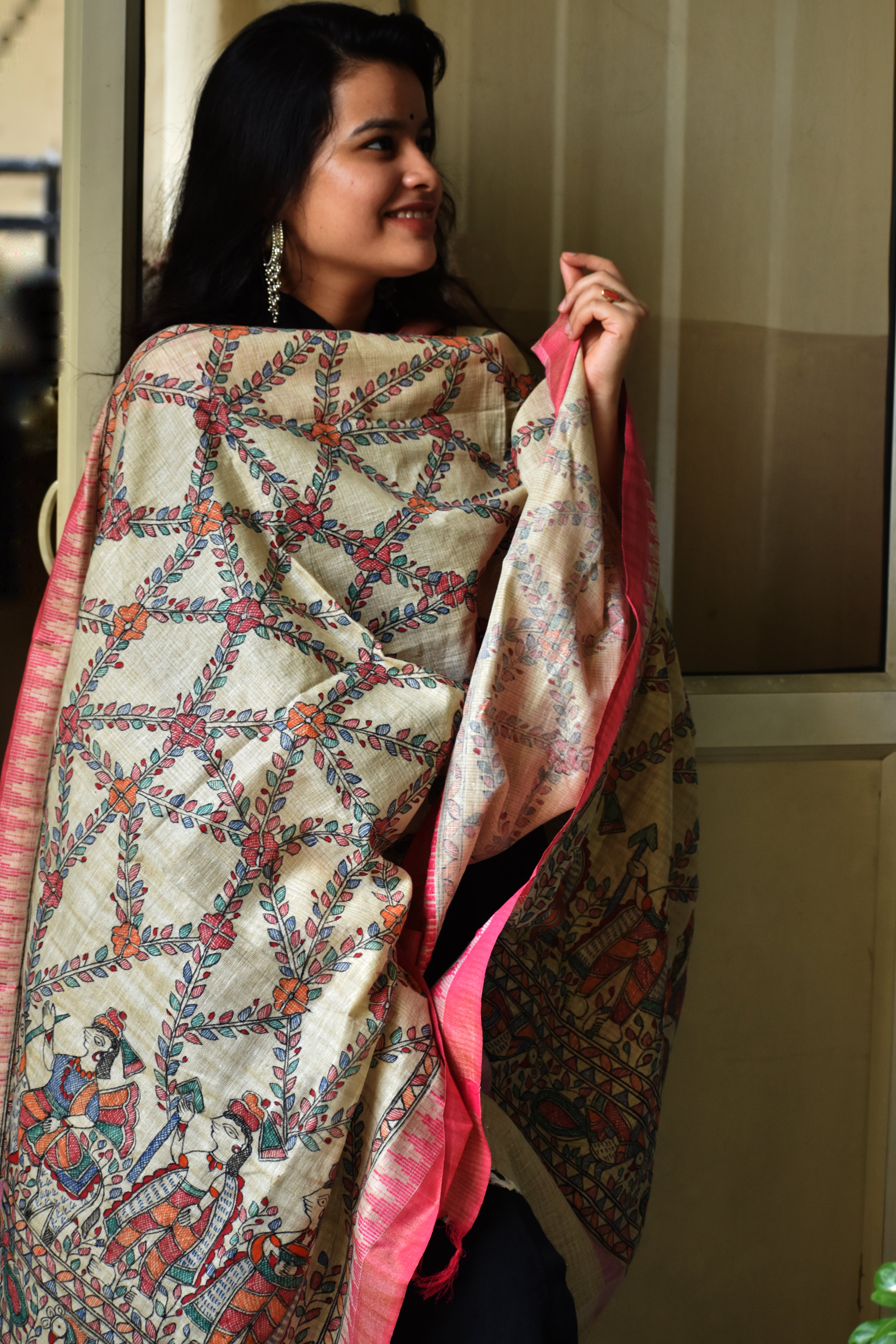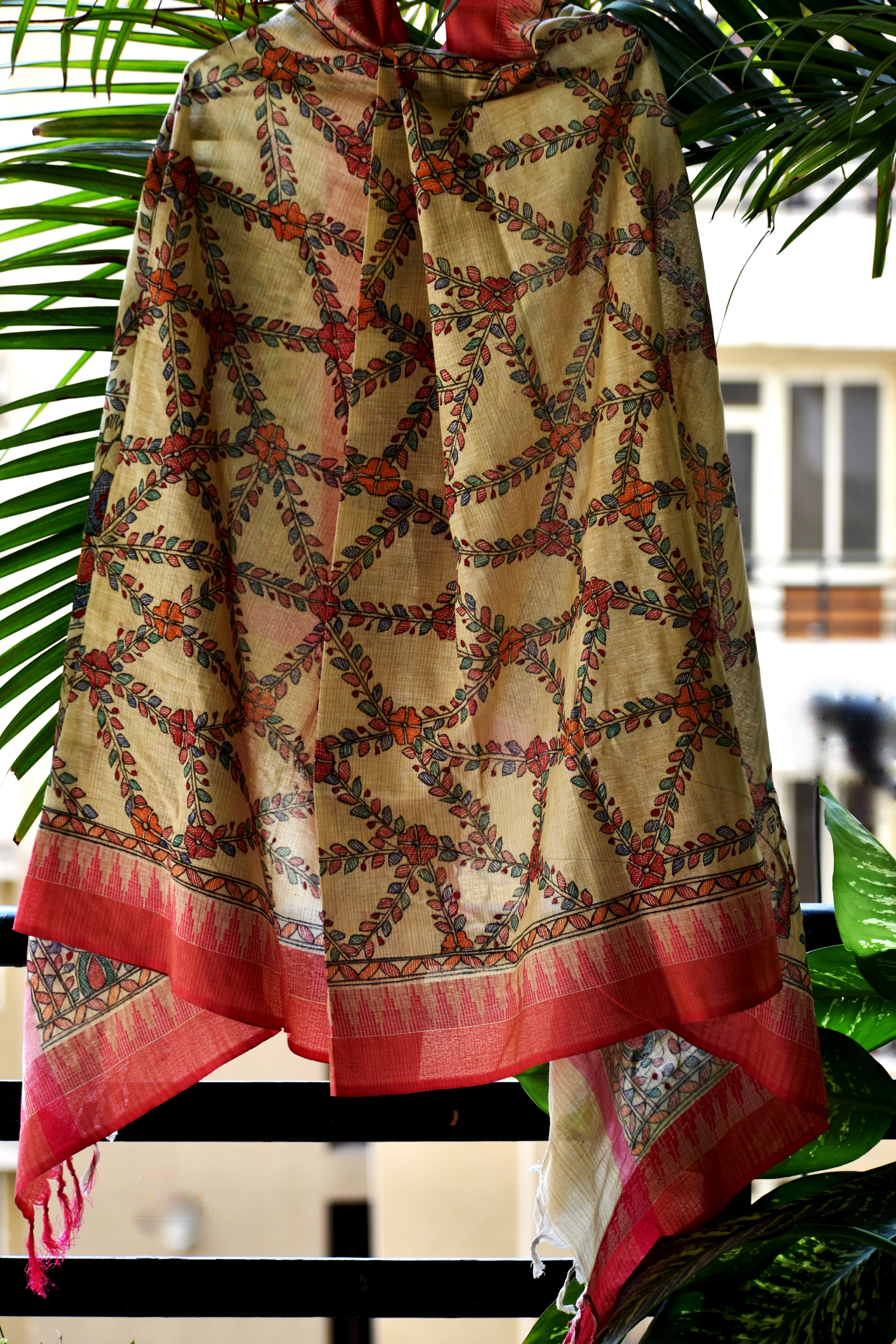 Madhubani Hand-Painted Cotton Dupatta 4
