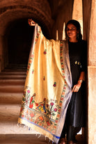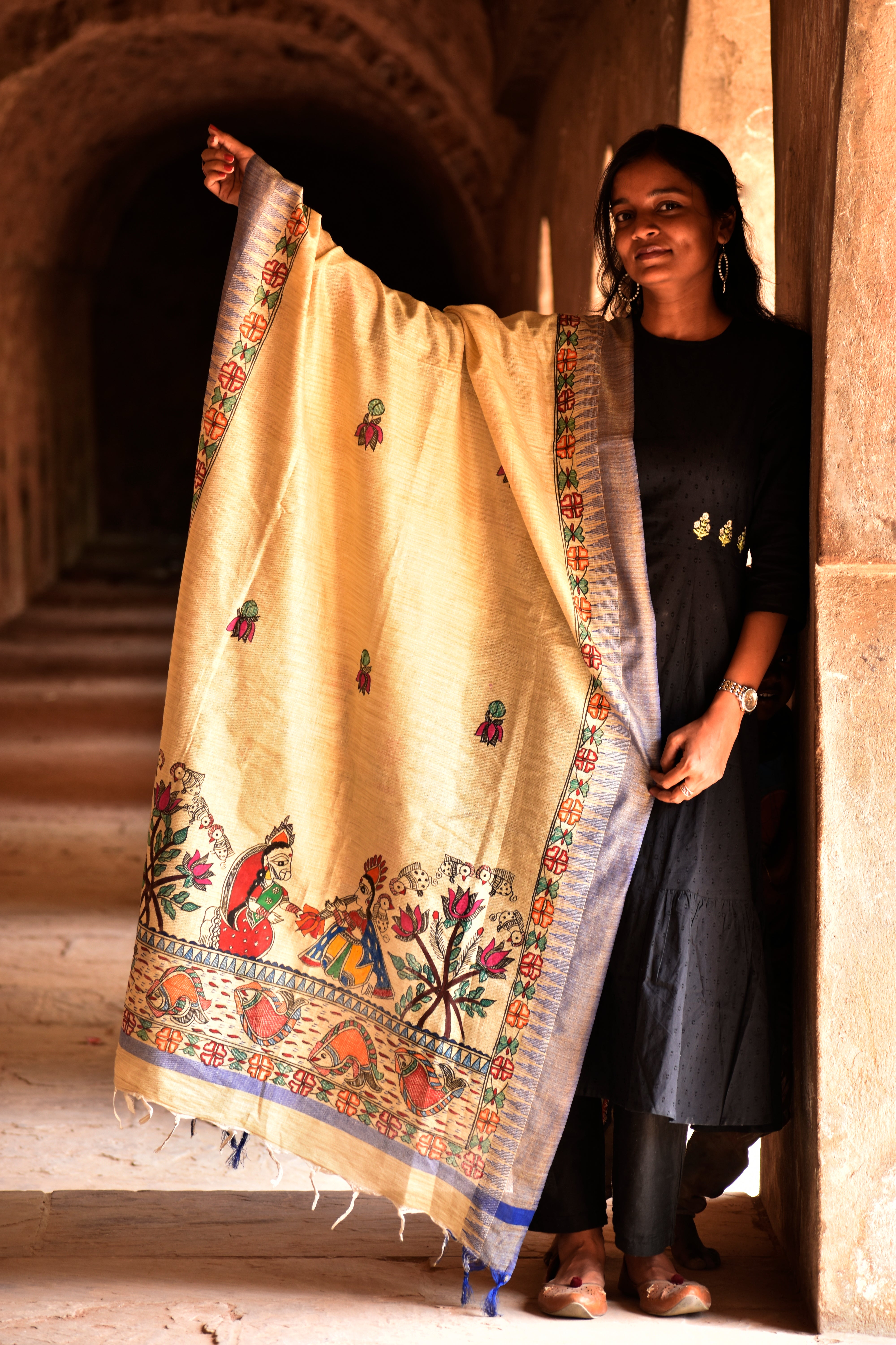 Madhubani Hand-Painted Radha Krishna Cotton Dupatta