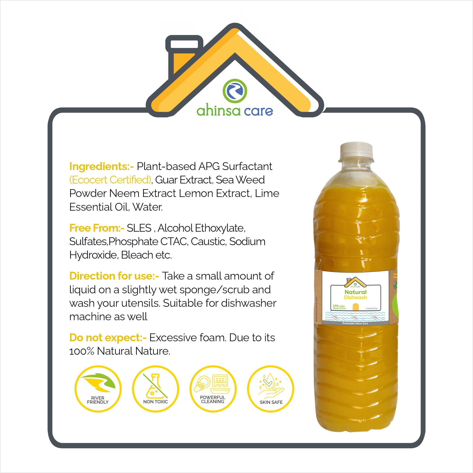 "Natural Dishwash: Simply dilute, scrub, and rinse for spotless dishes.