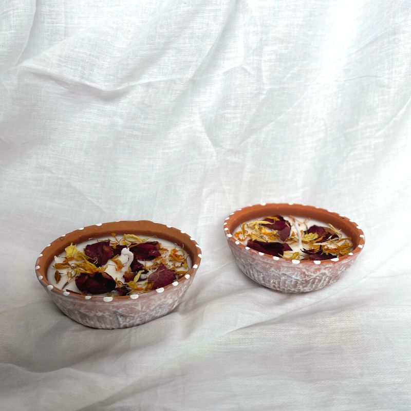 Our set of 2 artisanal candles are hand poured in small batches with natural ingredients in mind. Inspired by summer, these candles are made with soy wax and topped with rose and marigold.