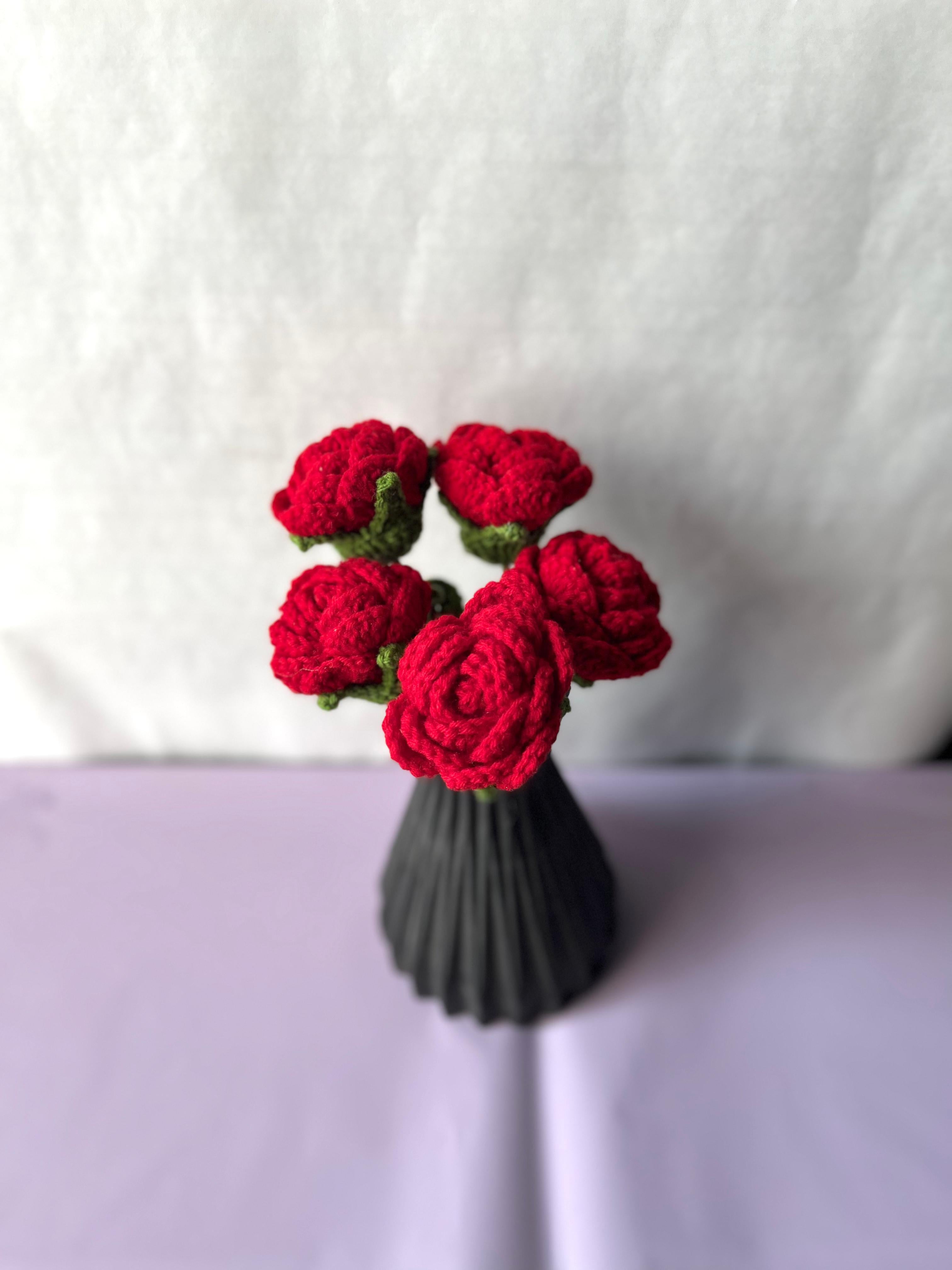 ntroducing our beautifully handcrafted crochet red rose, a timeless symbol of love and passion. Measuring 10 inches in circumference, this exquisite piece is meticulously crafted from premium yarn, ensuring a lifelike and enduring bloom that never wilts. Perfect for gifting, this red rose embodies heartfelt emotions, making it an ideal present for anniversaries, Valentine's Day, or any special occasion. Its vibrant color and intricate details add a touch of elegance to any decor, be it a romantic dinner setting or a cozy living room. This crochet rose not only conveys deep sentiments but also serves as a lasting reminder of cherished moments, making it a gift that speaks volumes.