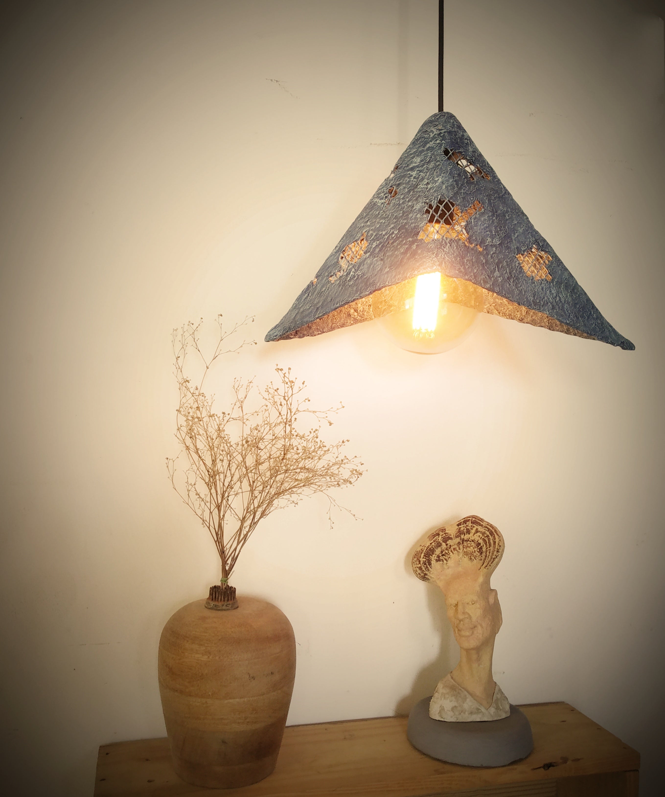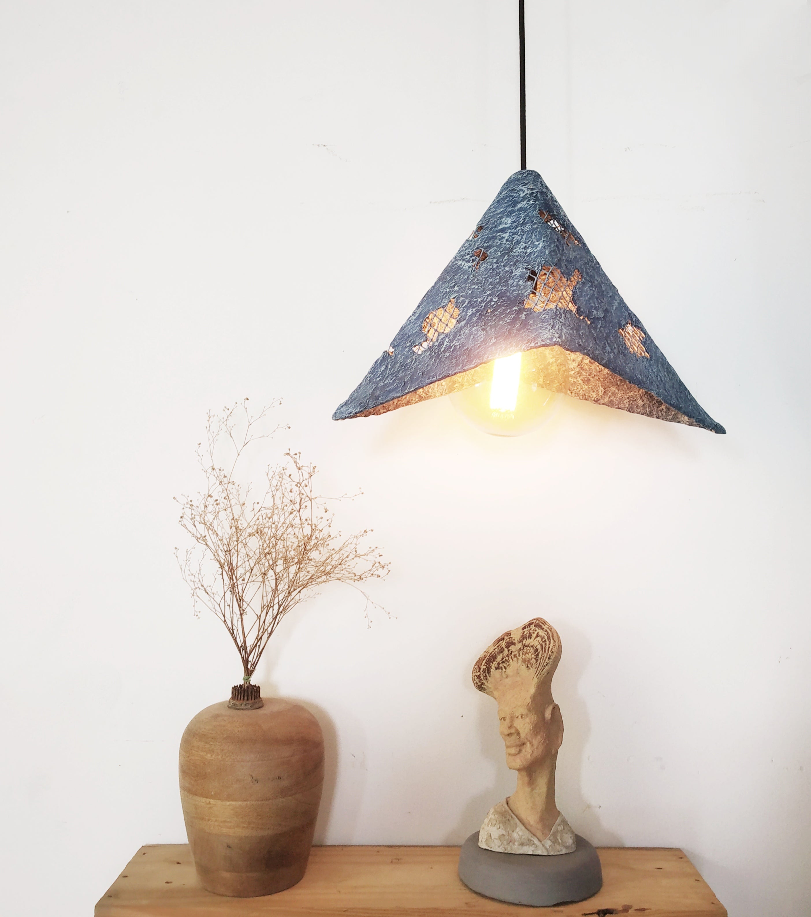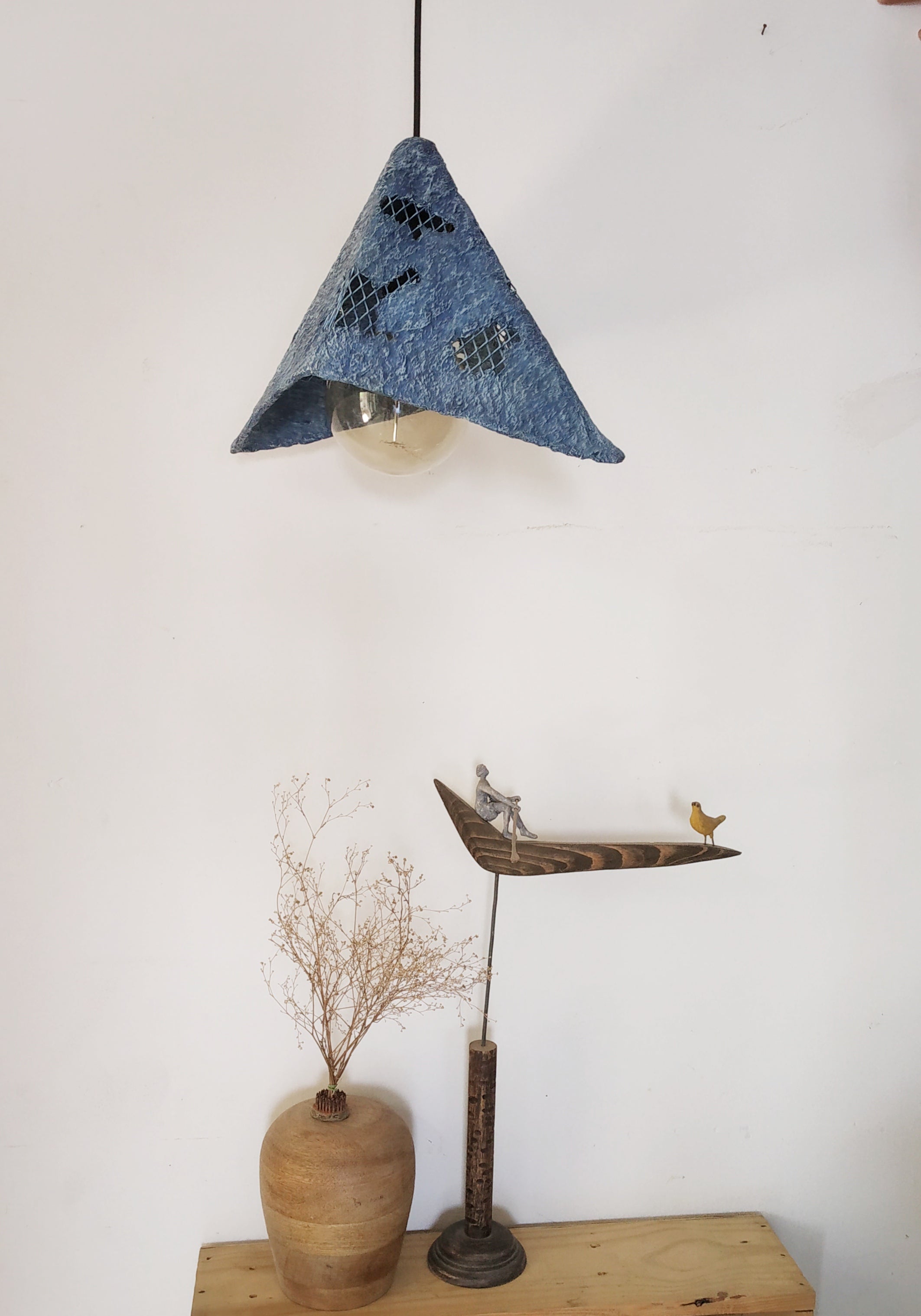 Mesh Lamp! A handcrafted papier-mache hanging lamp, sculptural lamp is an art with utility. Aesthetic with utility, brightening a sustainable home.