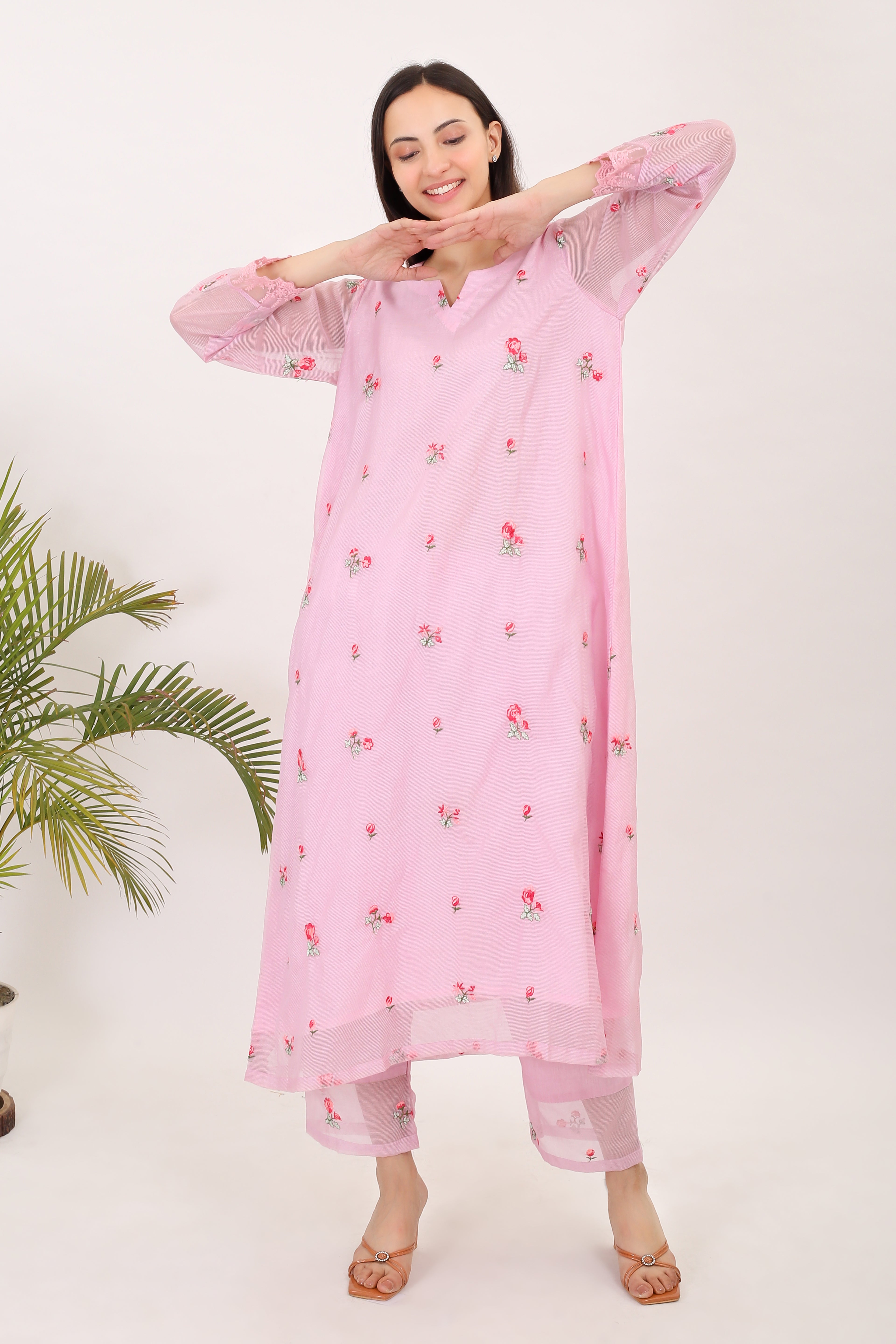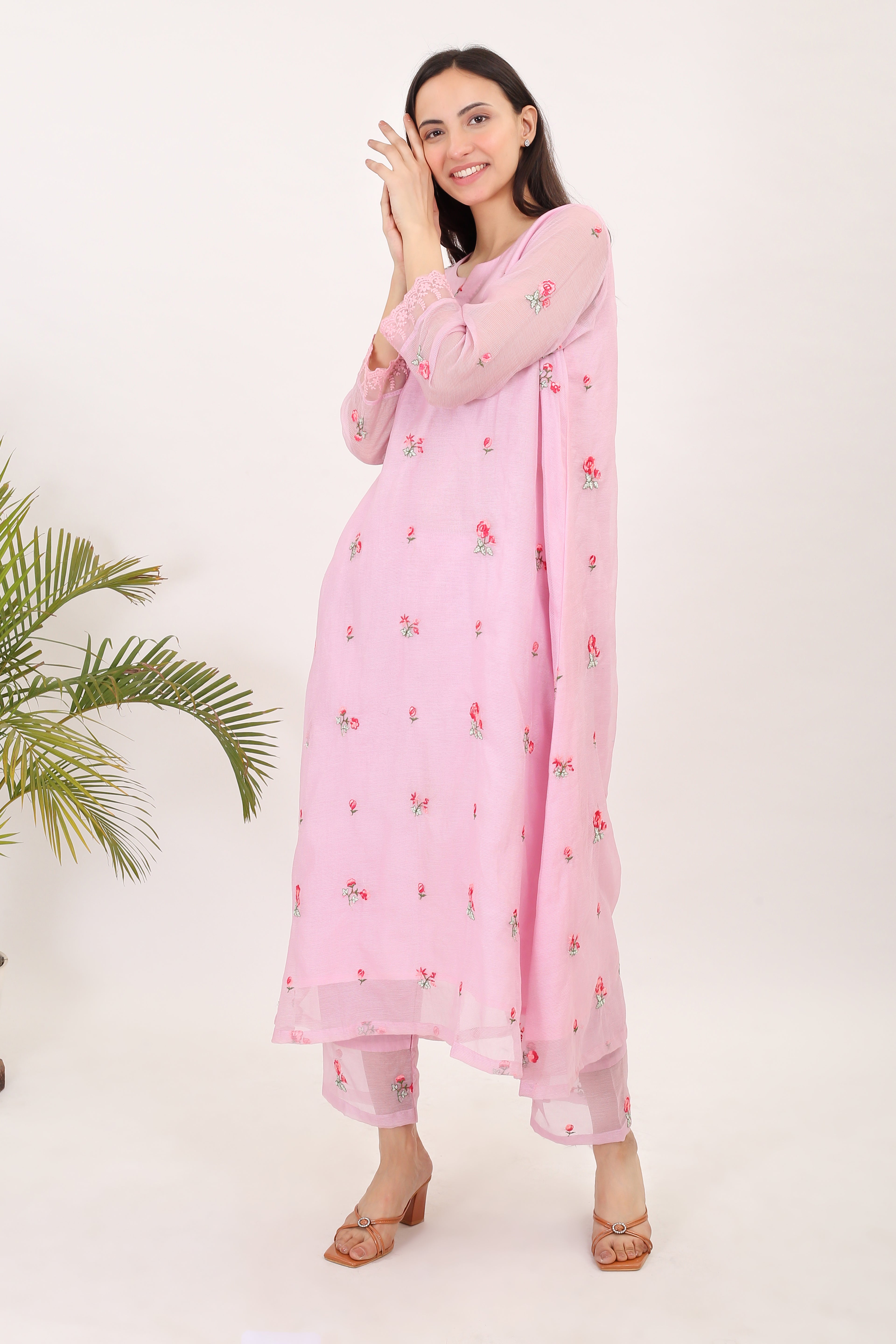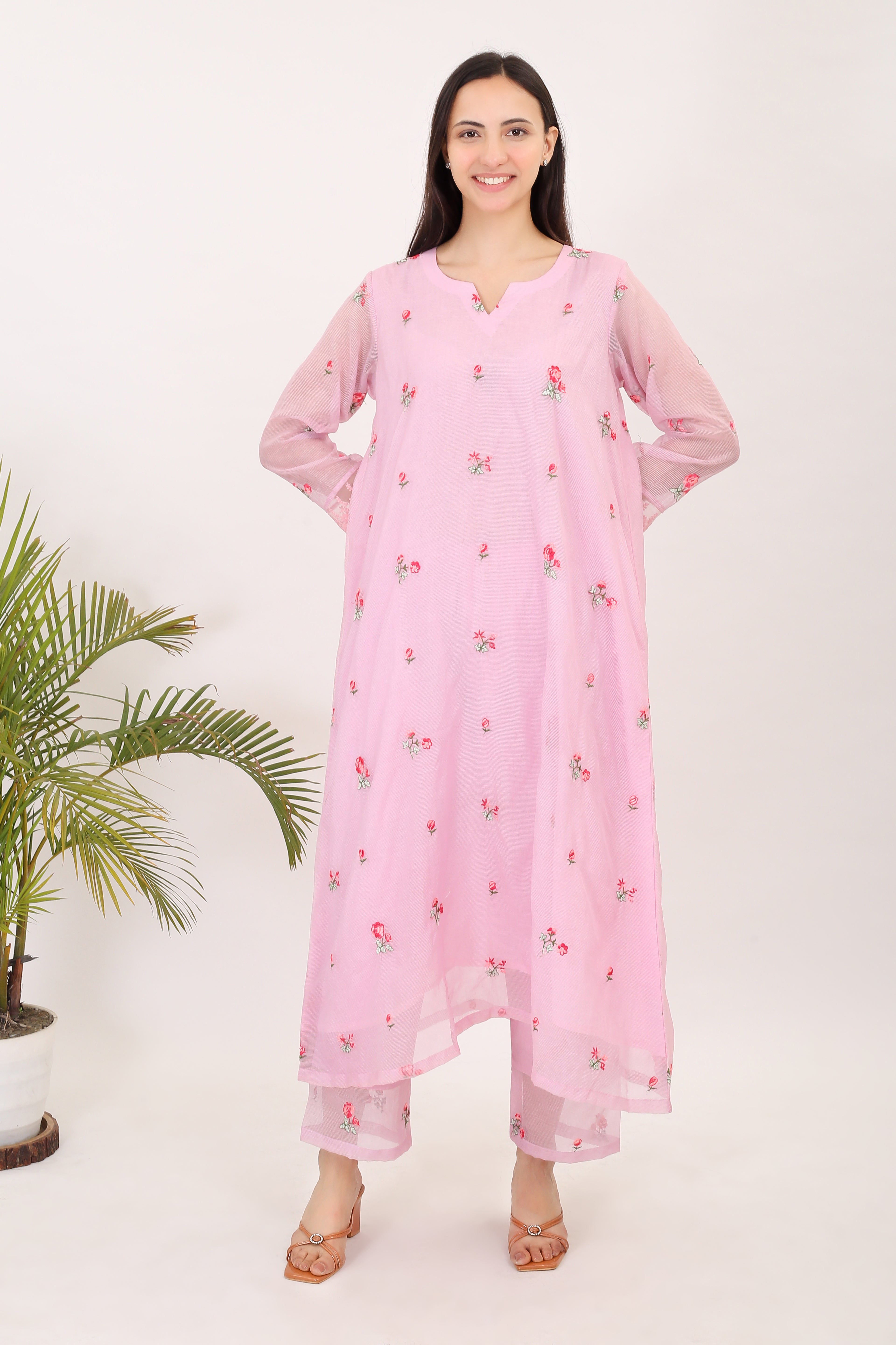 ROSEMARY'S SONG: Kota doria embroidered women kurta set