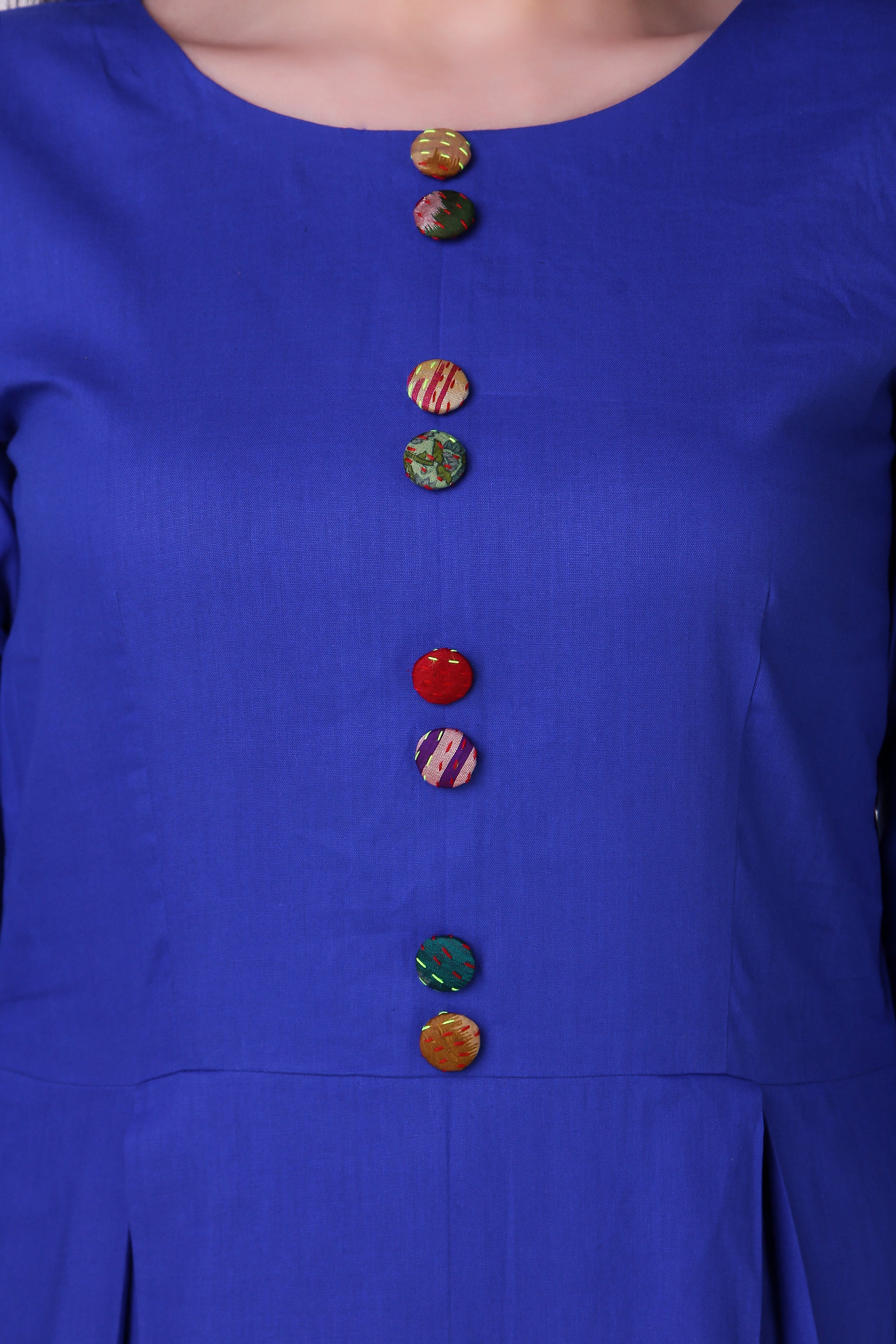 THE BLUE FLOWER: Hand block printed cotton dress with pearl detail