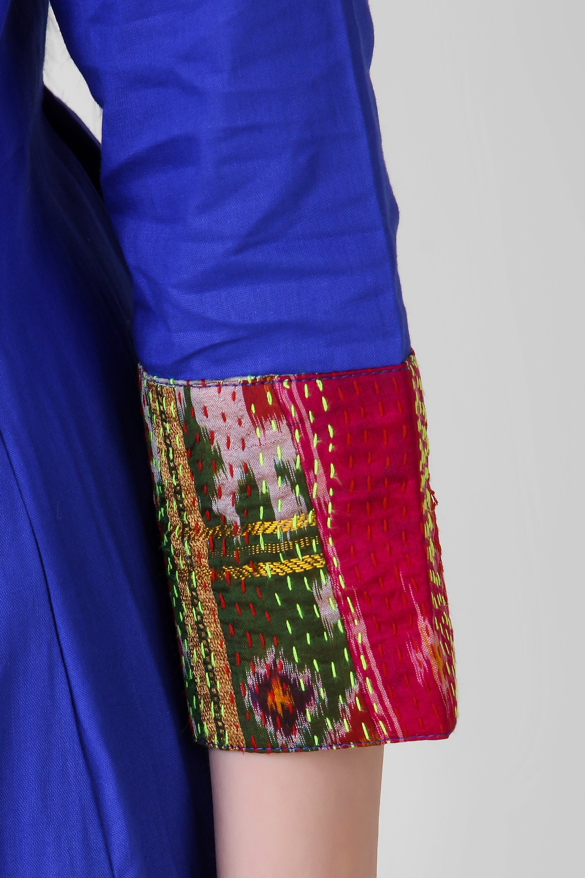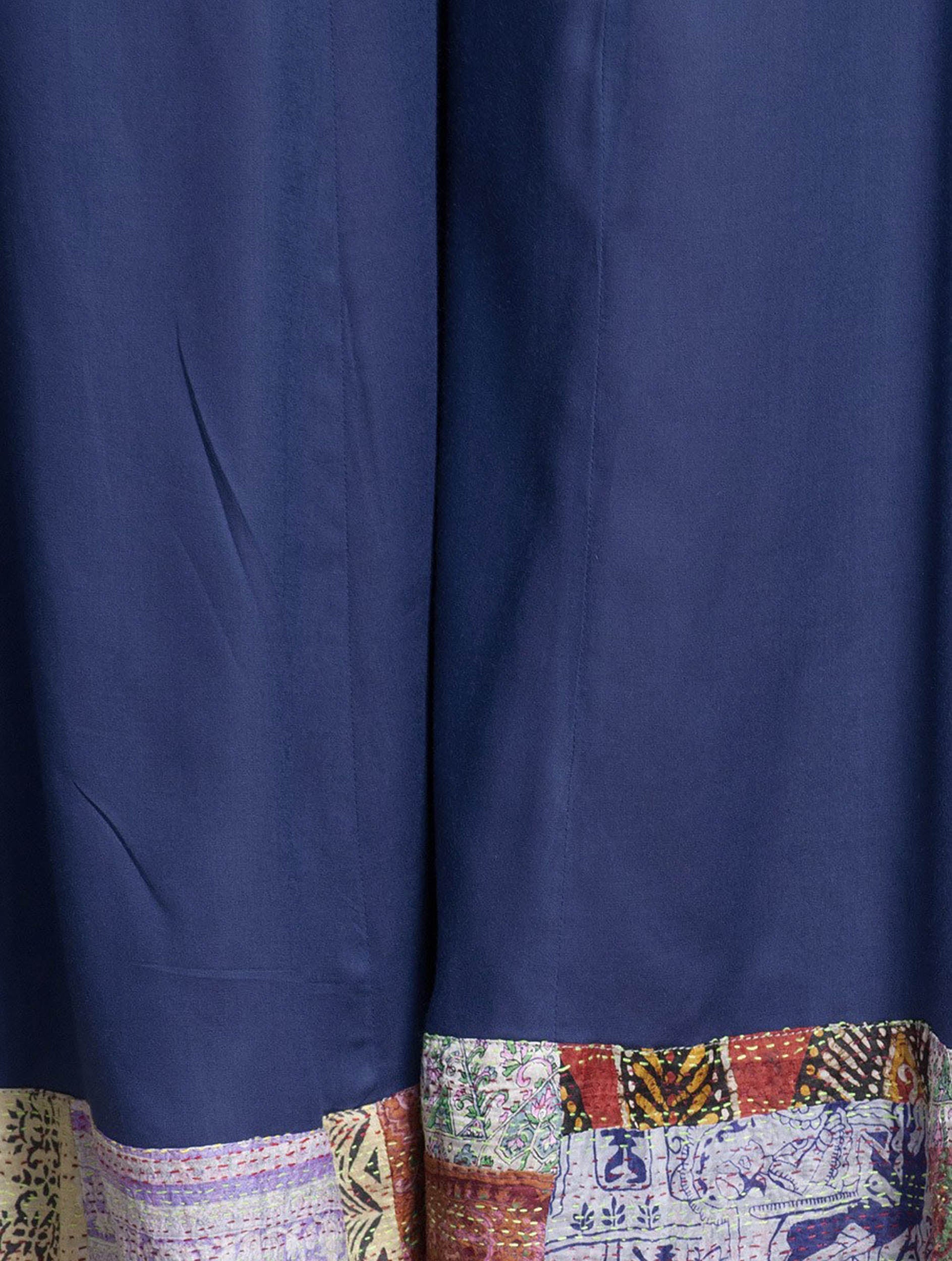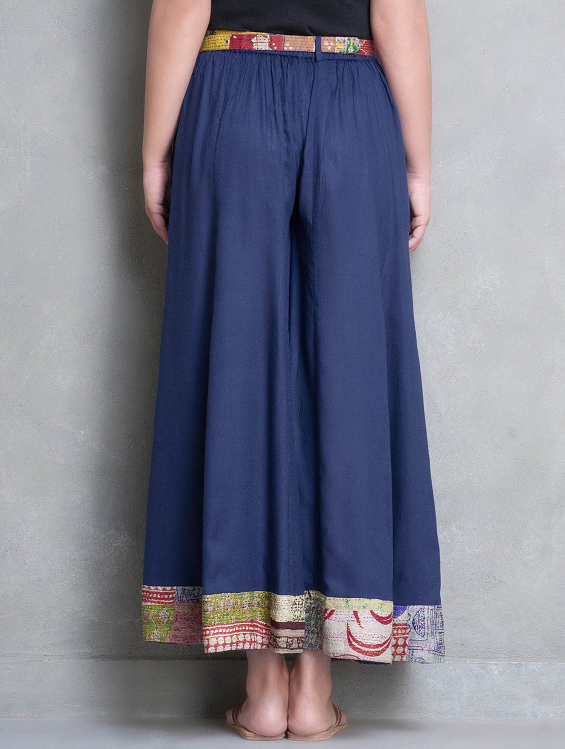 NEELOFER: Blue cotton silk kali palazzo with silk kantha border