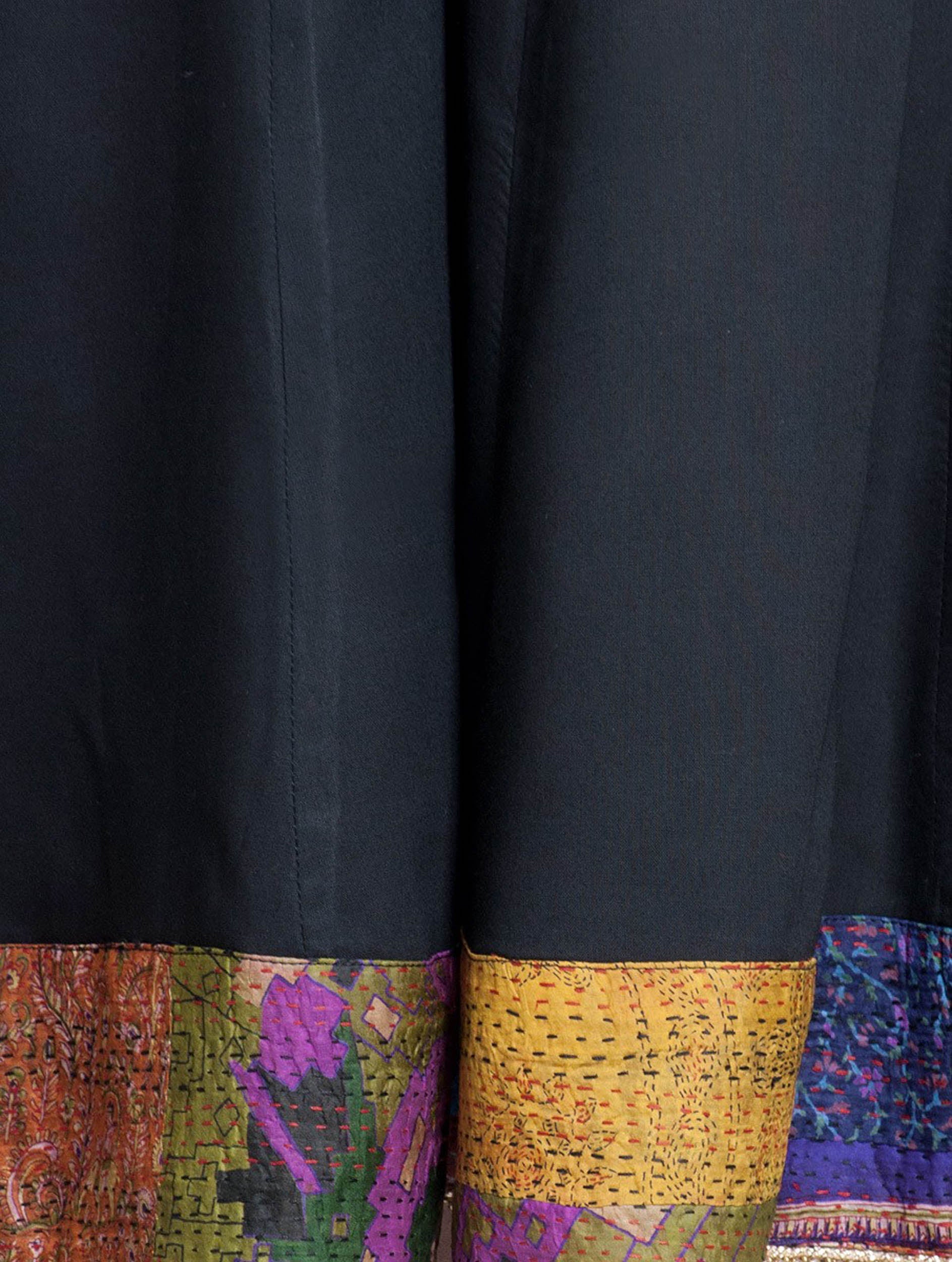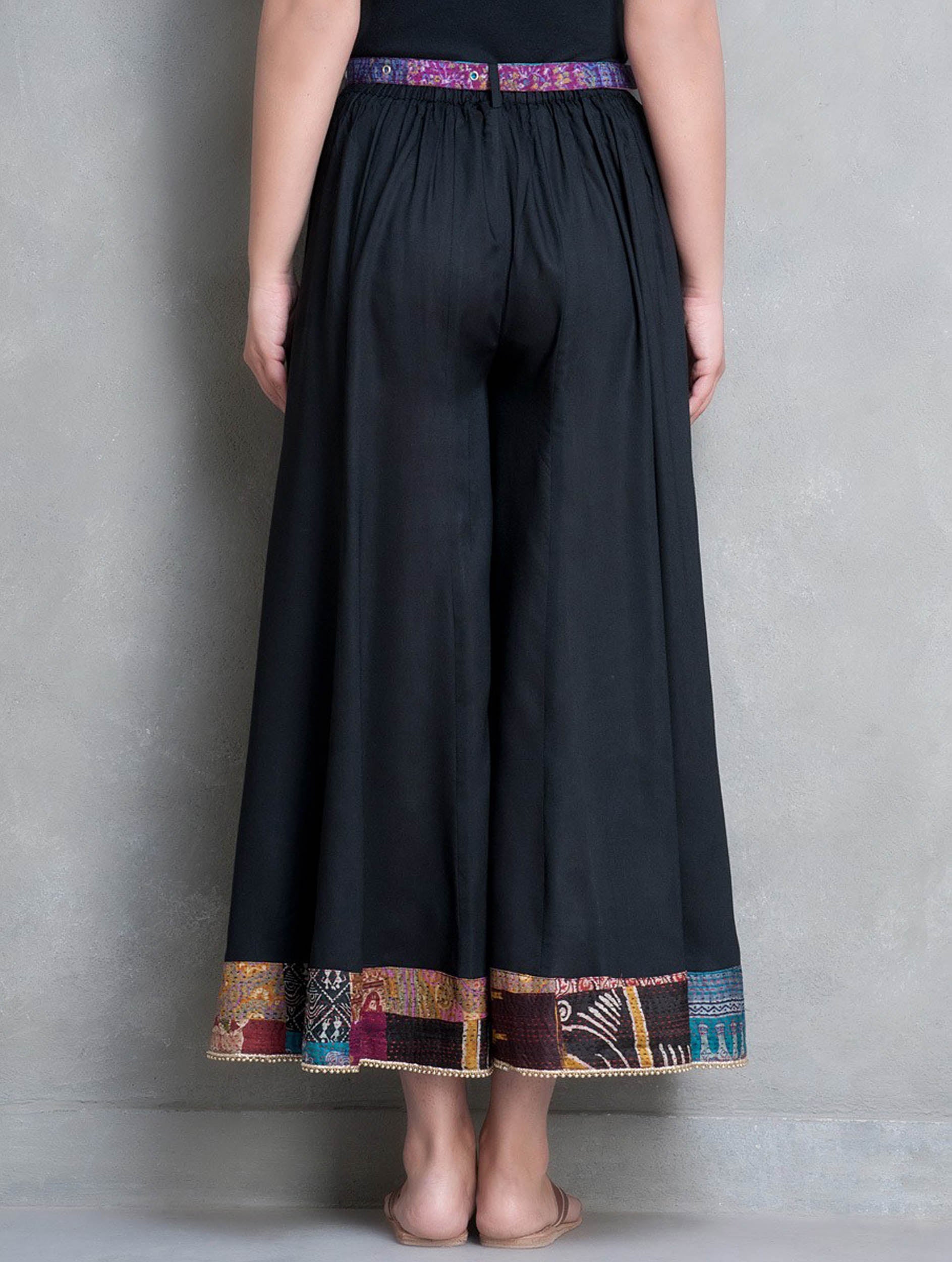 PAAJEB: Black cotton silk kali palazzo with silk kantha border