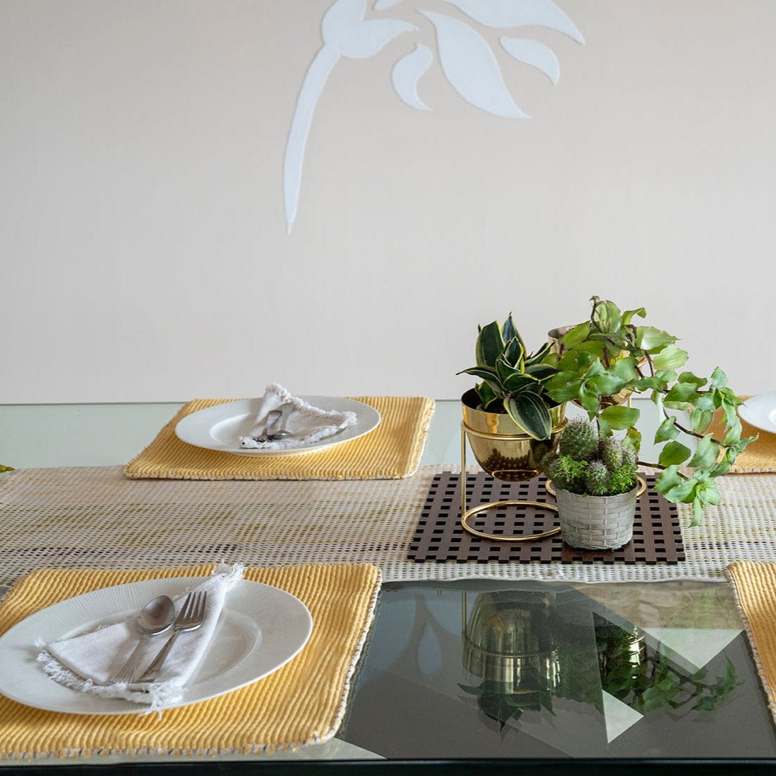 Borrowing heavily from the colors of the nature all around us, we represented them in longitudinal lines in this handwoven table runner. Set up a relaxed wine and tapas evening with our Dotted Runner.