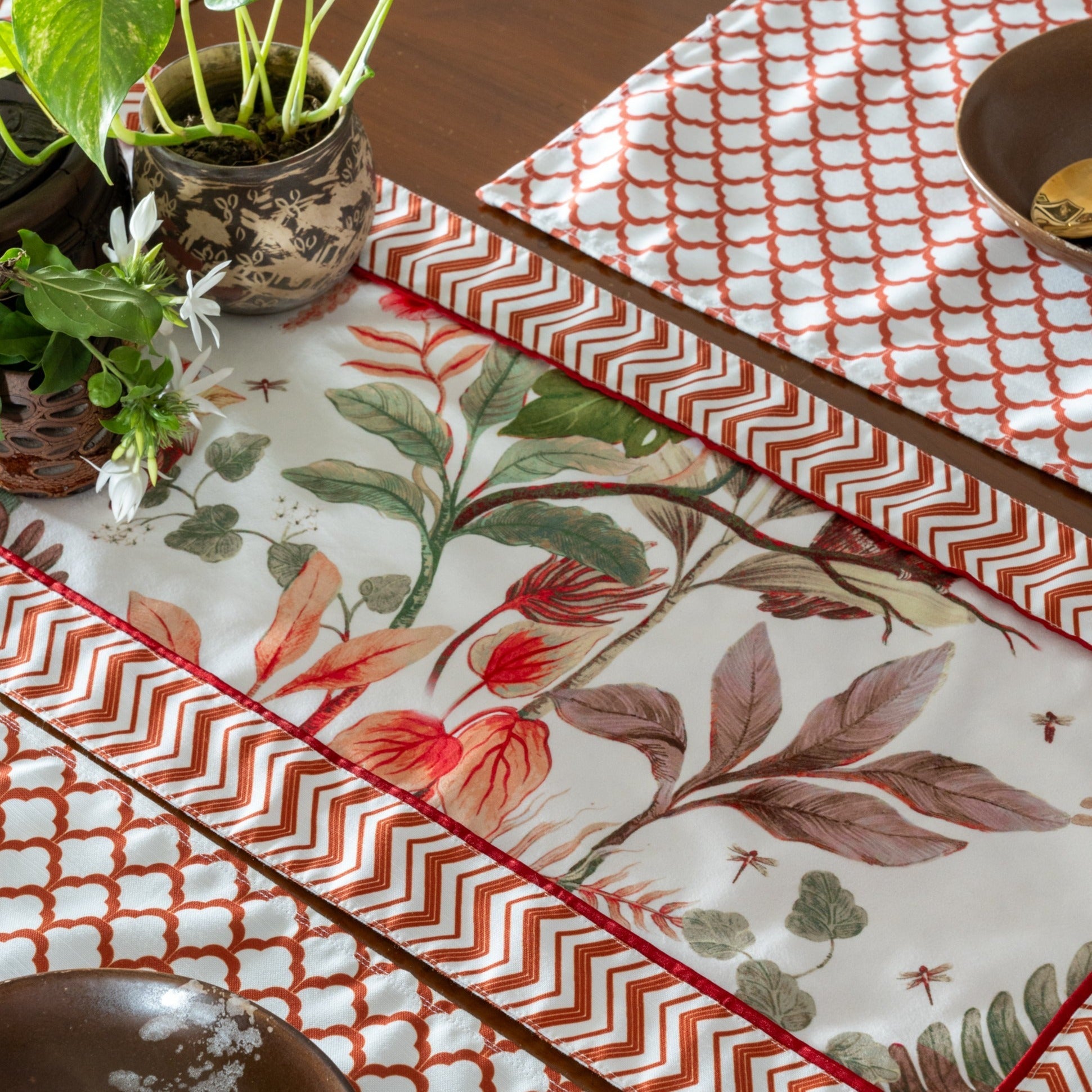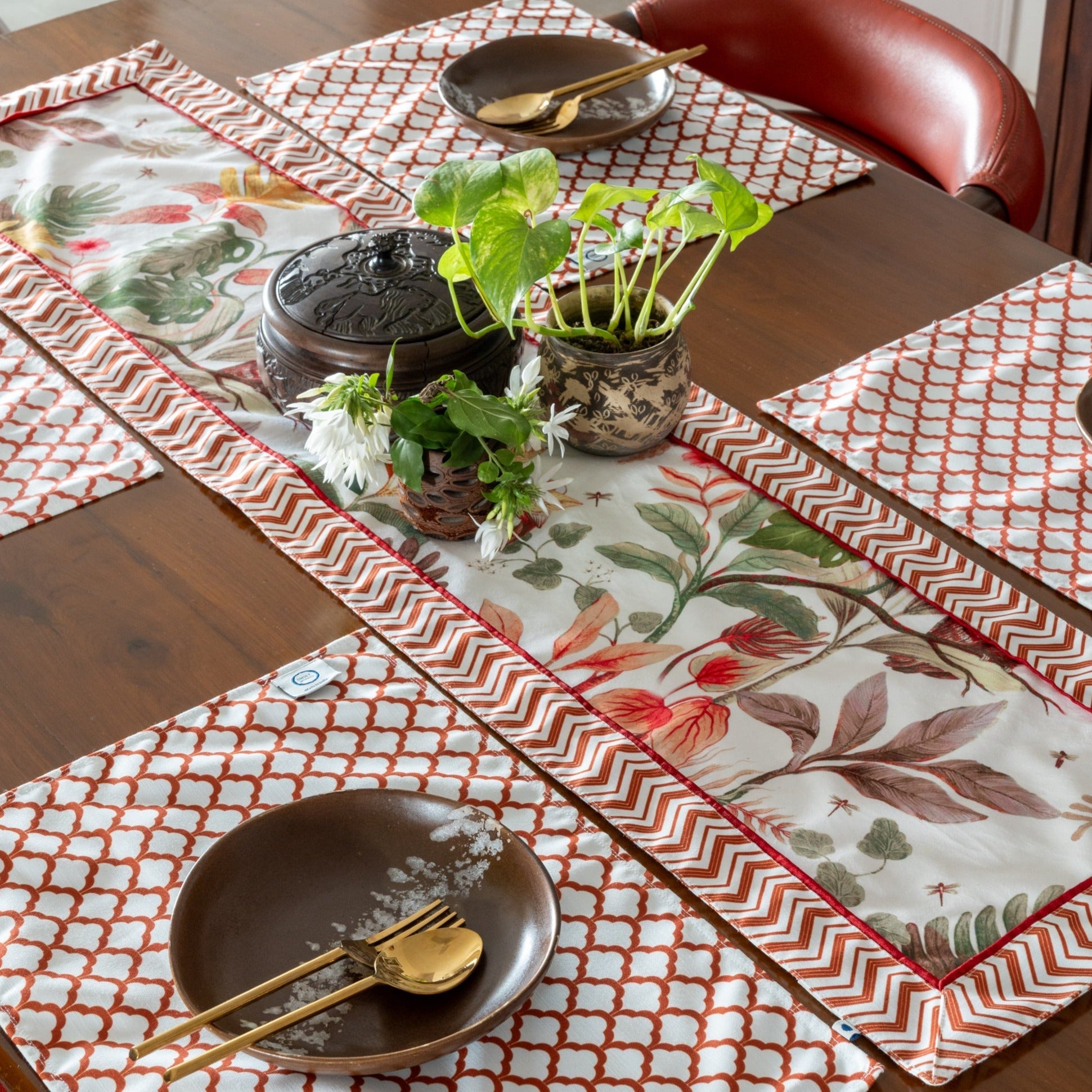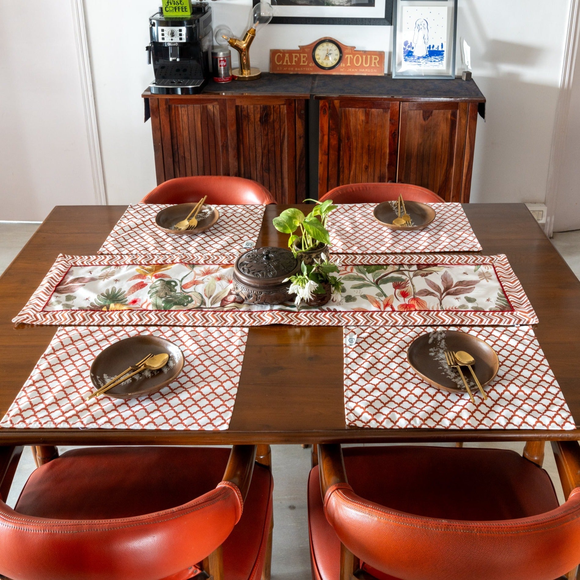 Introducing our Autumnal Owl Haven Table Runner, a captivating blend of rustic charm and natural beauty. This intricately designed table runner features a delightful pattern of owls and foliage, rendered in rich rust shades that evoke the warmth and richness of autumn.