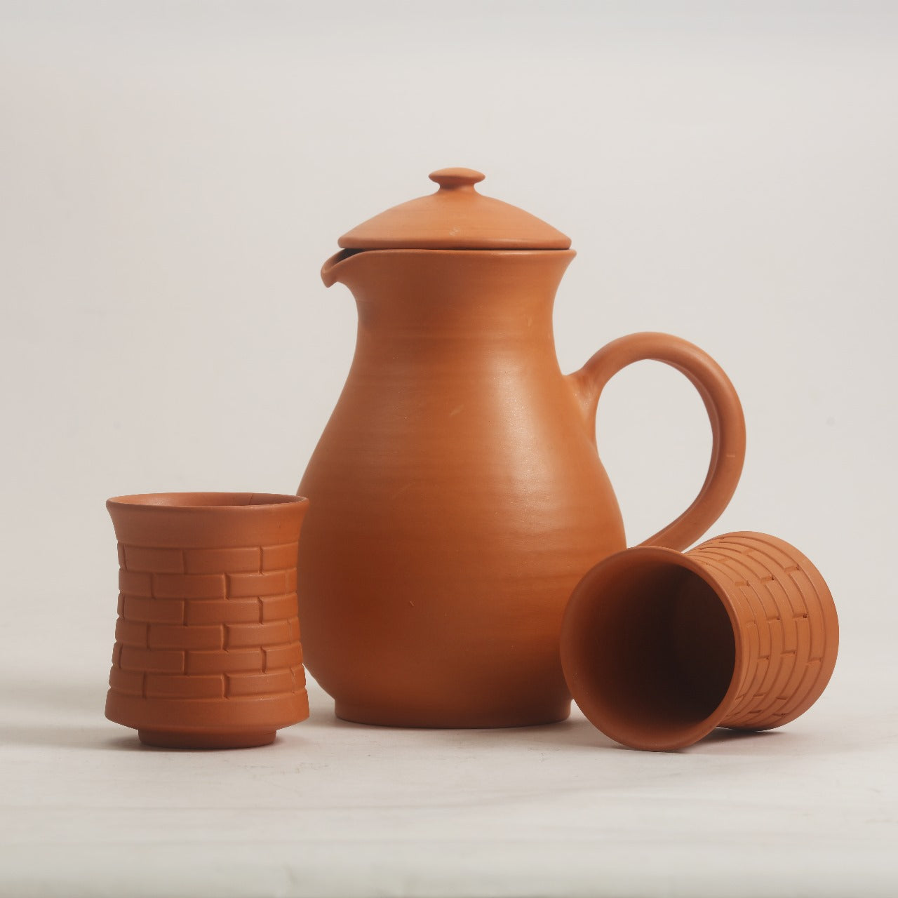 Vanchai Terracotta Water Jug/Pitcher - 1000ML with set of 2 Glass