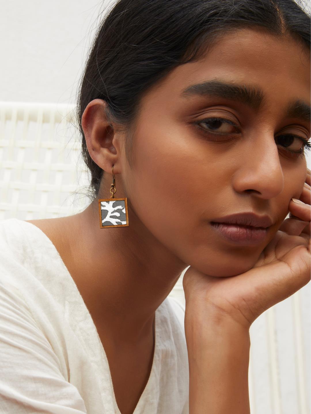 Whe Handblock printed Fabric and Repurposed Wood Frame earrings
