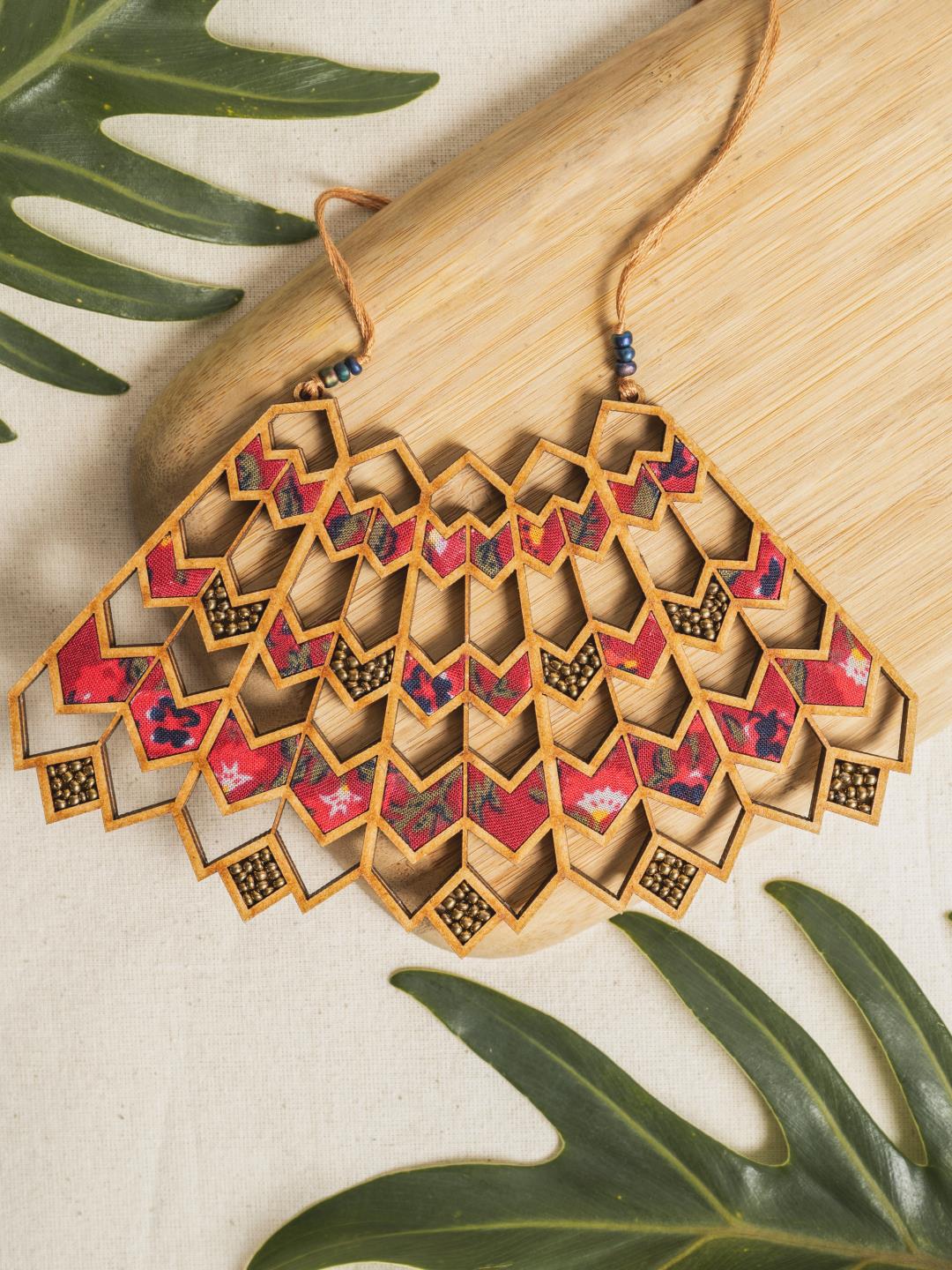 Whe Connecting Triangle Kalamkari Repurposed Wood Frame Necklace