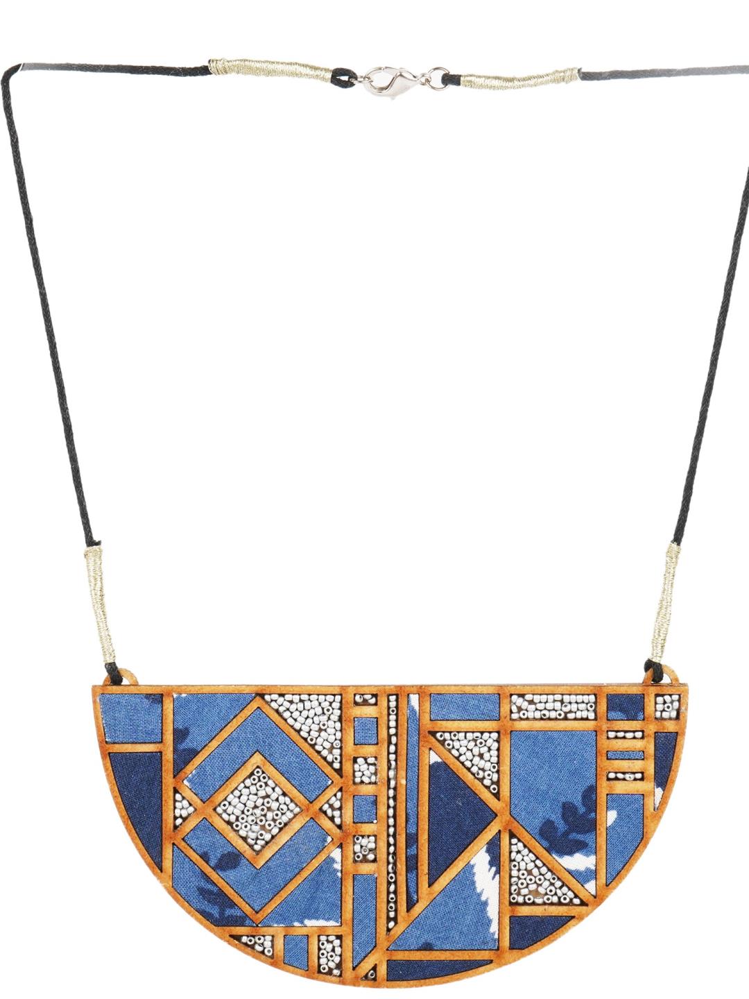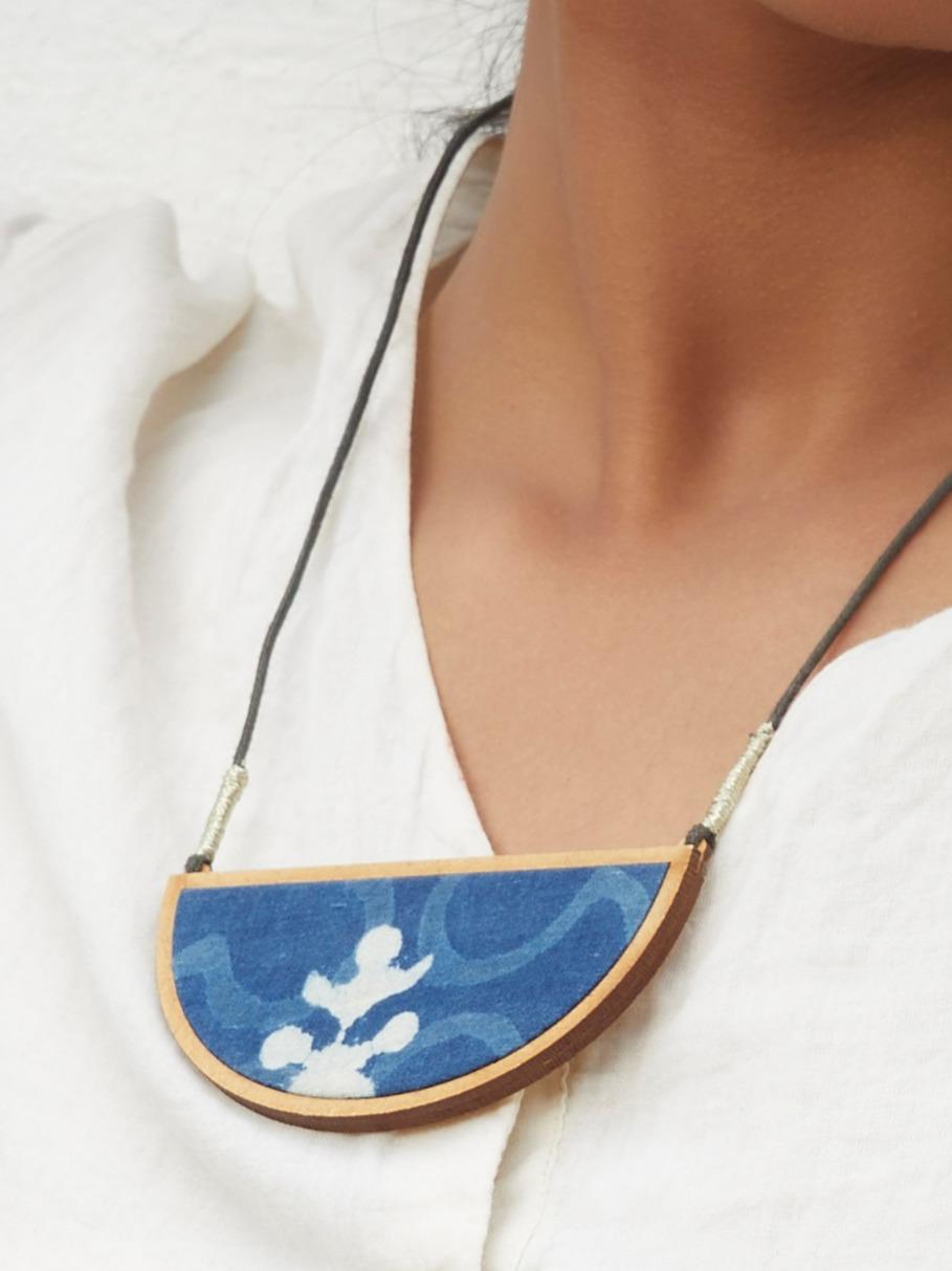 Whe Indigo Semi circle Repurposed Wood Frame necklace